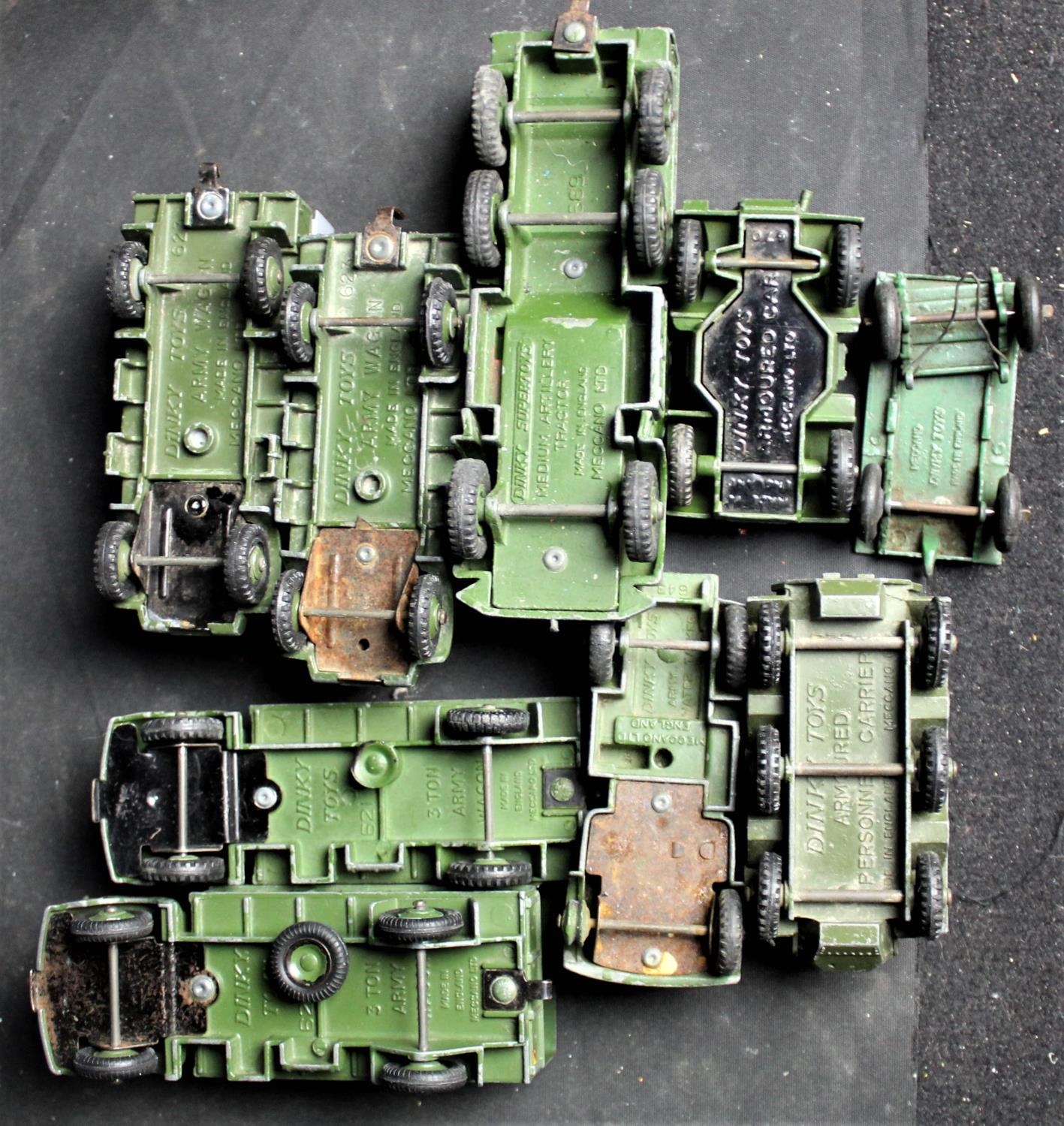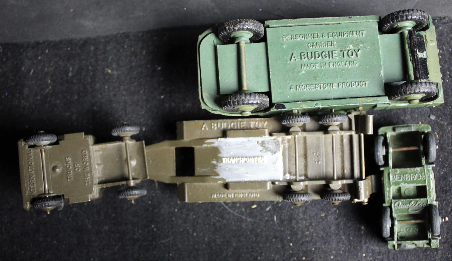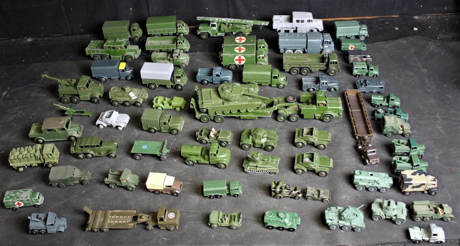 27 DINKY MILITARY - SOME REPAINTS, 2 BUDGIE, 1 BENBRES & OTHER PLASTIC & DIECAST MODEL VEHICLES
