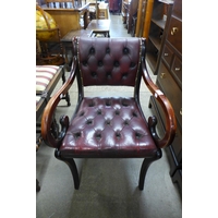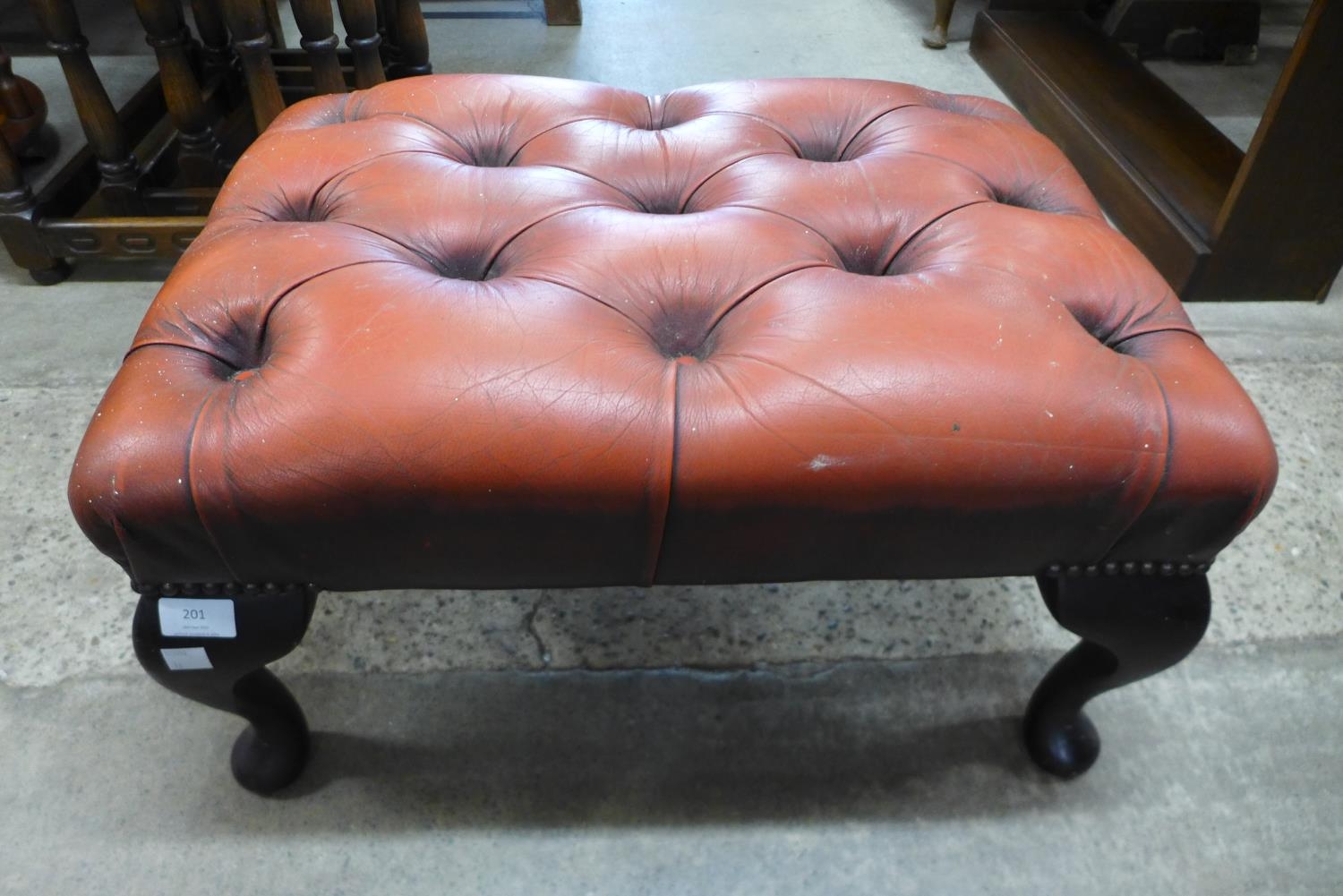 A mahogany and red leather footstool