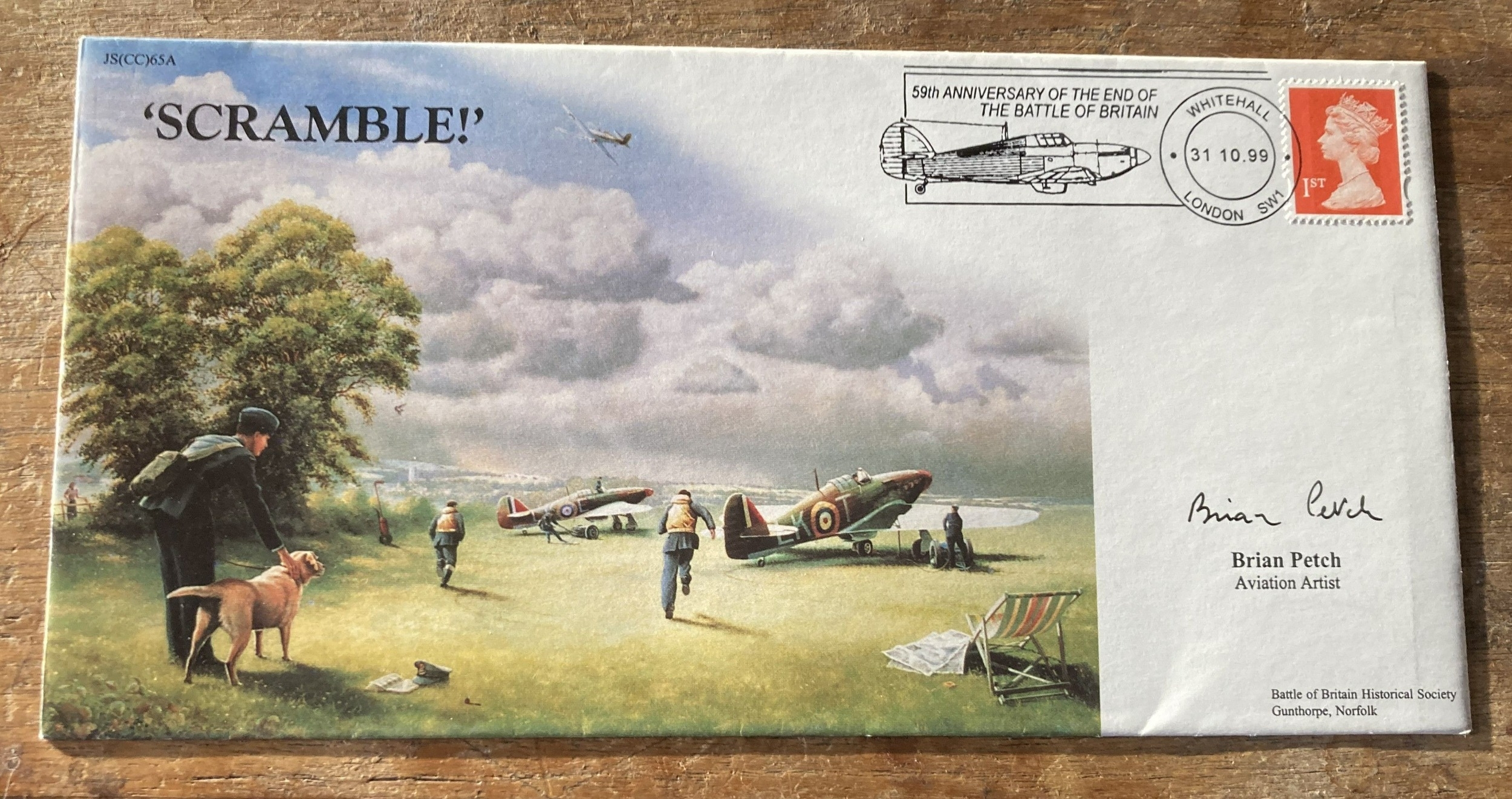 JS(CC)65A 'Scramble!' 59th ann of the End of the Battle of Britain cover signed Aviation Artist Brian Petch 31.10.99 WW2 BOB FDC. Single Vendor collection. Good condition. We combine postage on multiple winning lots and can ship worldwide. UK postage from £5.99, EU from £7.99, Rest of World from £9.99.
