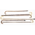 Four shepherds crooks with rams horn curved handles, longest...