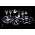 Some minor pin head nicks to brandies. One liqueur fractured. Two large tumblers with chips. Champagne chipped. One smaller bowl with fracture. Large plate; two large rim chips. Overall condition commensurate with age and wear