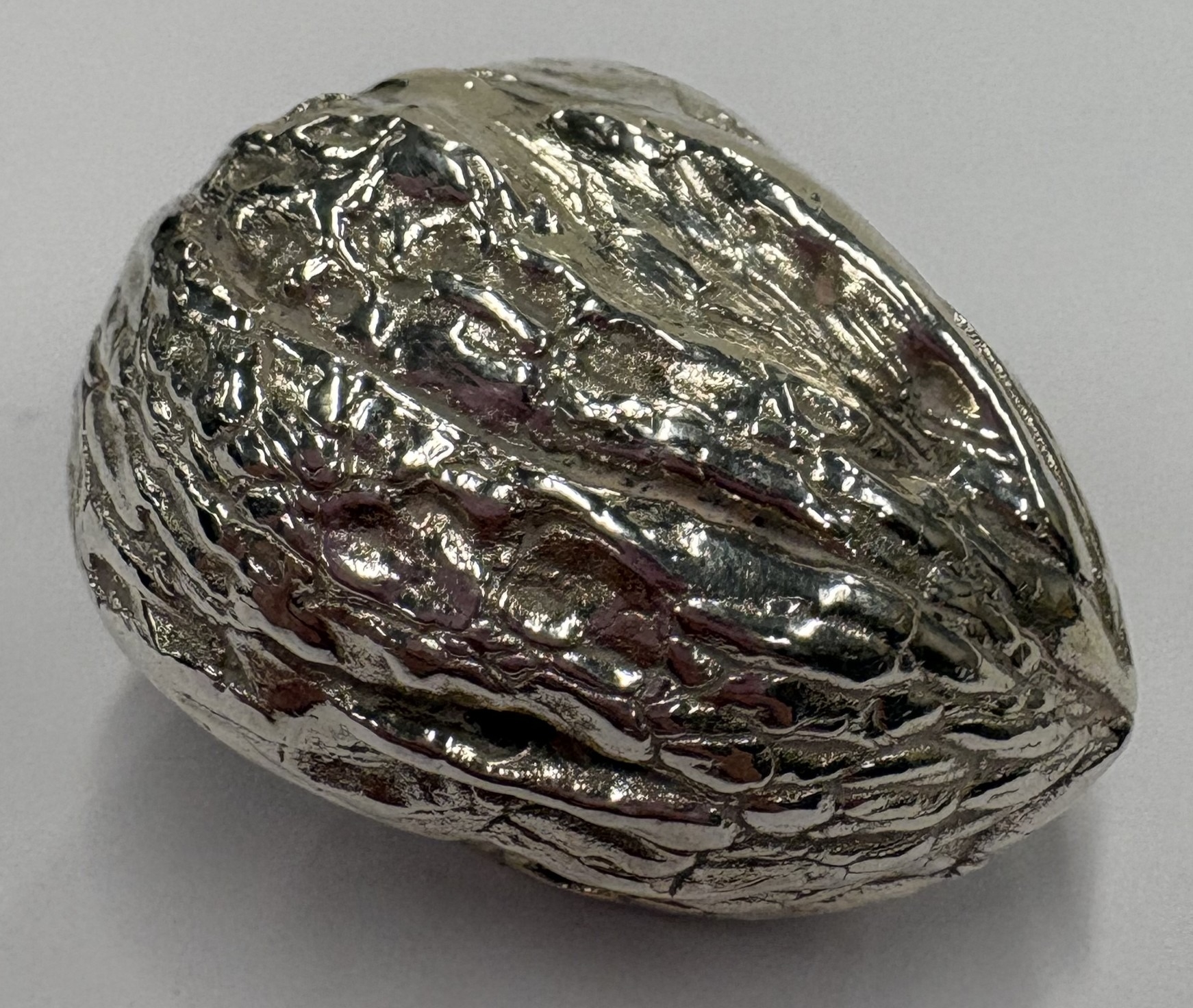 A silver model of a walnut, marked 925. Approx. 36 grams of gross weight. Est. £30 - £40.