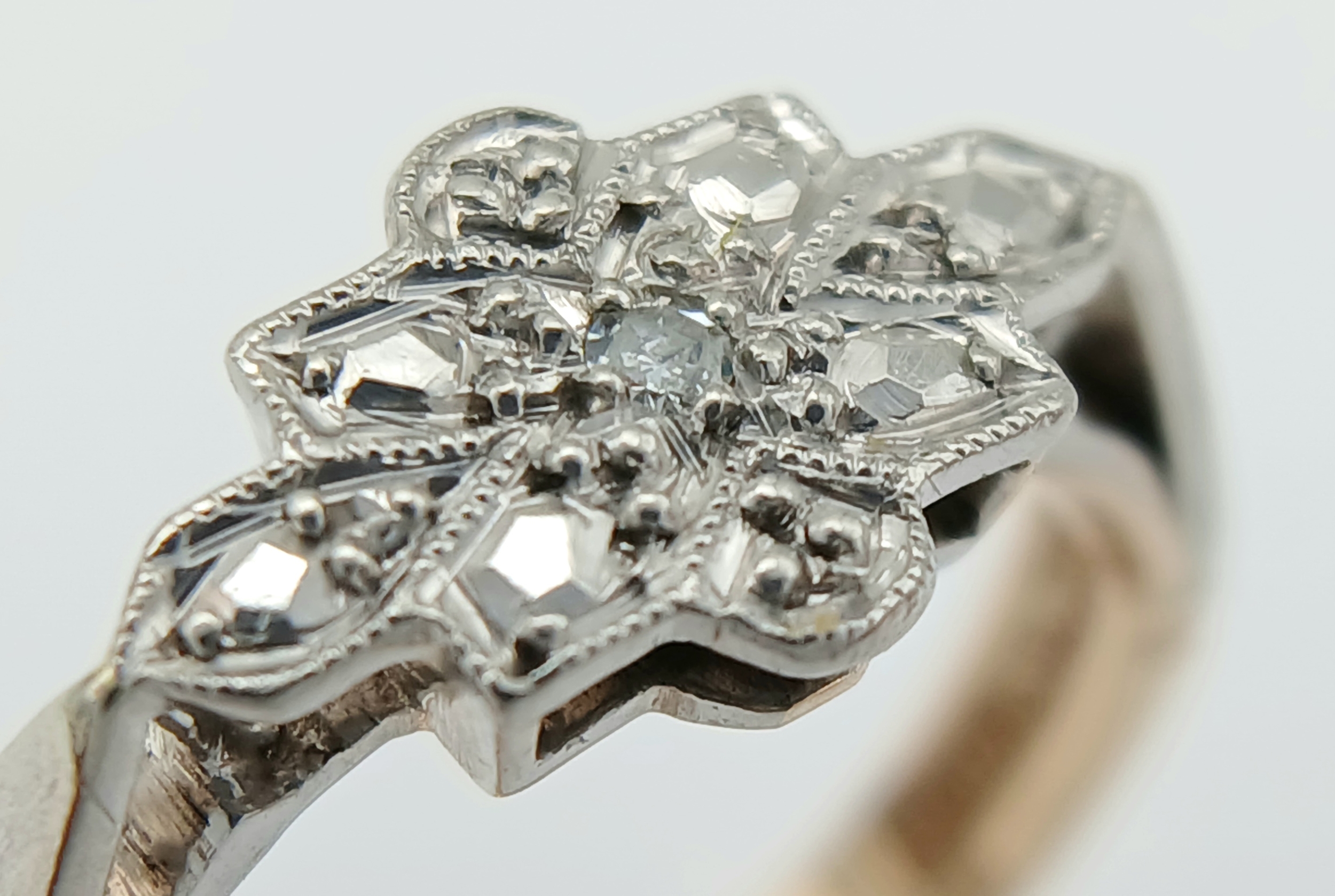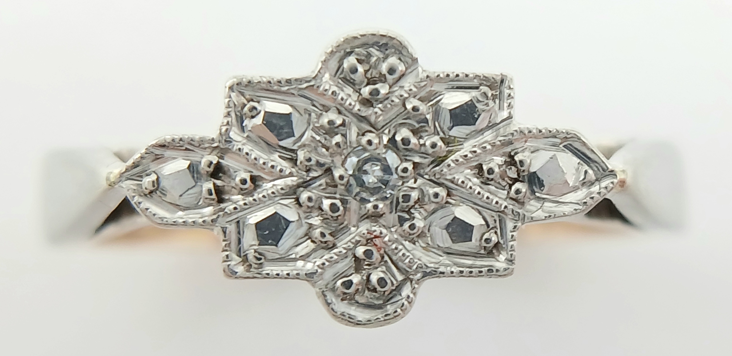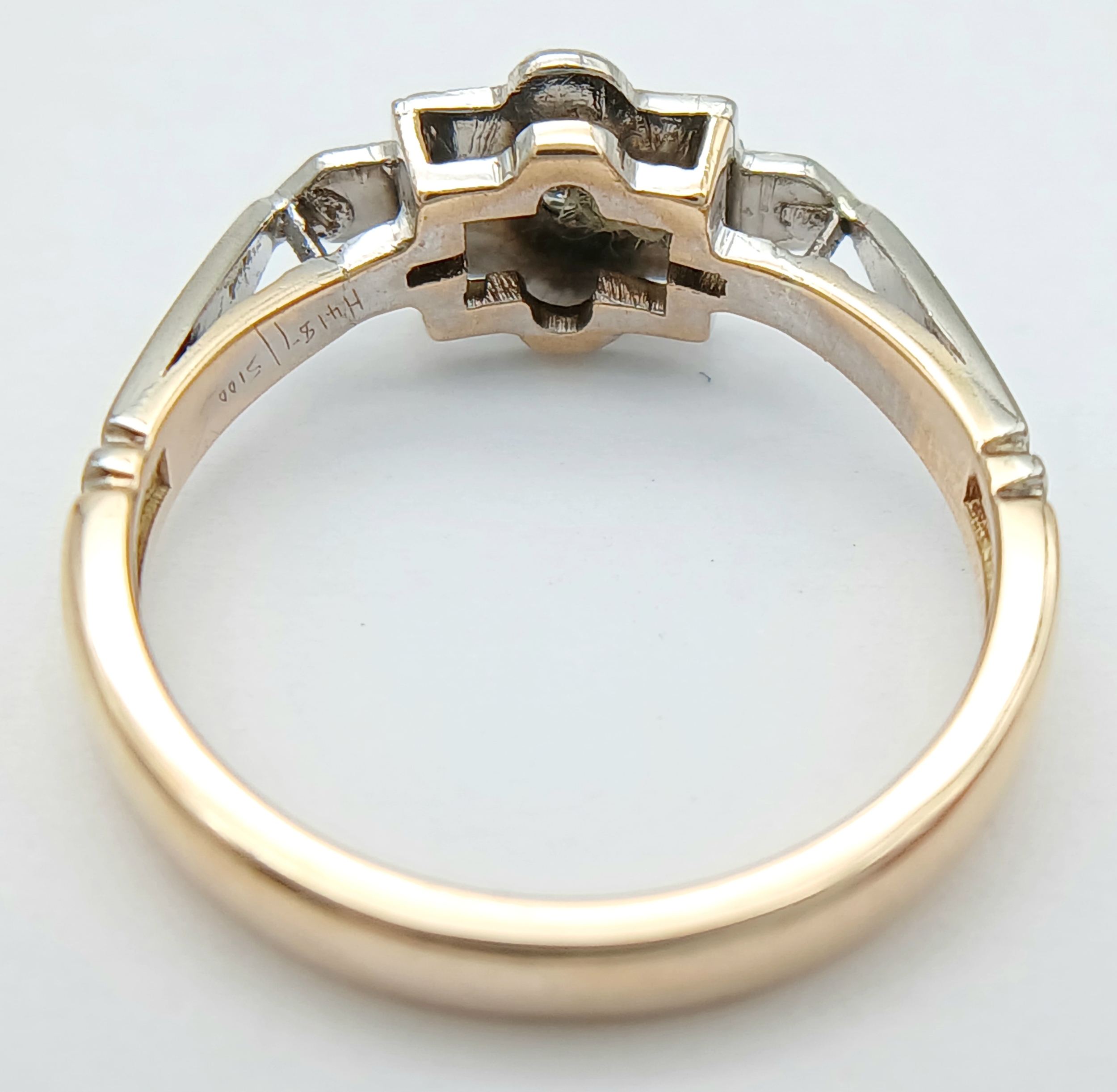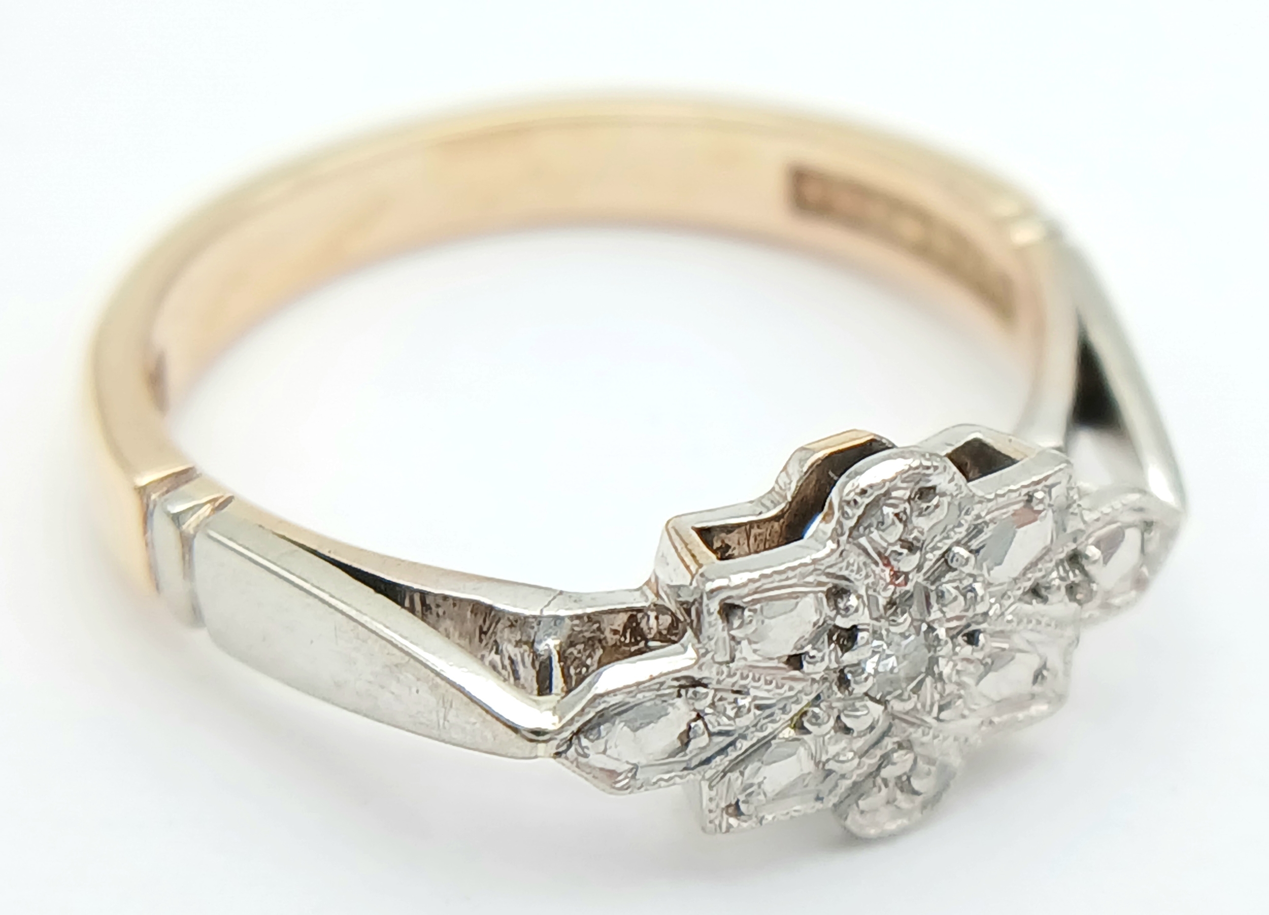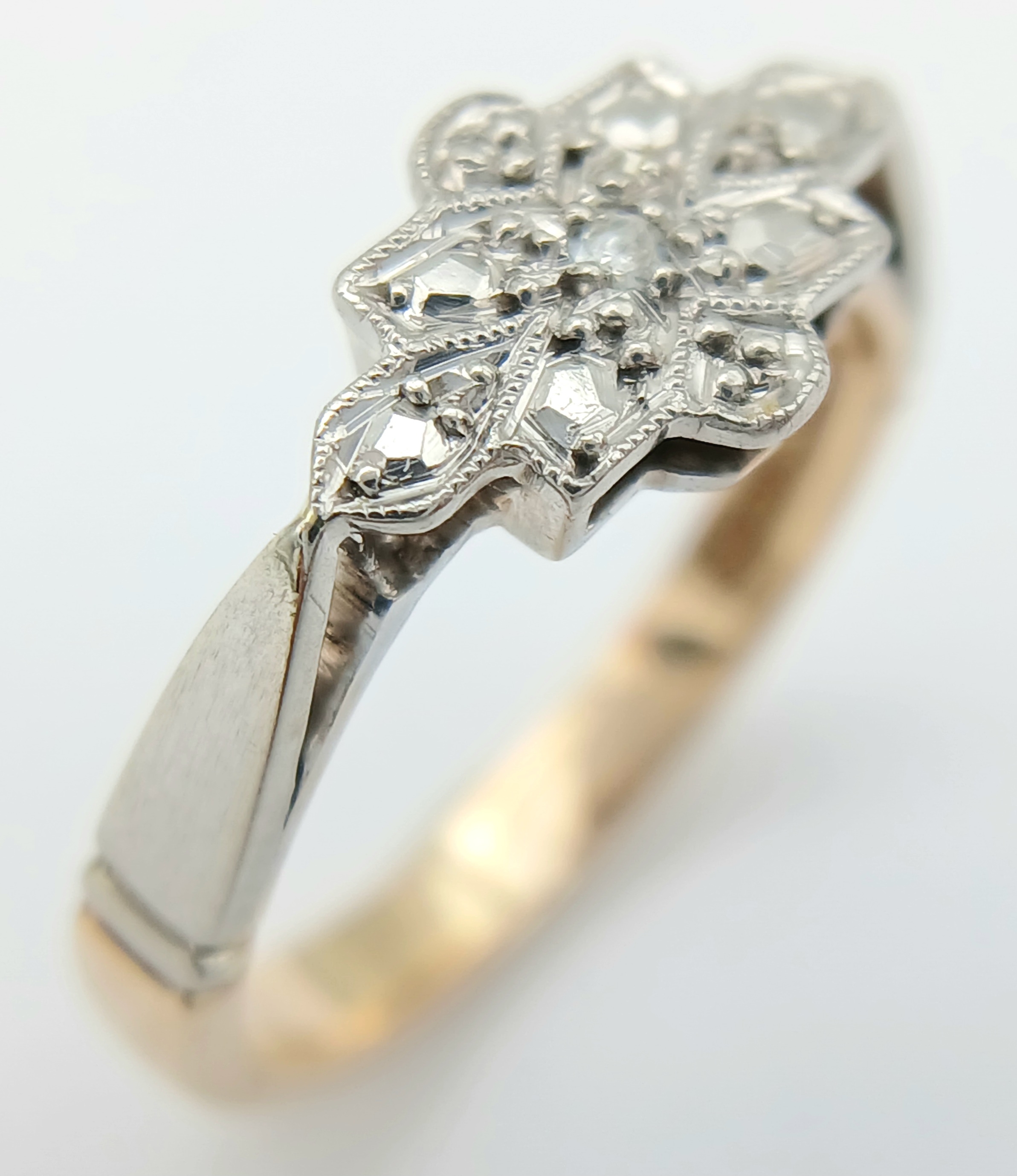 A 9K YELLOW GOLD AND PLATINUM VINTAGE DIAMOND RING. 2.5G TOTAL WEIGHT, SIZE L. Ref: SC 2003