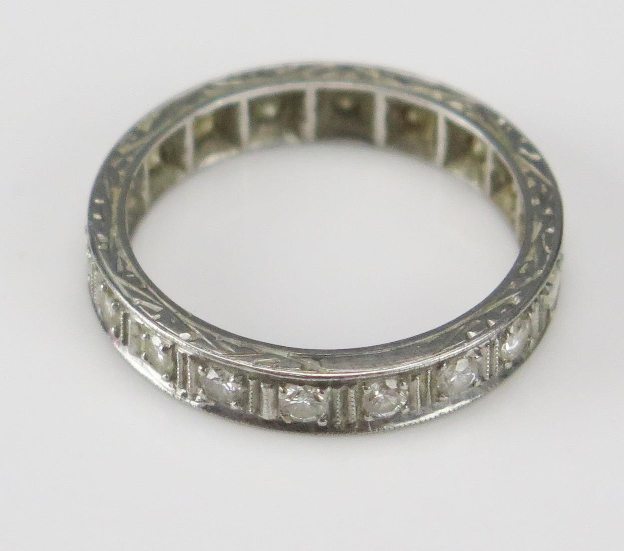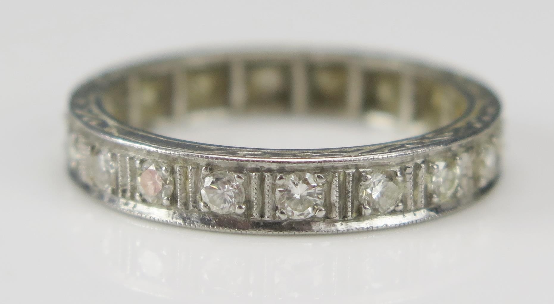 A Platinum and Diamond Eternity Ring, c. 2.4mm brilliant round cuts, 3.7mm wide, size O.25, 5.1g