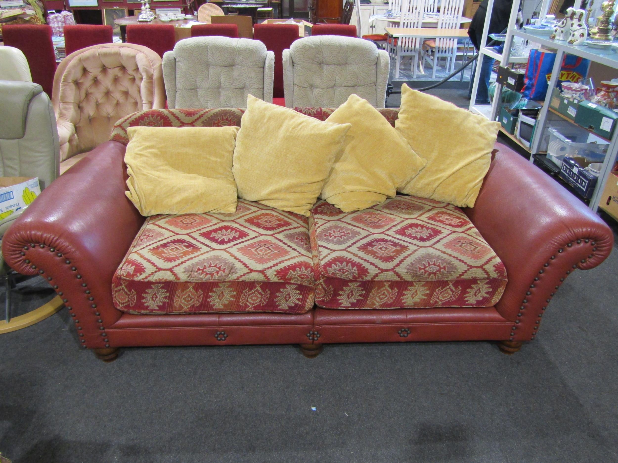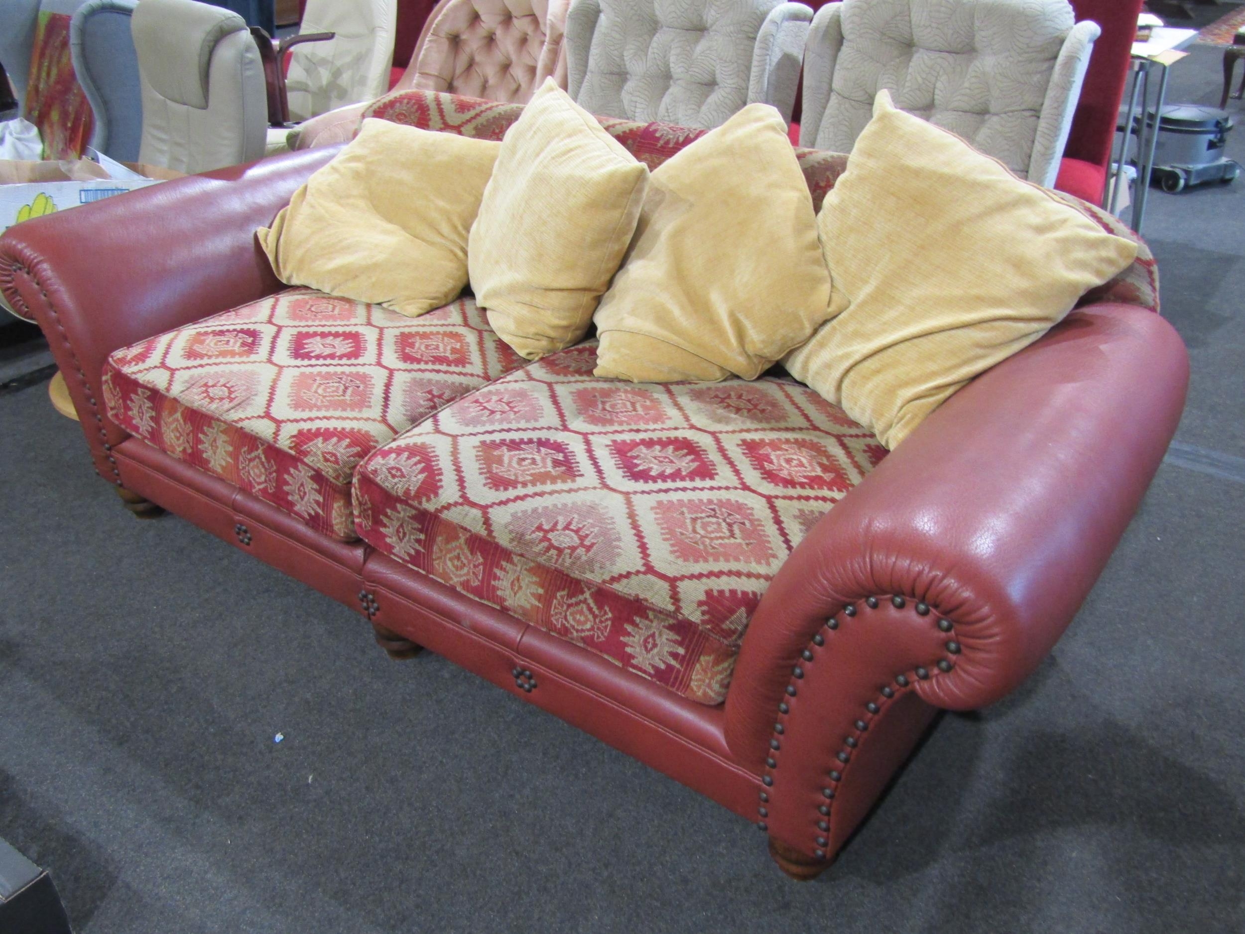 A Tetrad Eastwood fabric/leather two seater sofa with scatter cushions