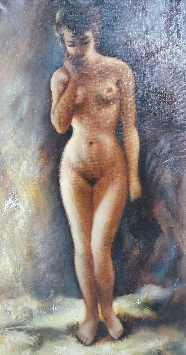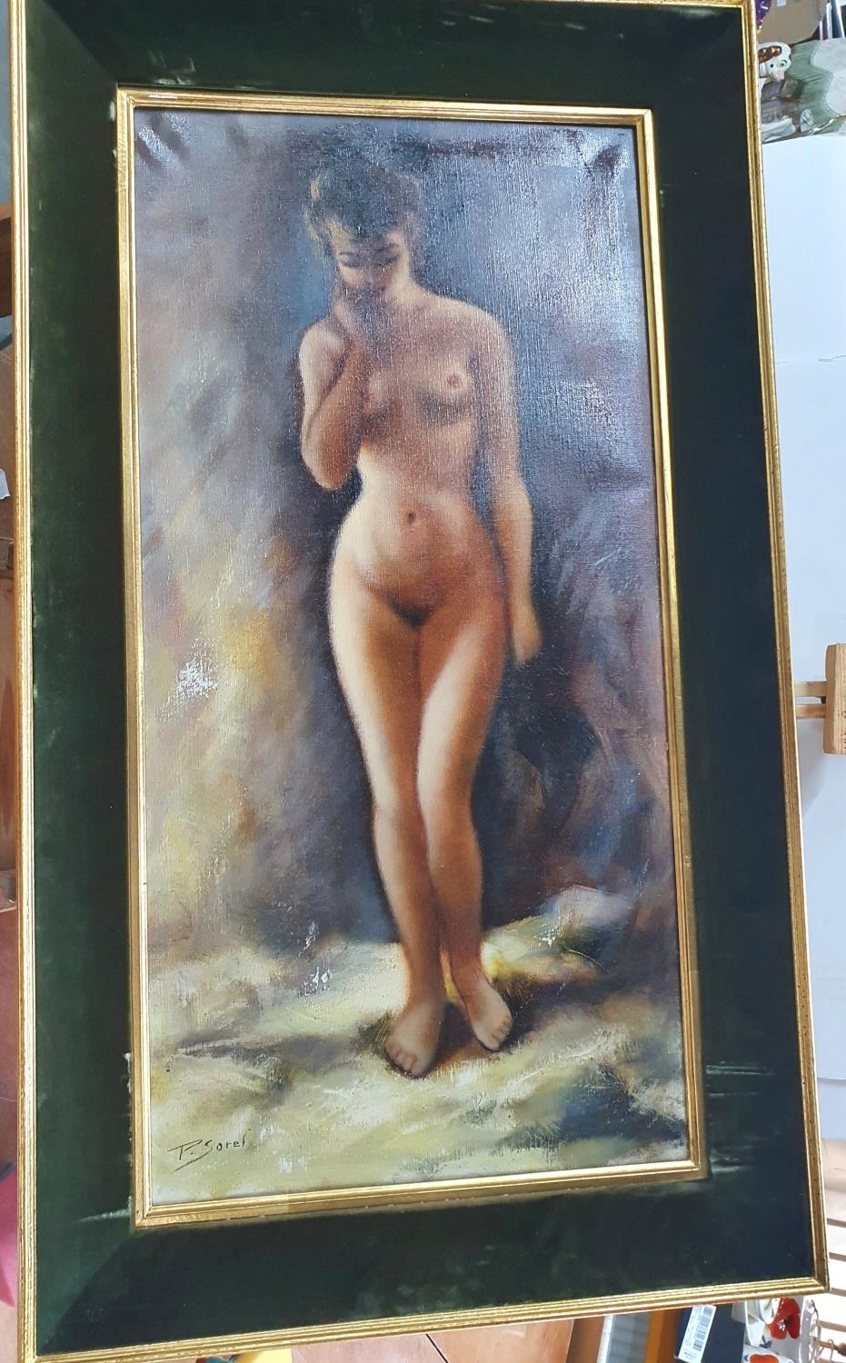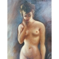 Pierre SOREL (French born 1938) 1960s/70s oil on canvas, "Full-length female nude" in original cushion frame,