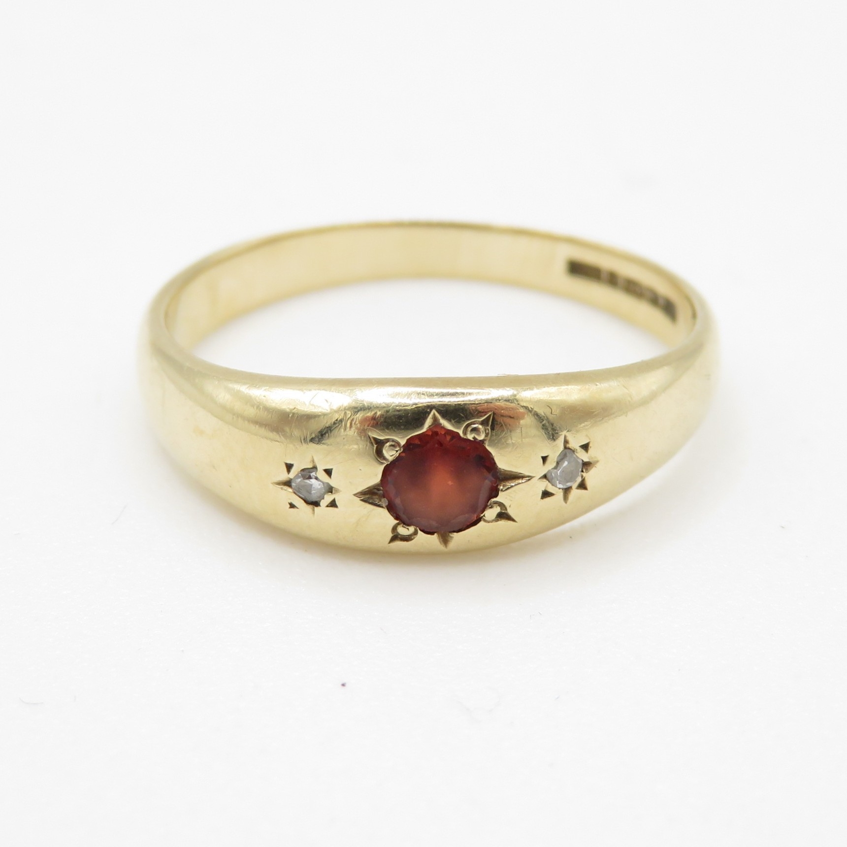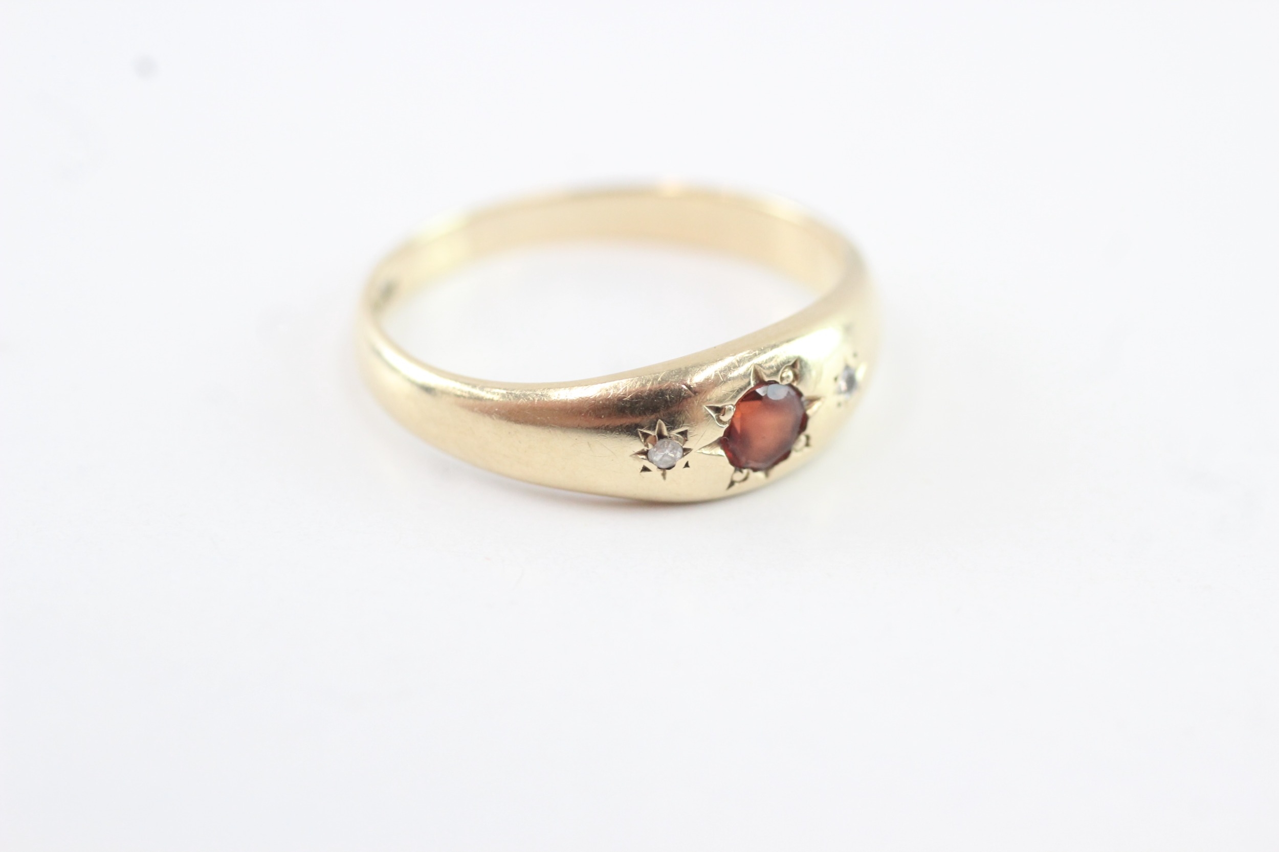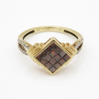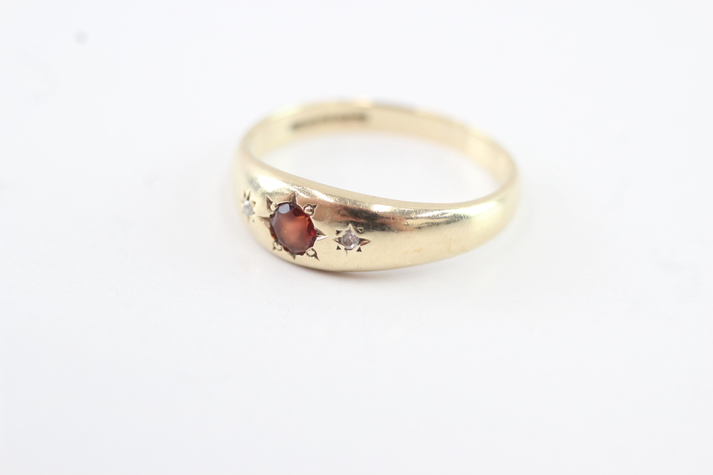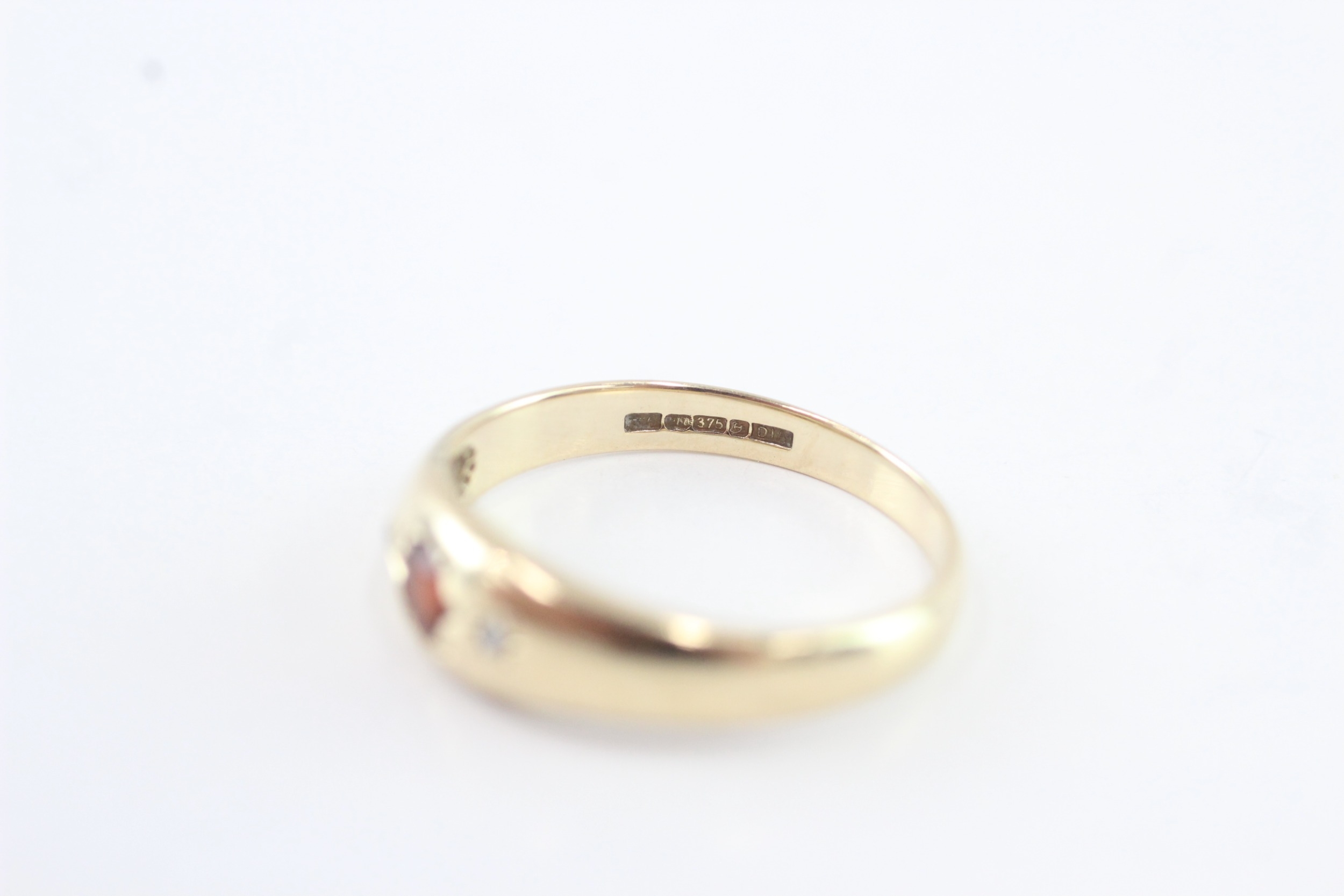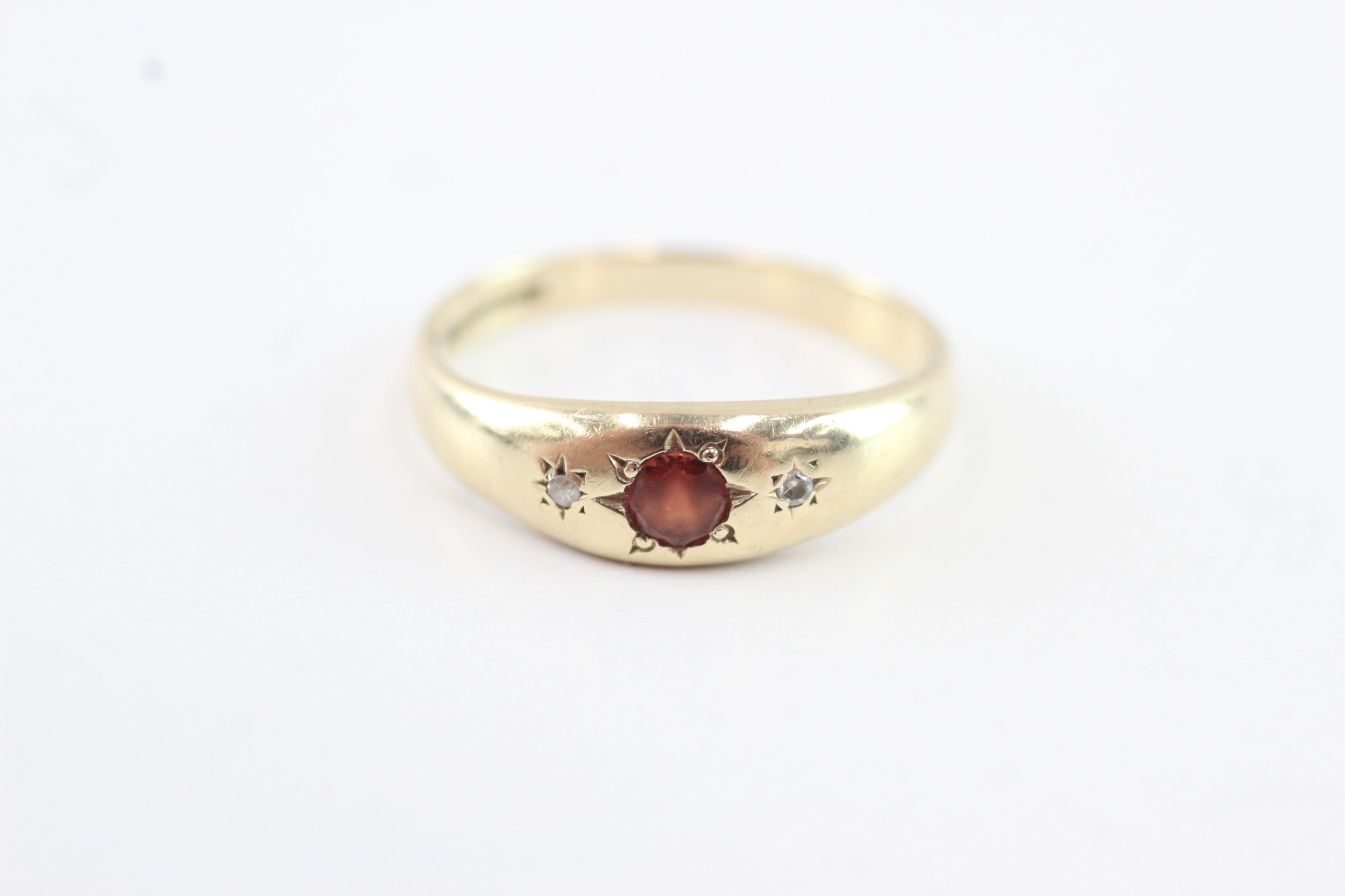 9ct gold garnet and diamond trilogy ring (1.9g) Size M