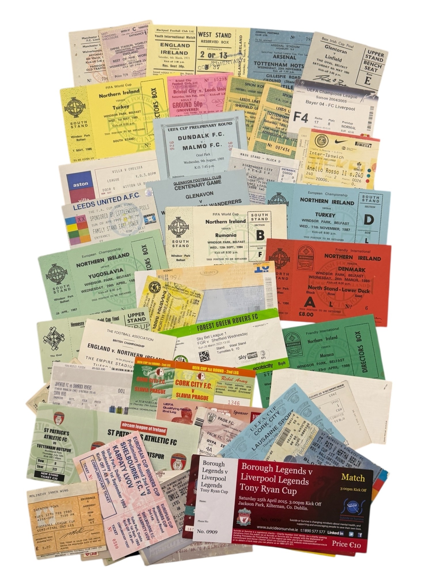 COLLECTION OF 1950s ONWARDS FOOTBALL TICKET STUBS, MANCHESTER UNITED VERSUS WOLVES 6/3/1976, ARSENAL SPURS 68/69, ENGLAND V IRELAND YOUTH AT BLACKPOOL 1971, VARIOUS LEEDS 1970s EXAMPLES, ARMENIA V NORTHERN IRELAND, 1959 FAC FINAL, JUVENTUS V SHAMROCK 2010, VARIOUS OTHERS, BRITISH/ IRISH IN EUROPE. 35+