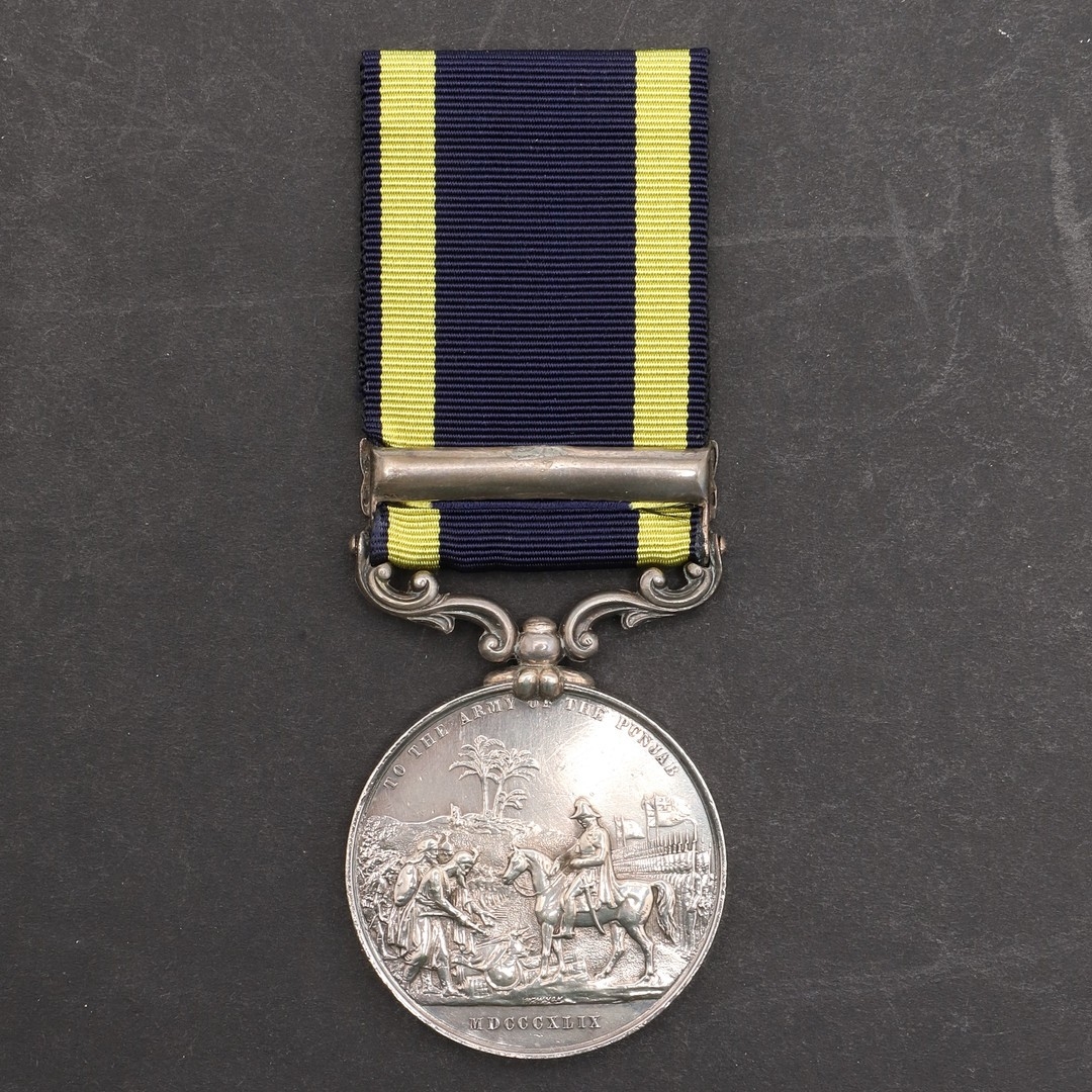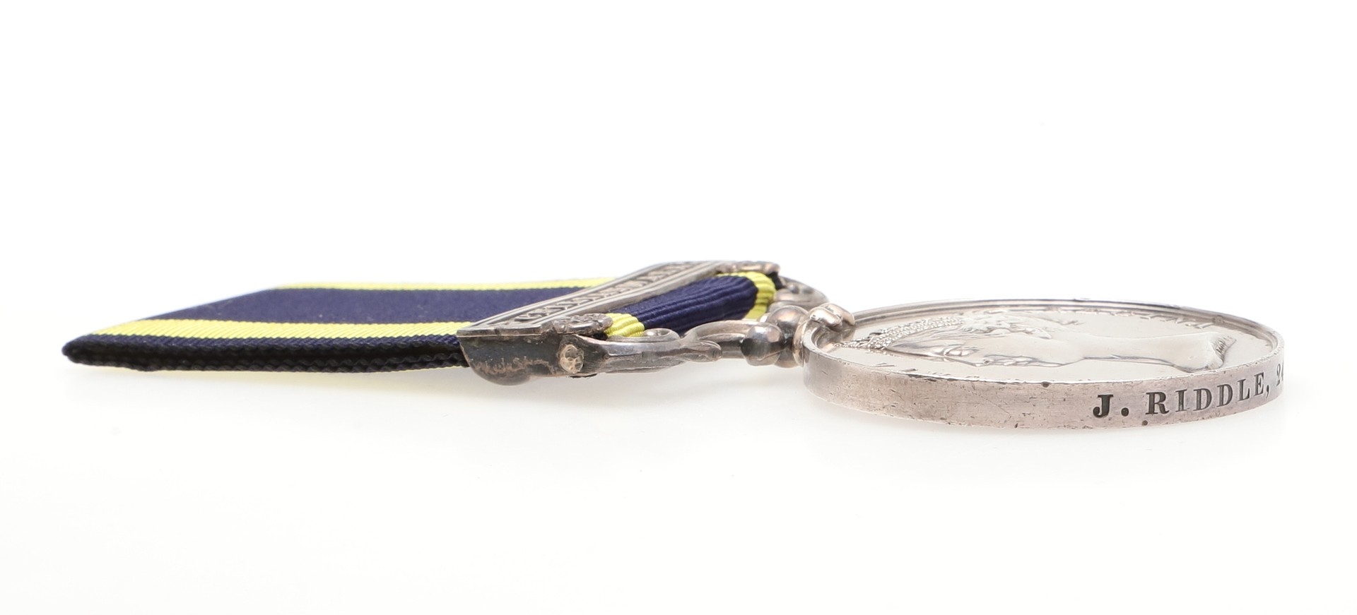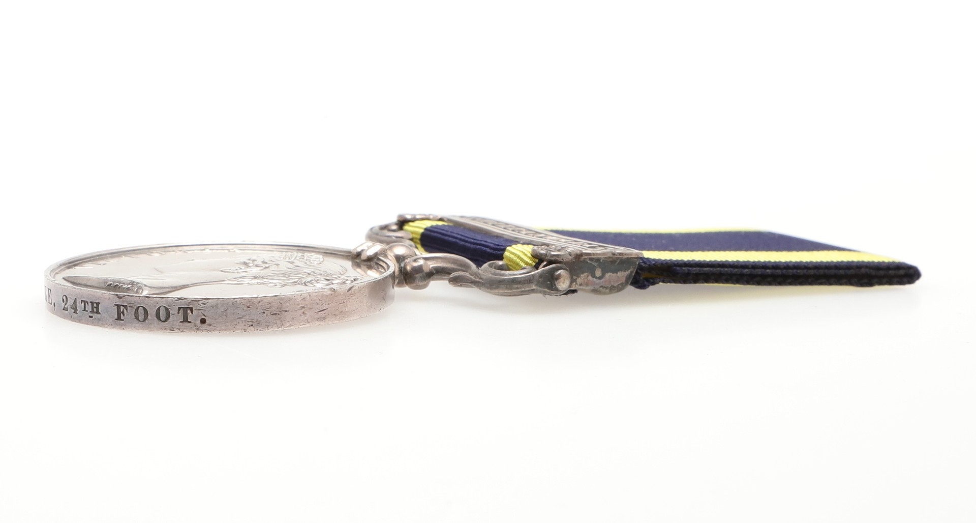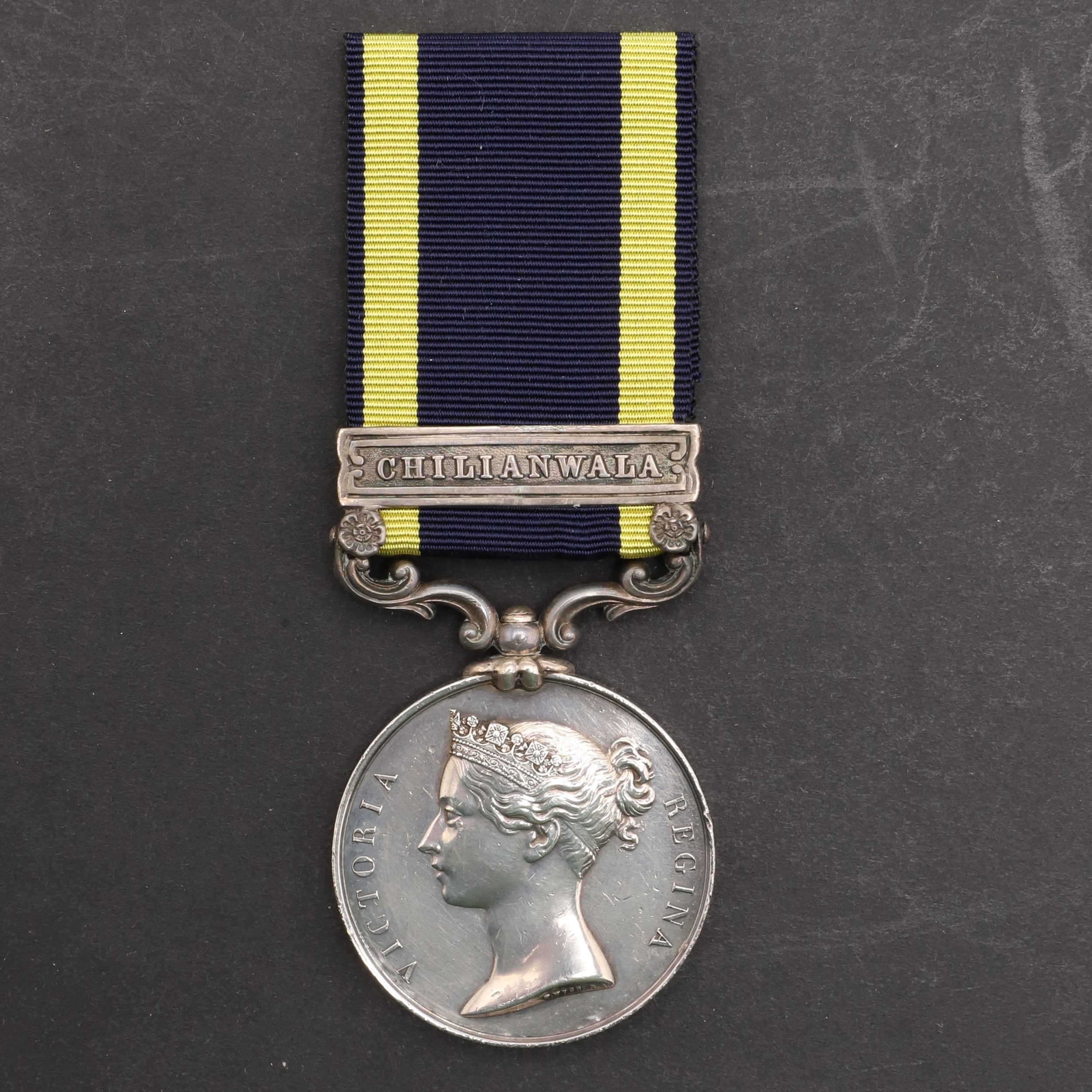 A PUNJAB MEDAL 1848-49 WITH CHILIANWALA CLASP TO A FATALITY WITH THE 24TH FOOT. A Punjab medal with Chilianwala clasp named to J. Riddle 24th Foot. The roll for the 24th Foot includes 2780 Pte James Riddle 'killed at Chilianwala'. 1,060 Punjab medals with this clasp were awarded to the 24th Foot, on the 13th January 1849 at the battle the Regiment lost 255 officers and men. The men, newly arrived in India had difficulties in the jungle when they were ordered to charge using only bayonets. They made good progress but suffered heavy casualties when charging head on at Sikh guns. The names of the fatalities are recorded on an obelisk outside the Royal Hospital in Chelsea. The battle between the armies of the British East India Company and the Sikh Empire as part of the Second Anglo Sikh Wars. Chilianwala was one of three clasps to this medal, battles which resulted in the annexation of the Punjab.
