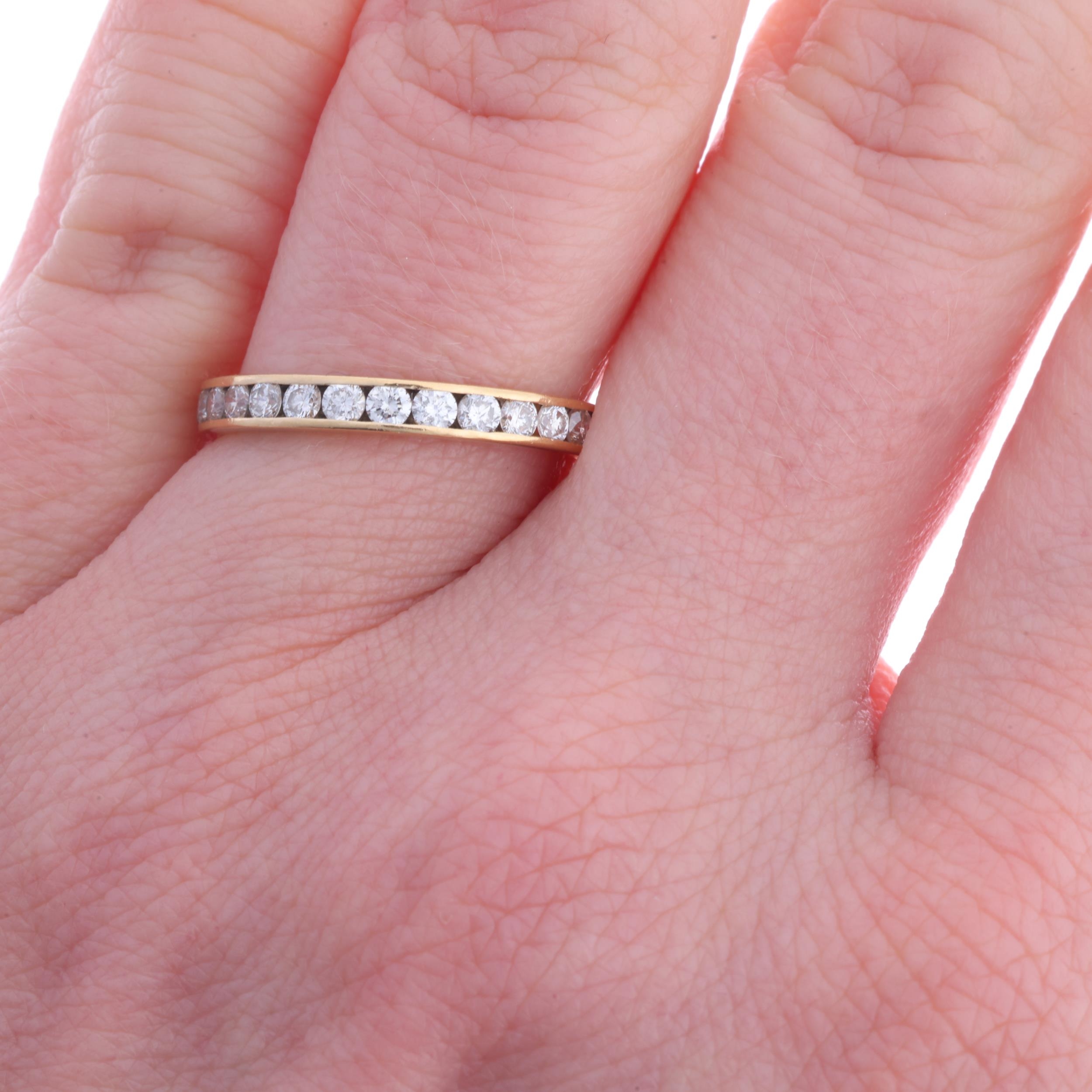 An 18ct gold diamond full eternity ring, channel set with modern round brilliant-cut diamonds, total diamond content approx 1.00ct, setting height 2.6mm, size M, 1.8g