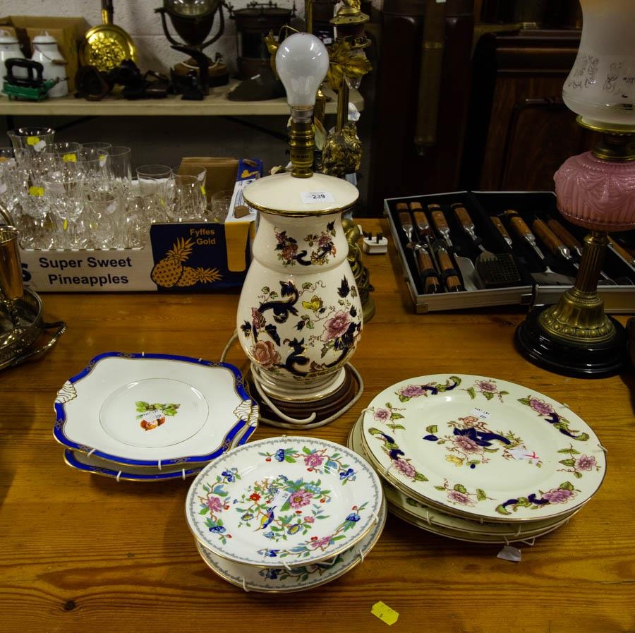 MASONS LAMP, 4 IRONSTONE PLATES + AYNSLEY PLATES