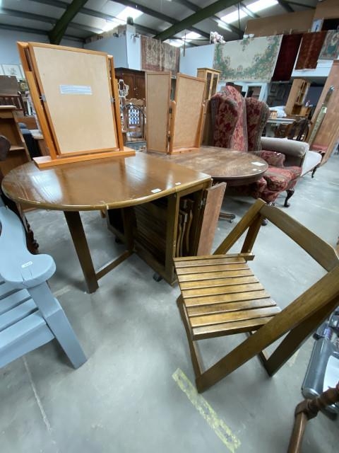 Oak effect space saving table (76H 136W 86D cm) with 4 folding chairs