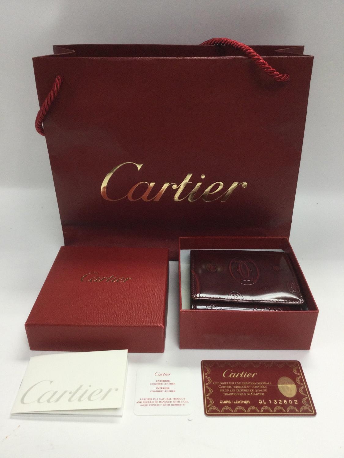 A boxed Cartier leather purse, as new, with outer bag, card and booklet. Shipping category B.