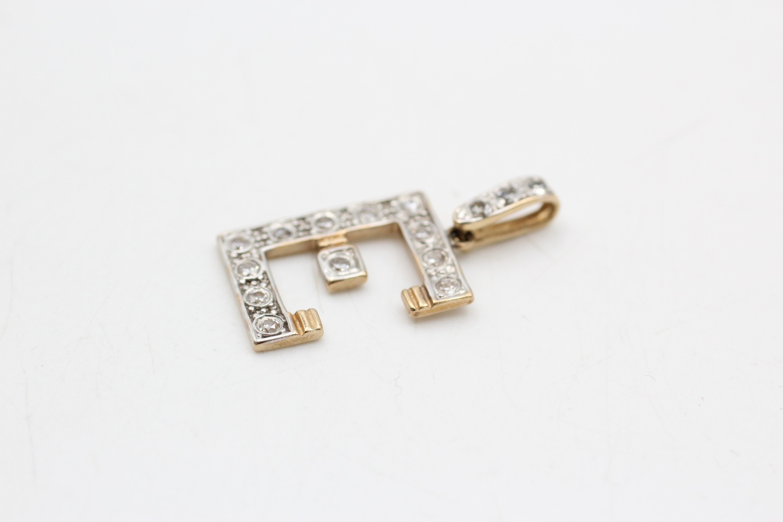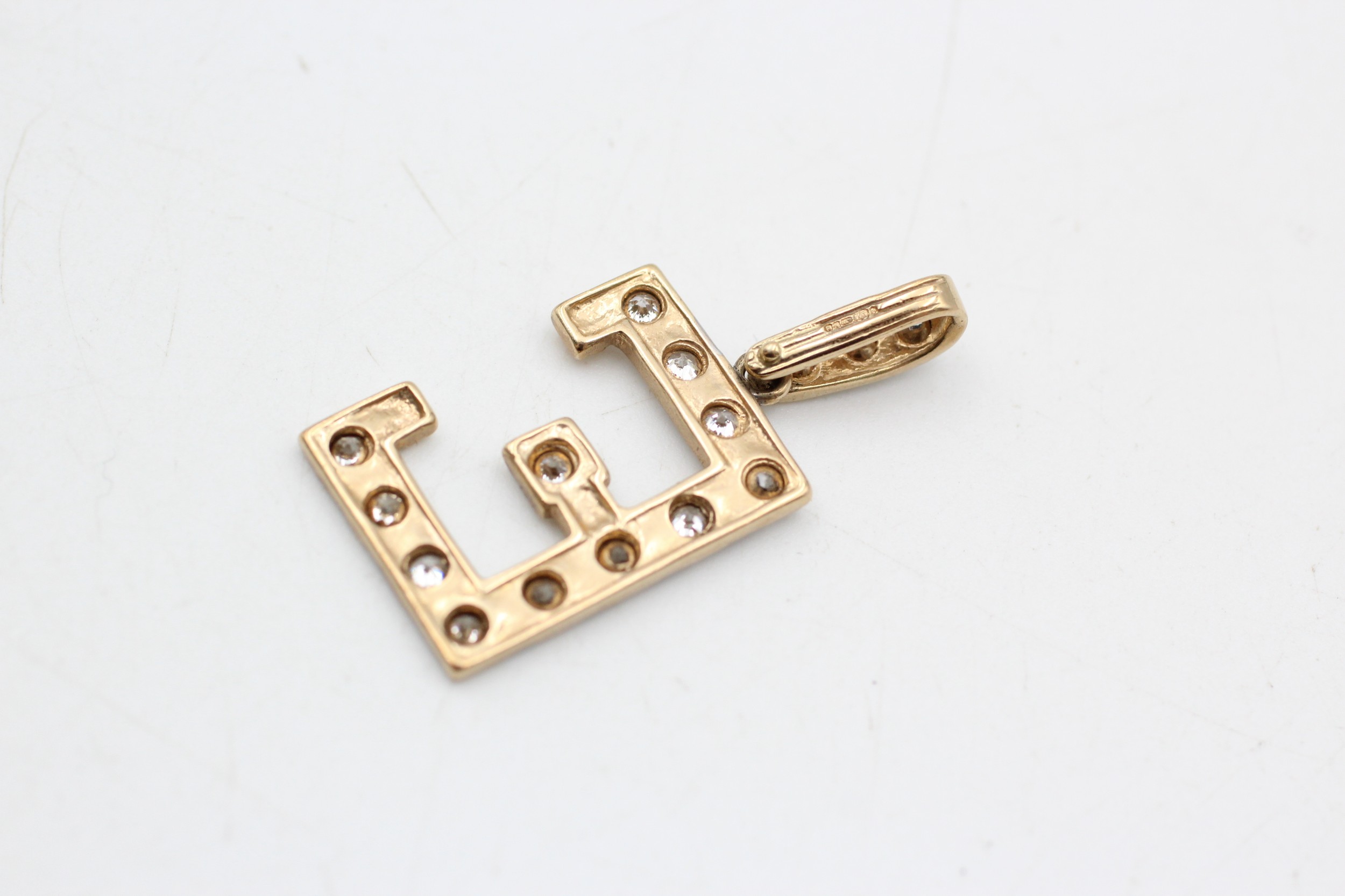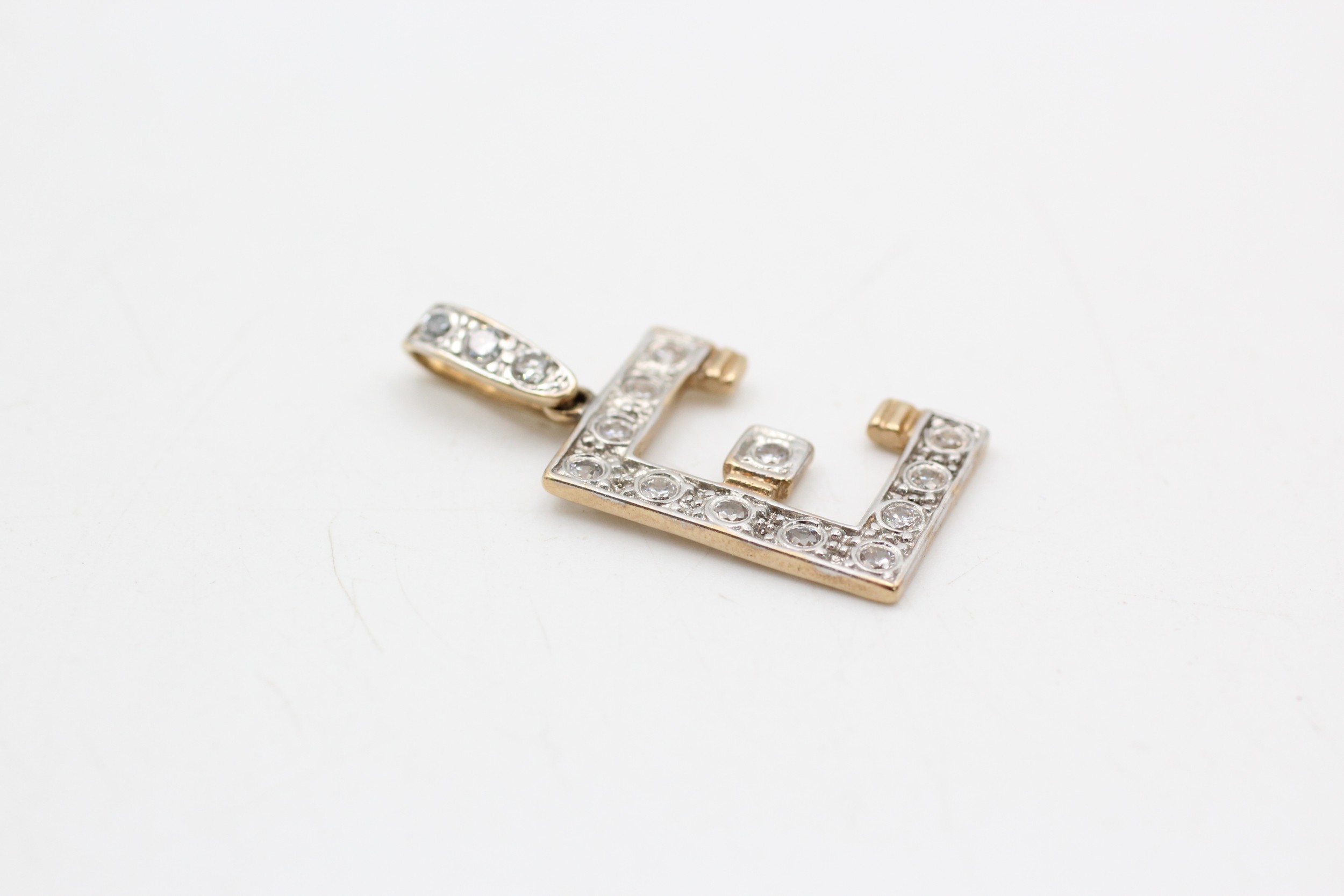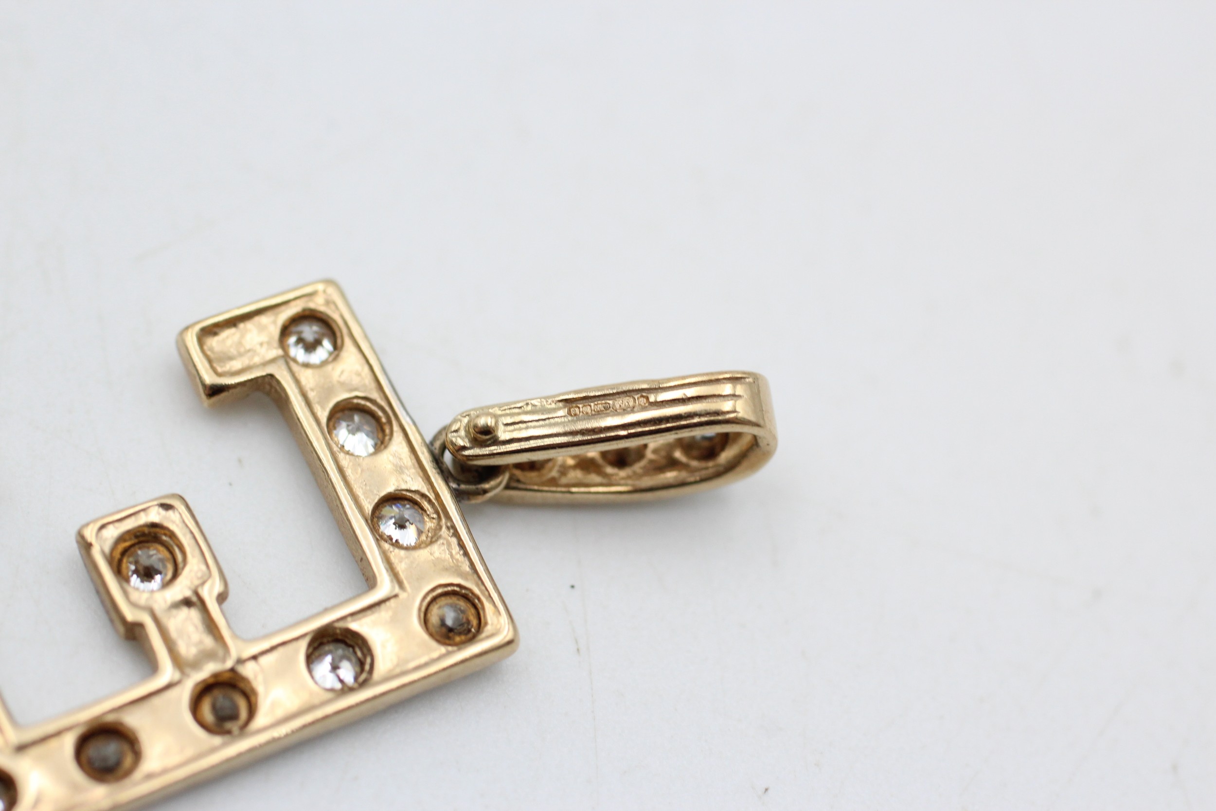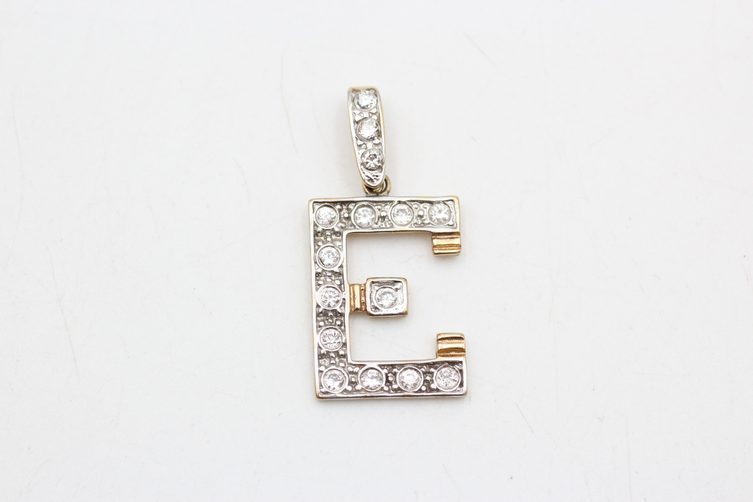 9ct gold clear gemstone set large "E" initial pendant (4.1g)