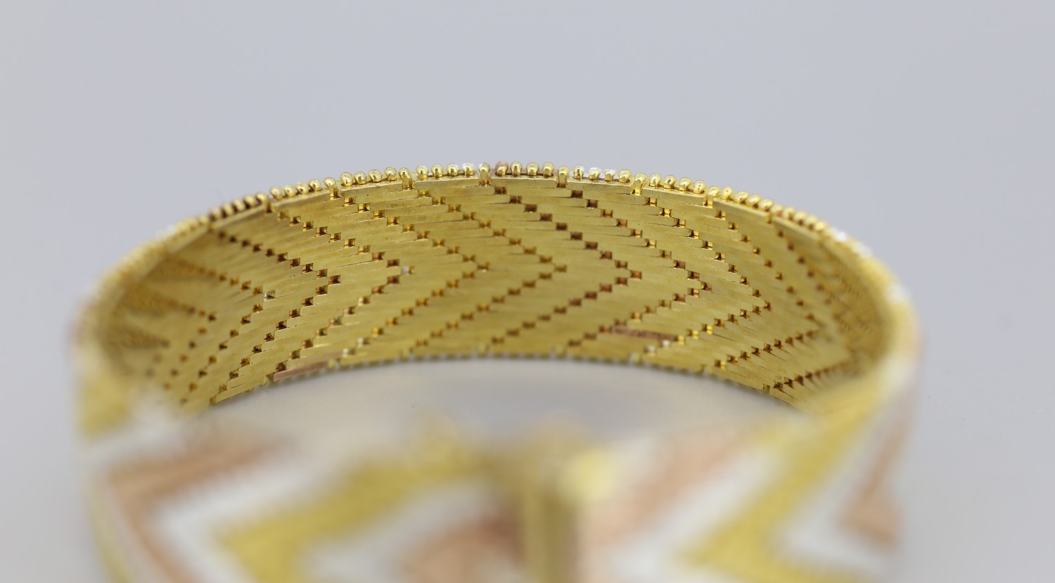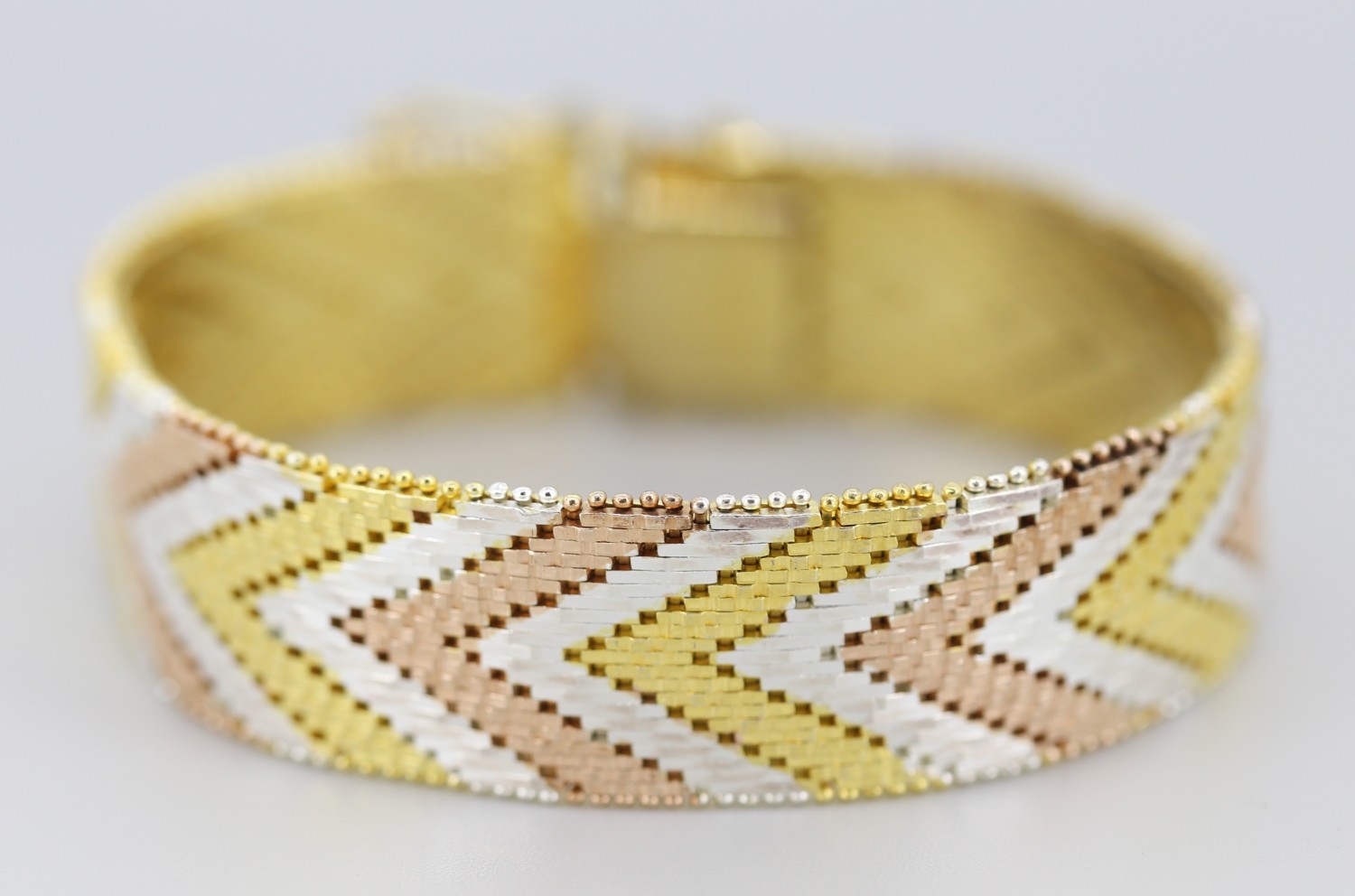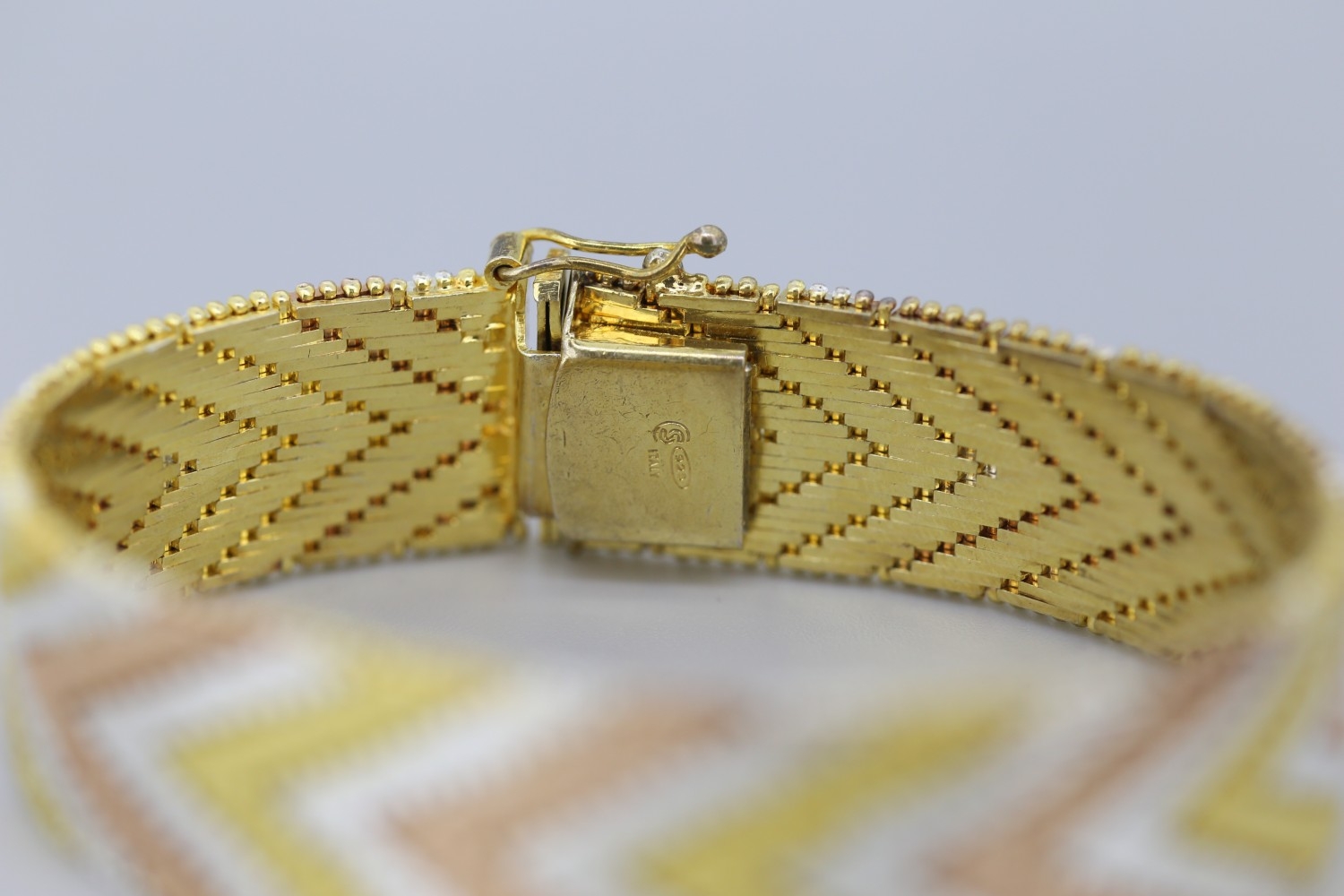 Attractively Detailed Silver Gilt Tri-Colour Chevron Link Bracelet 18cm Long