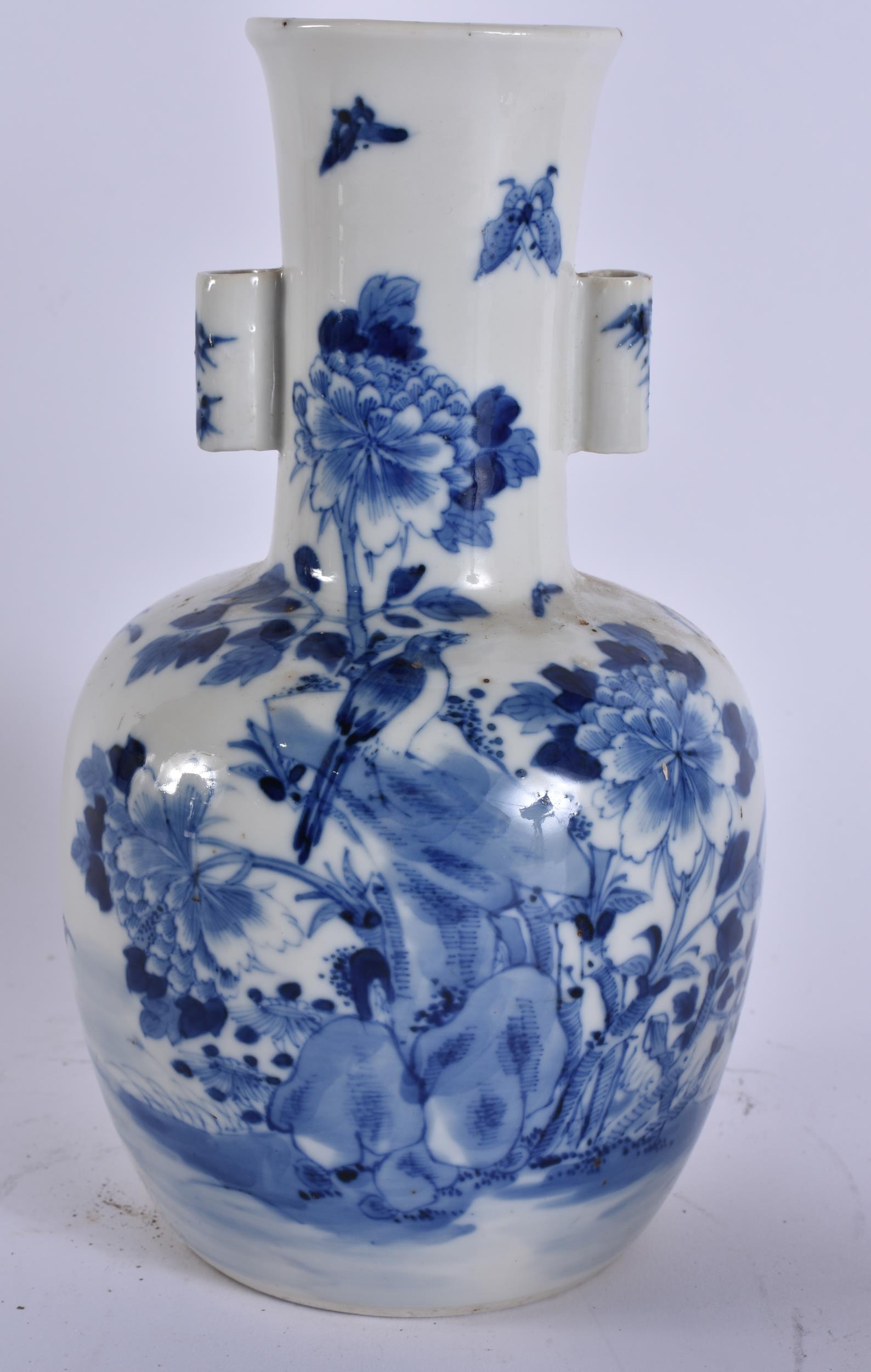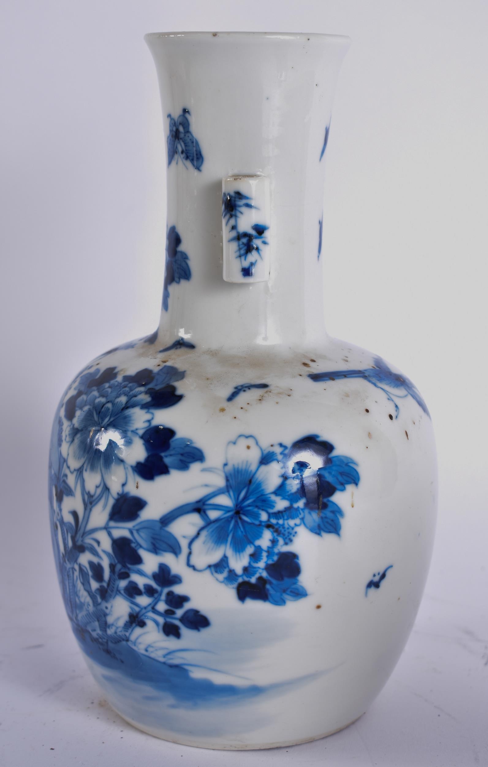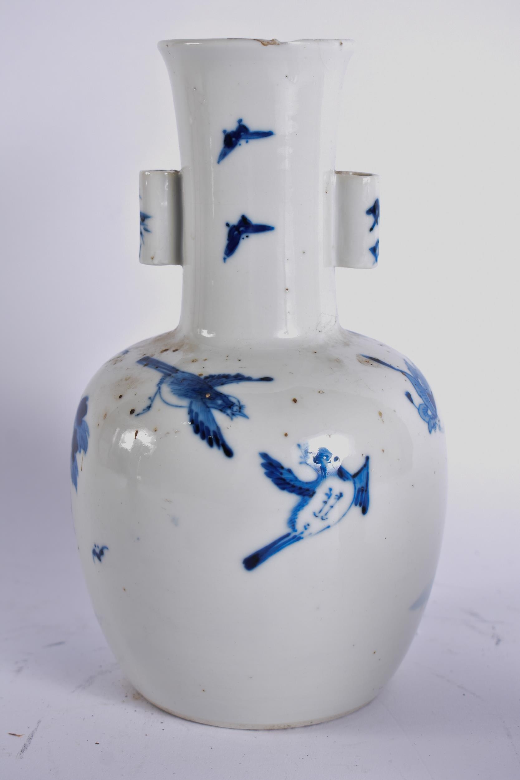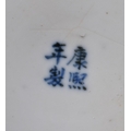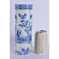 A 19TH CENTURY CHINESE BLUE AND WHITE PORCELAIN ARROW VASE bearing Kangxi to marks to base. 21 cm high.
