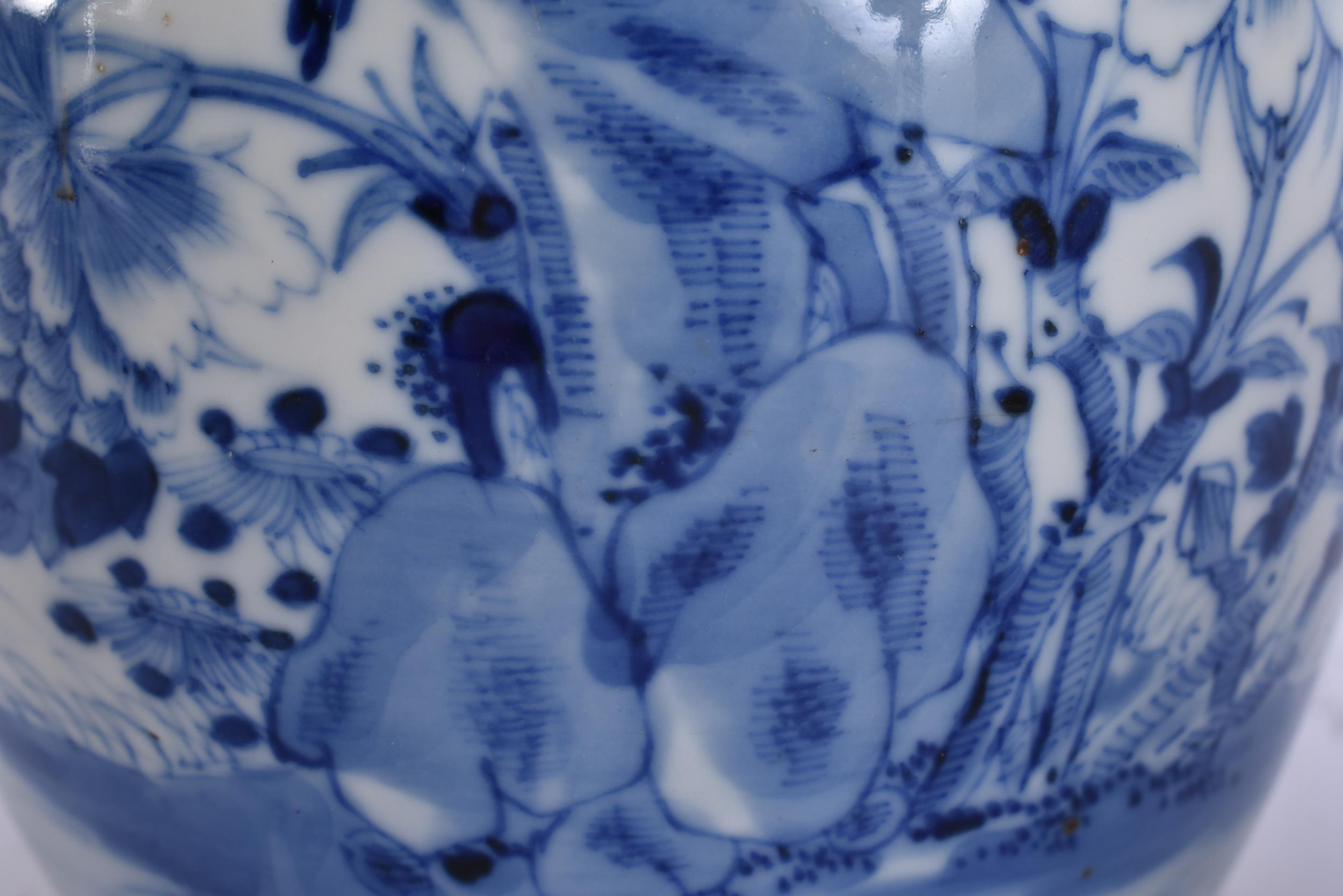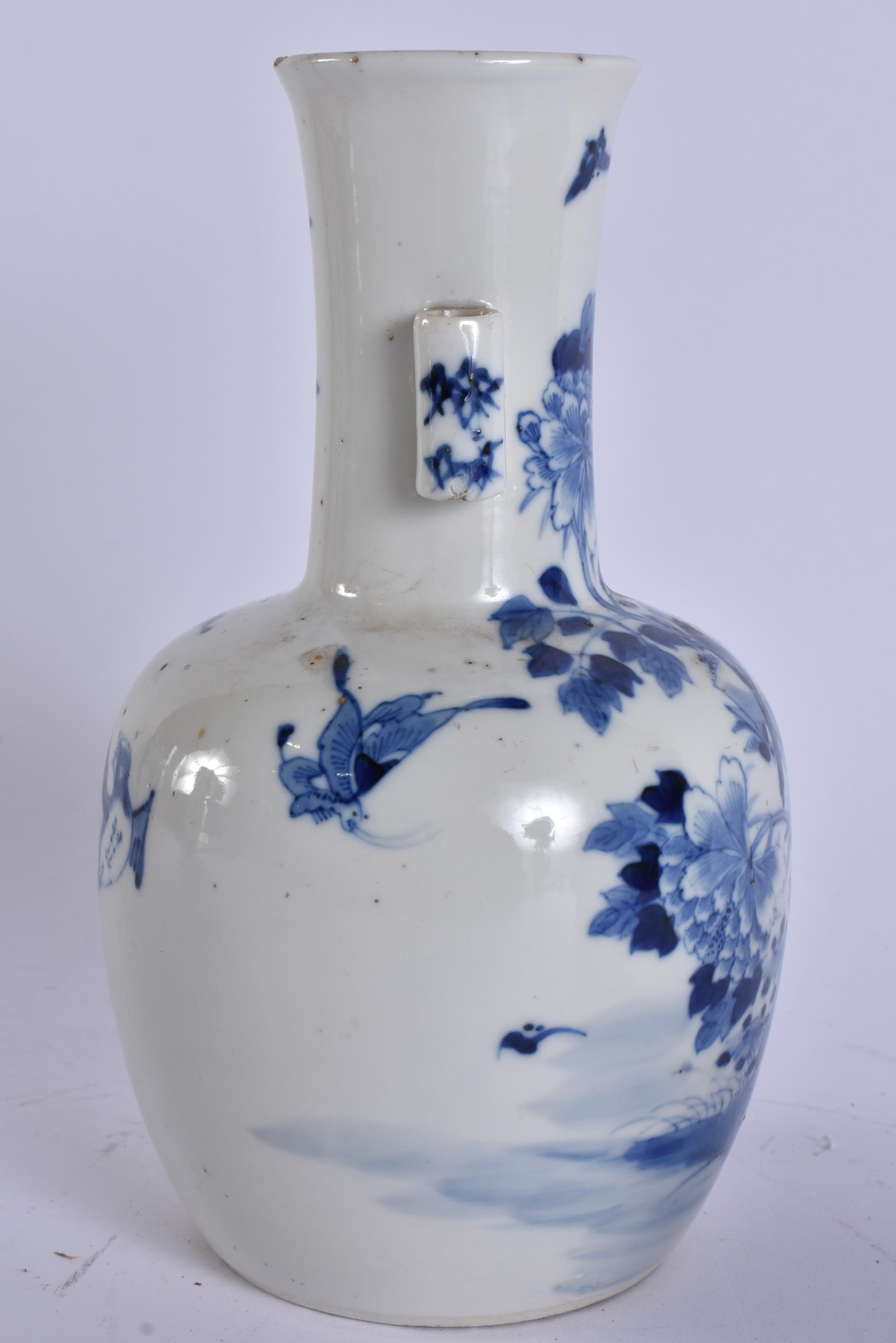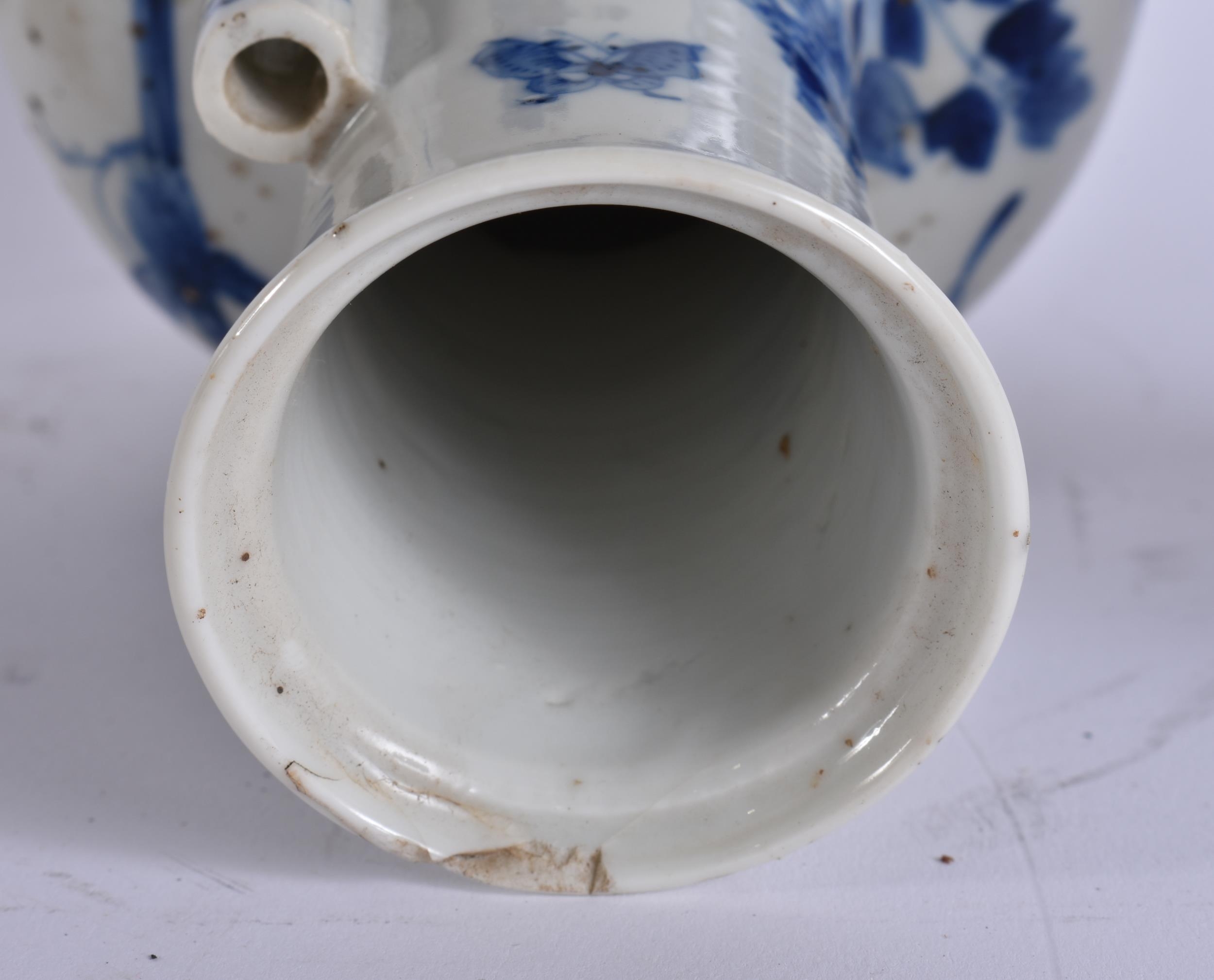 A 19TH CENTURY CHINESE BLUE AND WHITE PORCELAIN ARROW VASE bearing Kangxi to marks to base. 21 cm high.