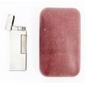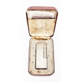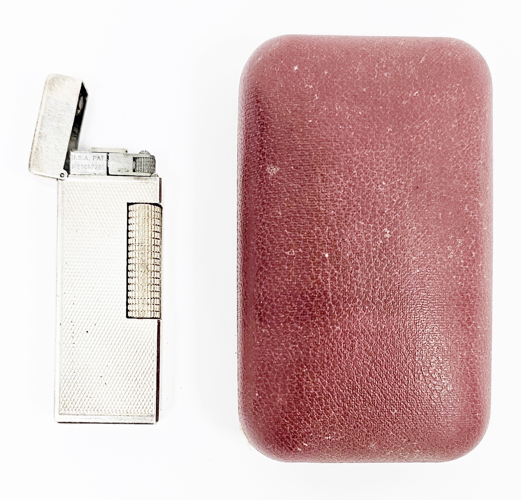 Dunhill silver plated engine-turned cigarette lighter in original fitted case, stamped 'Brit.726982, US Pat.RE24163', and stamped Dunhill, made in Switzerland