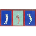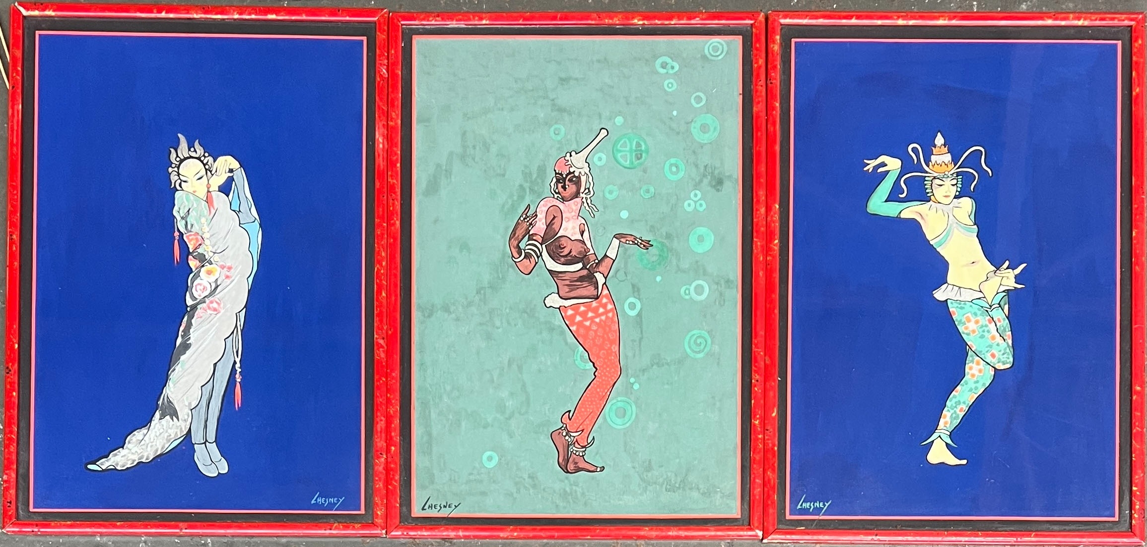 Paul Chesney (fl. 1925-33), three early 20th century gouache studies of women, each 37.5x26cm, in good red frames