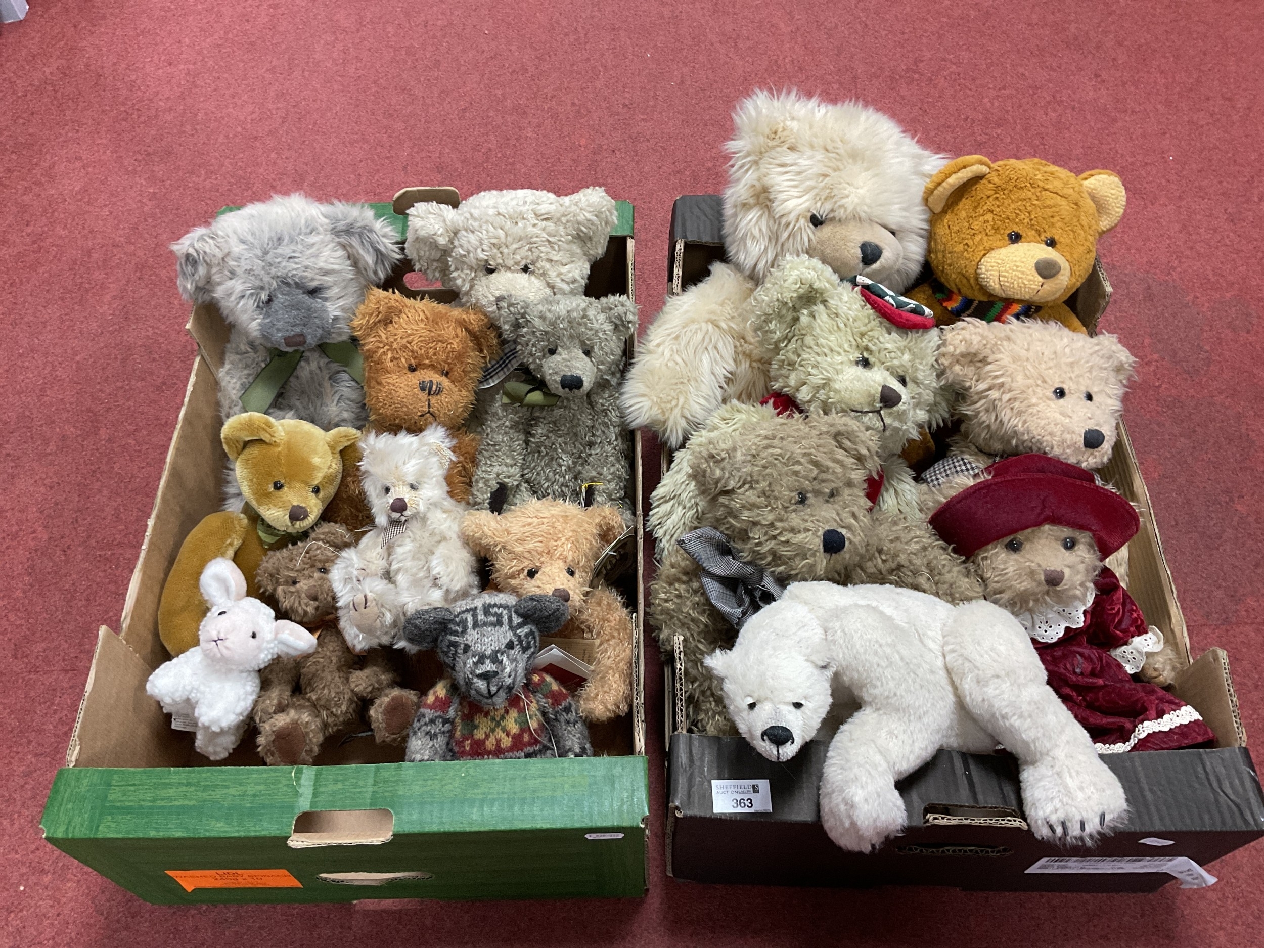 Approximately Fourteen Soft / Teddy Bears / Soft Animals, by Various Makers (Mainly Russ Berrie). To Include, Russ Berrie, Play Makers, The Boyds Collection, Etc. (Two Boxes)
