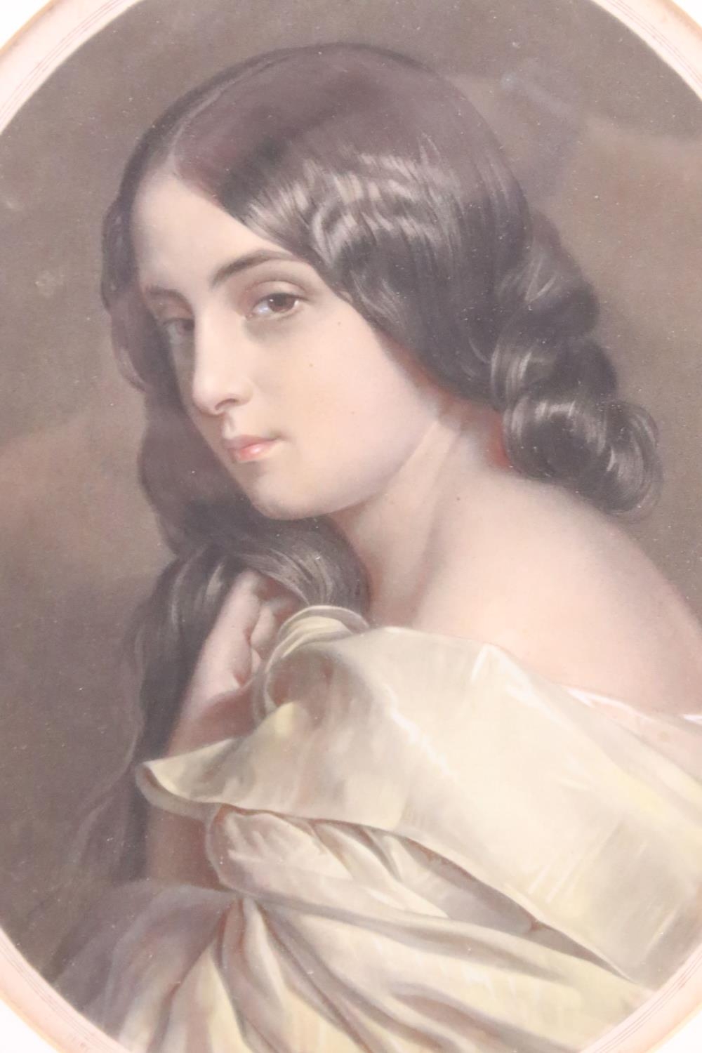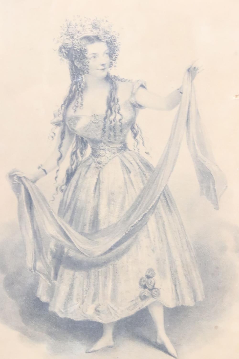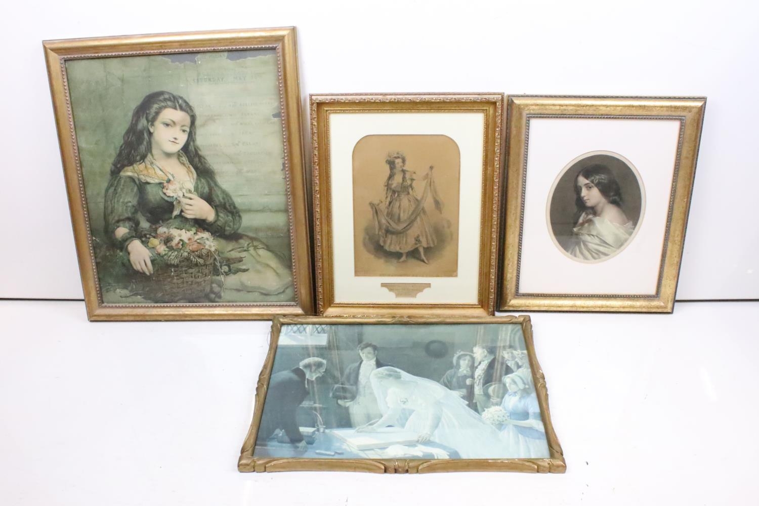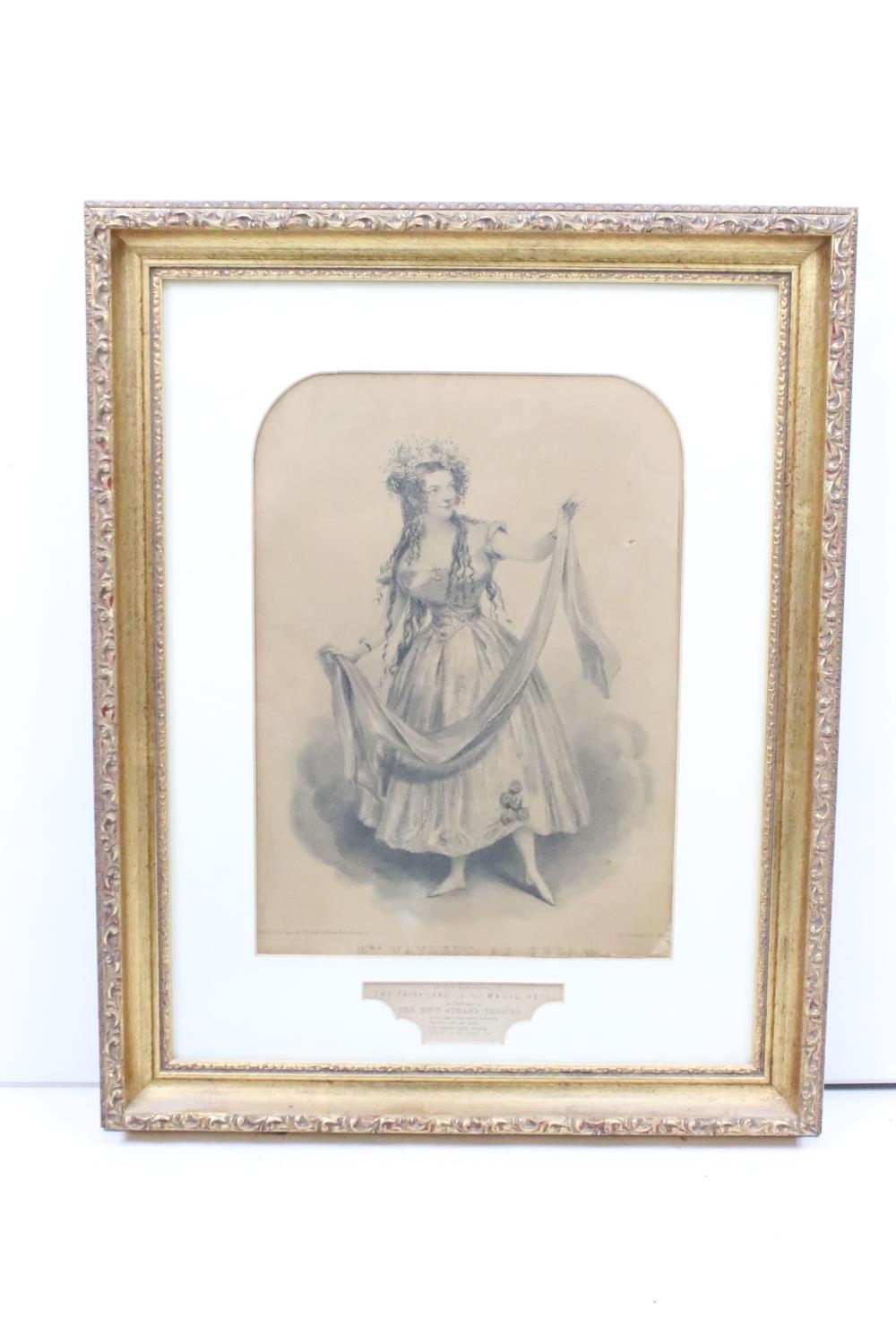 Hermann Winterhalter (1808- 1891), portrait of a girl, aquatint, 27.5 x 23cm, gilt framed, Mrs Waylett, As Zela, in the New Opera of The Fairy Lake, or the Magic Veil, as performed at The New Strand Theatre, print 33.5 x 24cm, gilt framed and two other prints, both framed and glazed