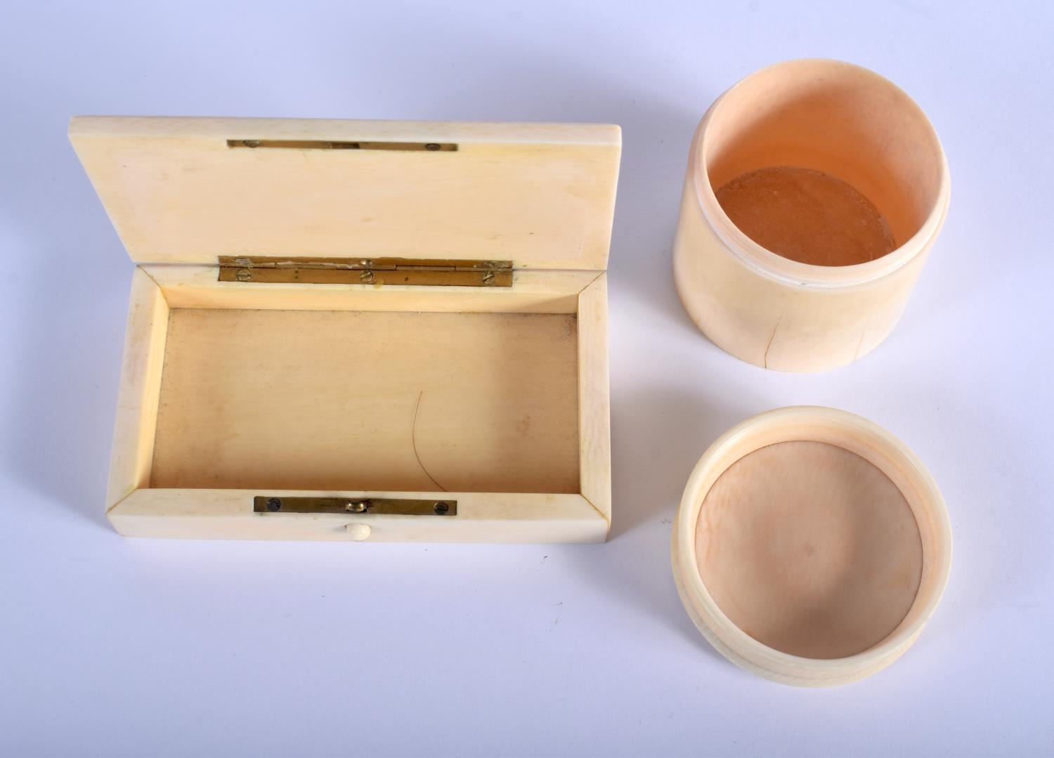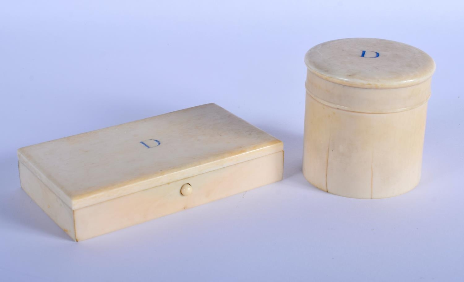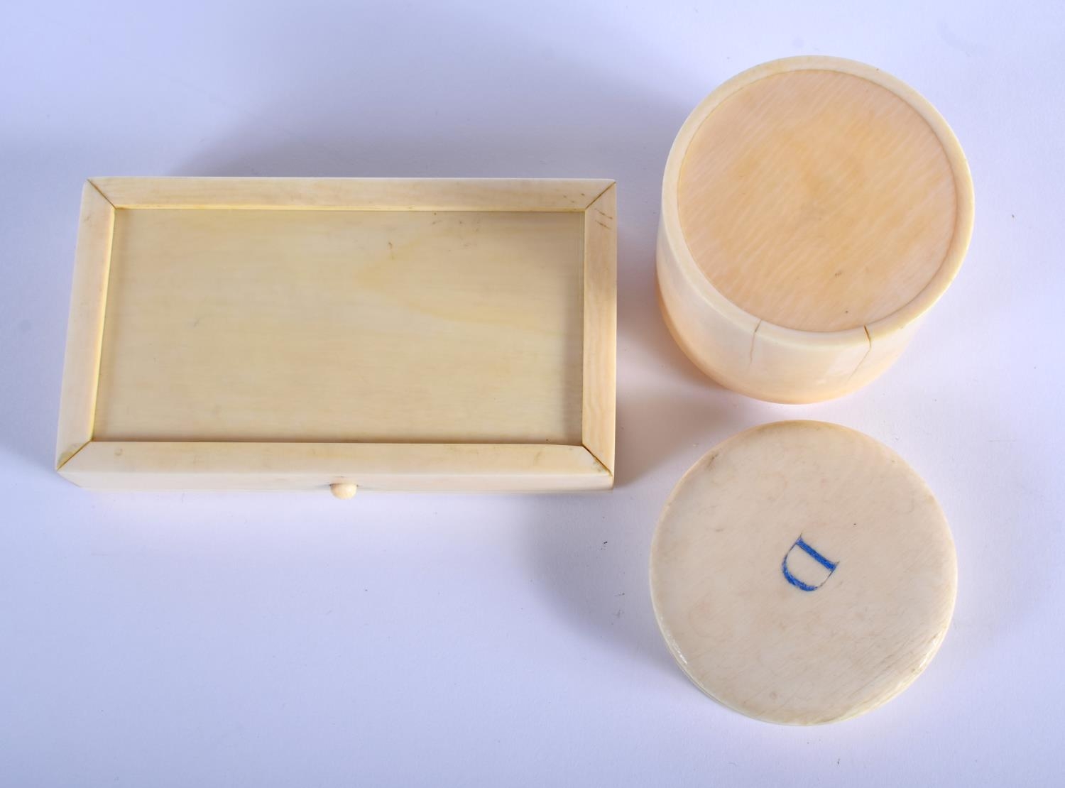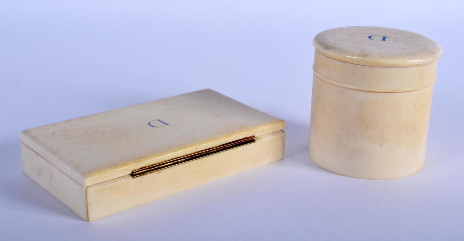 TWO 19TH CENTURY EUROPEAN CARVED IVORY BOXES possibly from a vanity set. Largest 12.5 cm x 7.5 cm. (2)