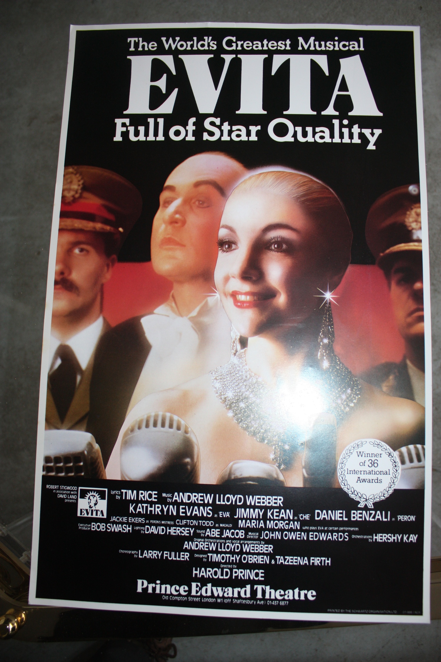 Theatre Poster for Evita at the Prince Edward Theatre, Old Compton Street, London circa 1990