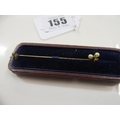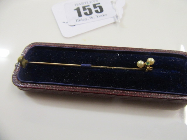 CASED VICTORIAN EMERALD AND PEARL STICK PIN