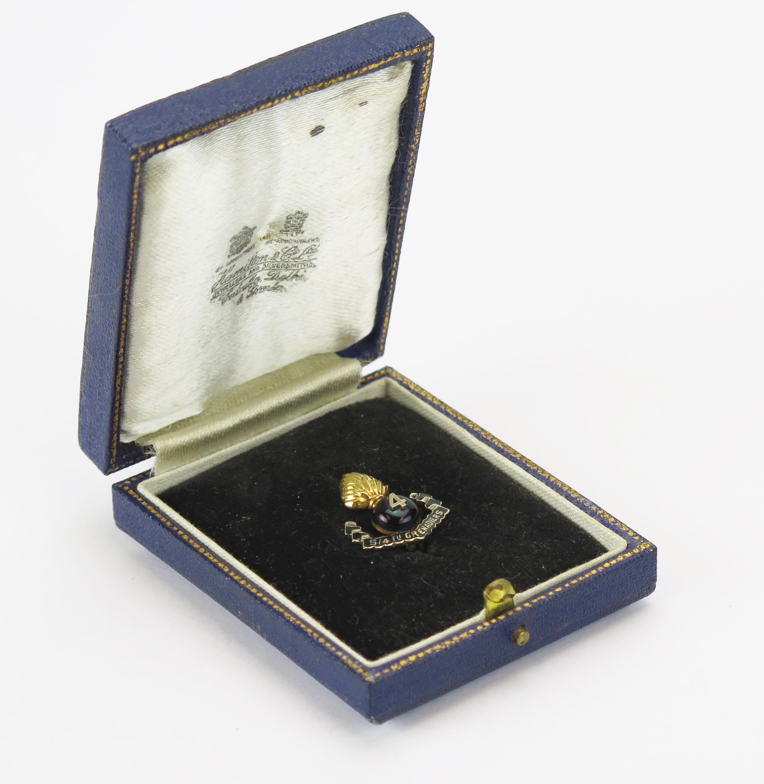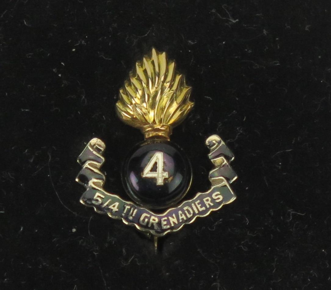 A 5/4 GRENADIERS Sweetheart Brooch in precious yellow metal and enamel, 21.7mm high, KEE tests as 15ct, 3.39g. In a fitted Hamilton & Co. box. UNLESS OTHERWISE STATED, THE KEE TEST IS A SURFACE TEST ONLY AND IS NOT A GUARANTEE OF GOLD PURITY.