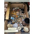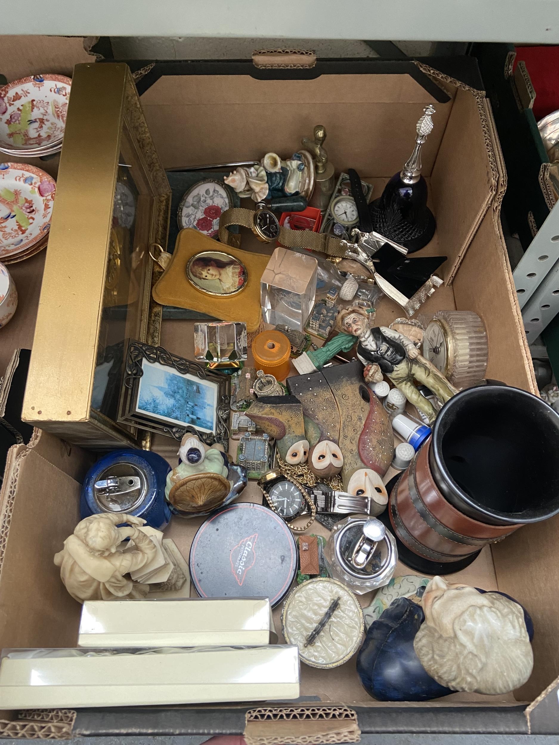 Box containing a clock, watch, figurines and collectibles