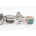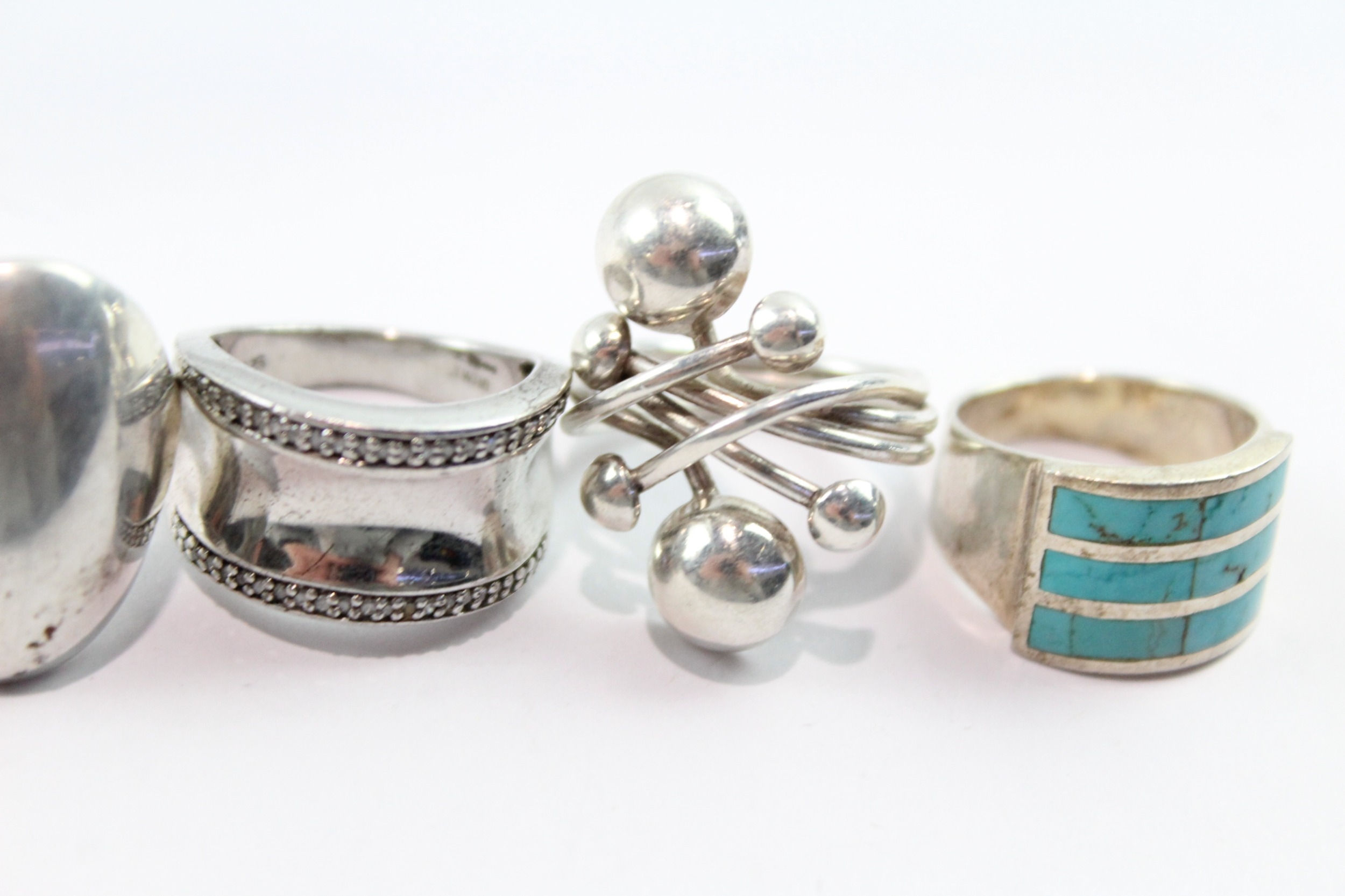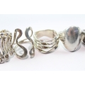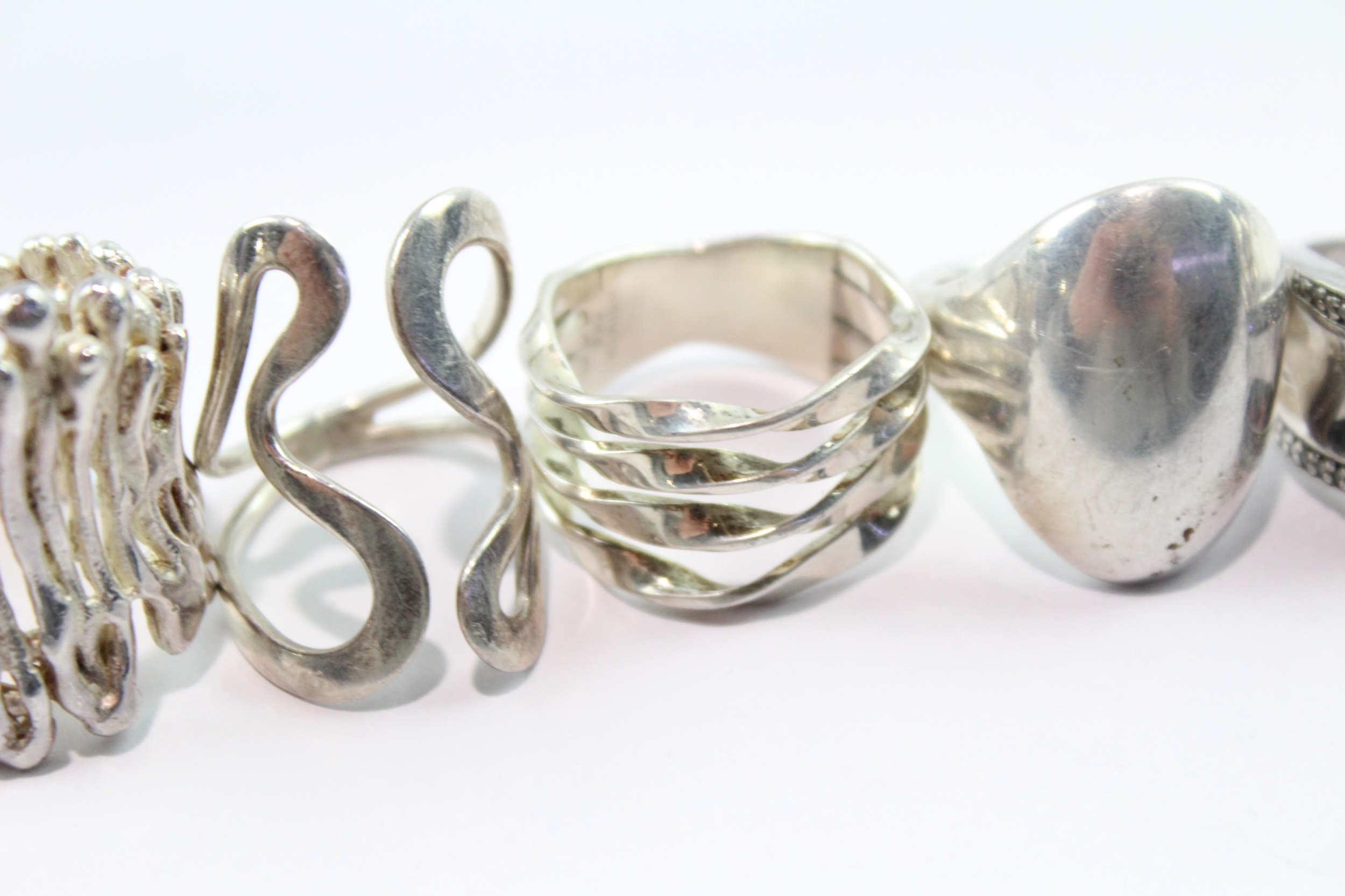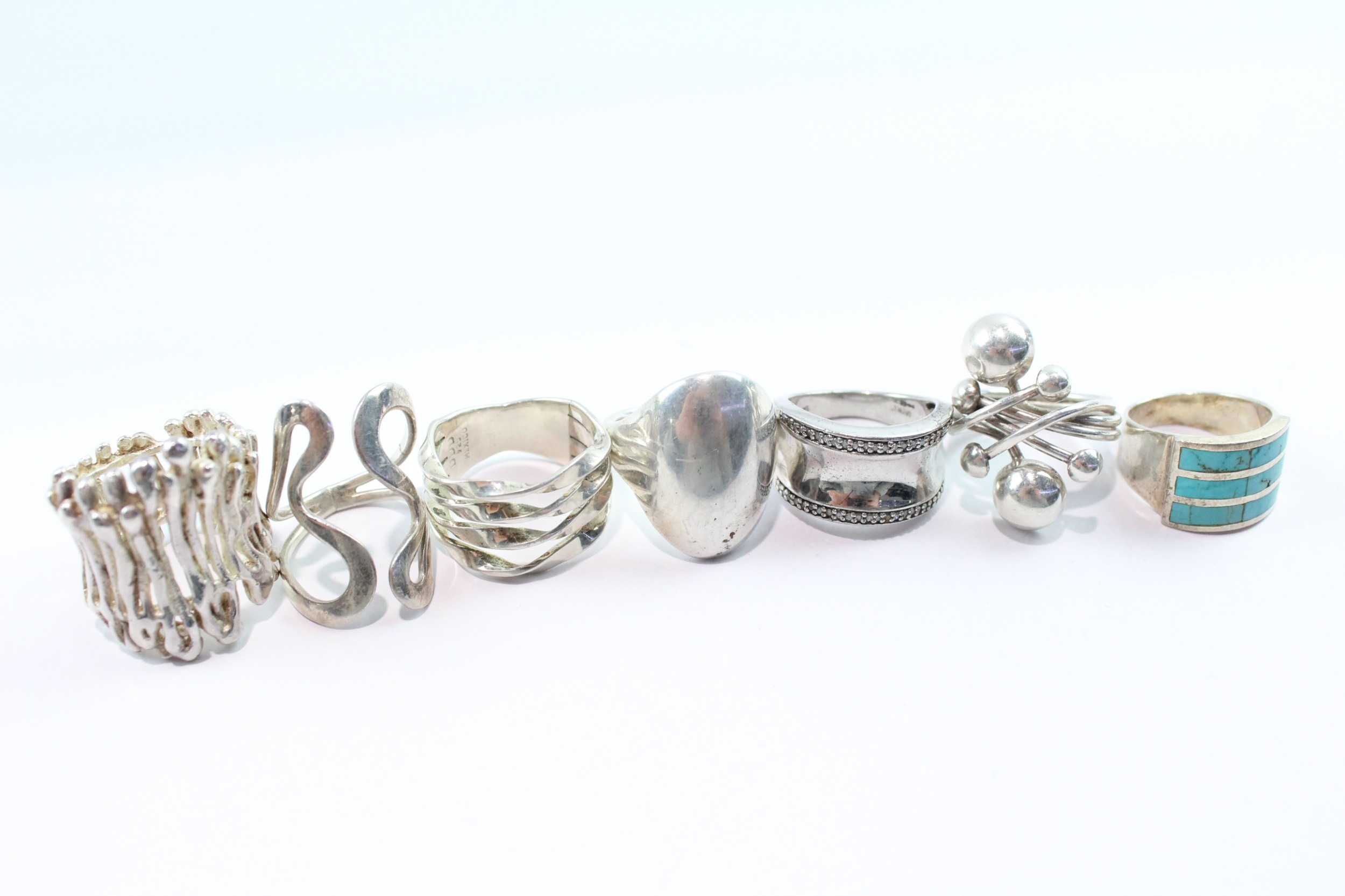 Collection of Sterling Silver Rings inc. Modernist, Gemstone Inlay x 7 67g
