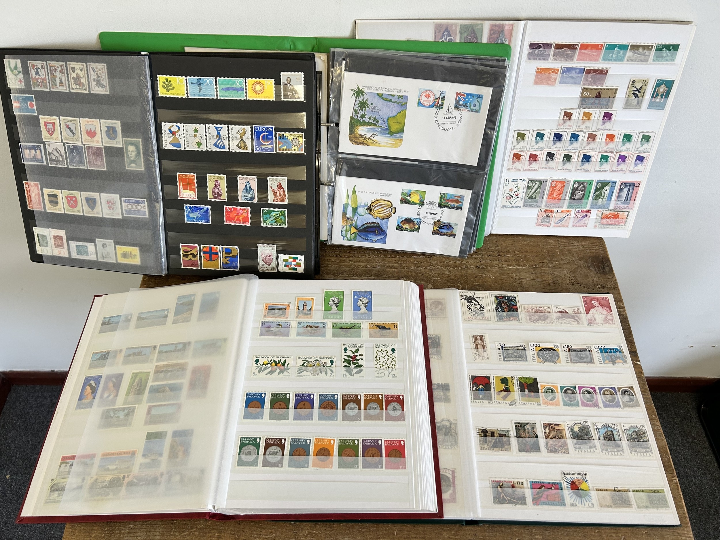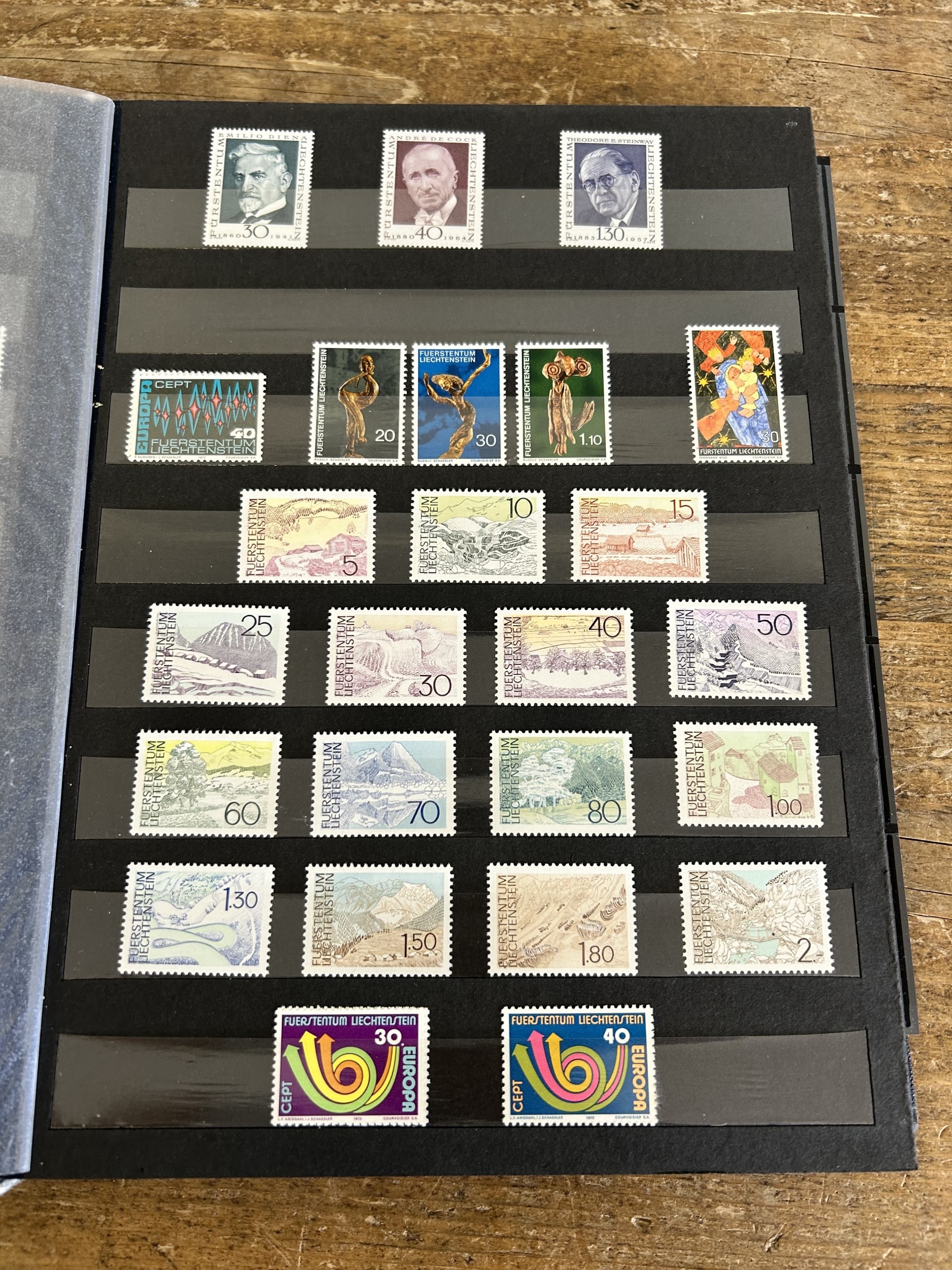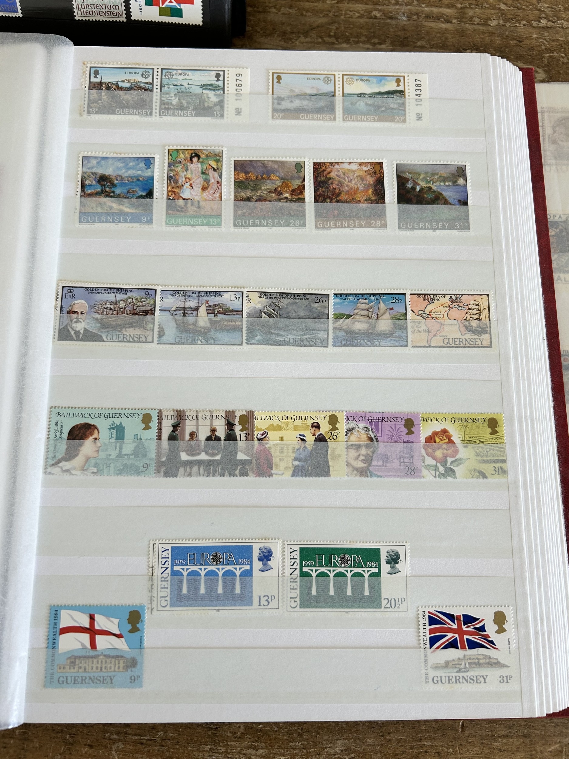 Five stamp stock books to include mint stamps, all well displayed including Guernsey, Coco Islands, Italy, Indonesia and a very good set of Liechtenstein stock book stamps