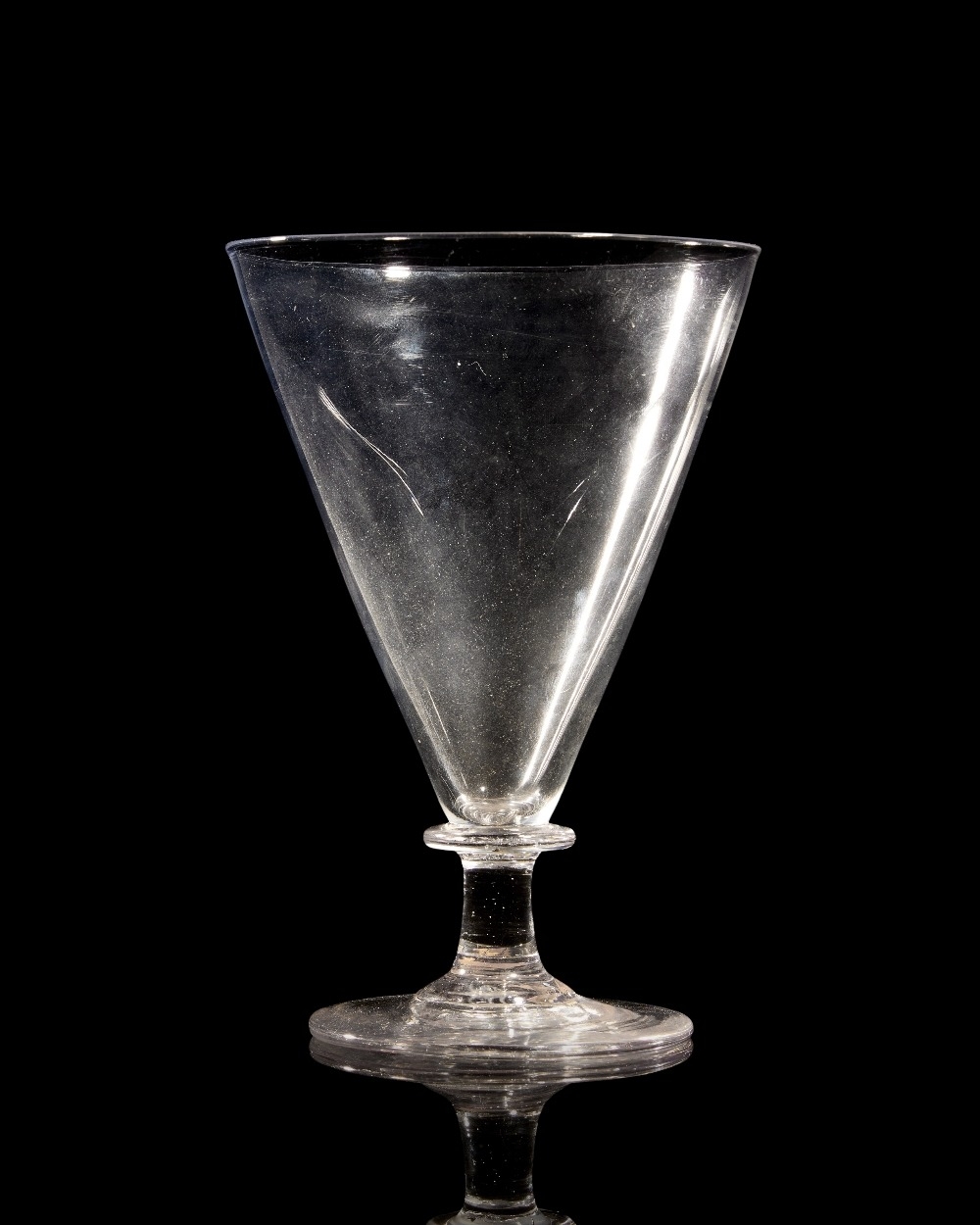 A large George III rummer, c.1800, the long trumpet bowl on a thick capstan stem with cushioned foot, 20.8cm highÿ