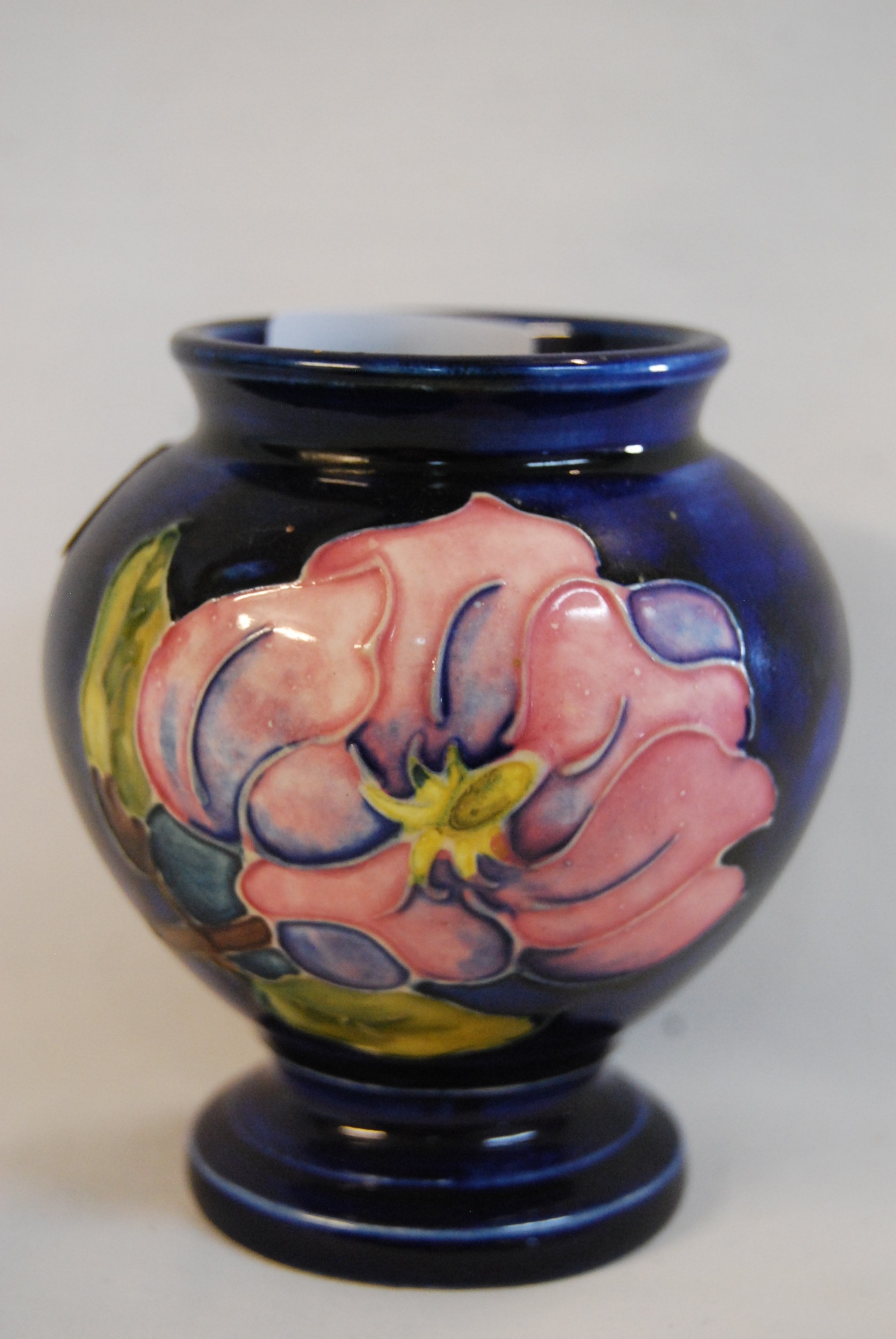 MOORCROFT "MAGNOLIA" BULBOUS VASE, MADE IN ENGLAND (9CM)