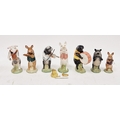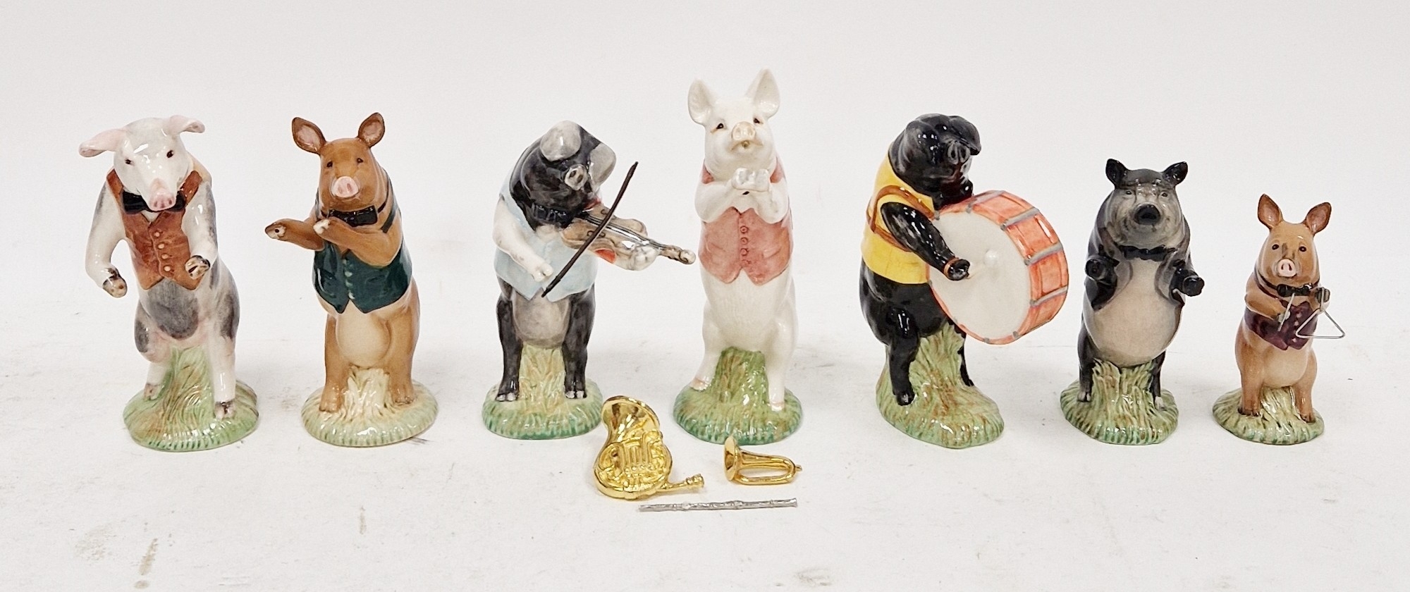 Group of Beswick pottery pig musicians comprising Daniel, David, Richard, James, John, Matthew and Michael, printed black marks (7)