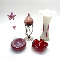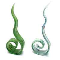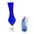 2 art glass vases blue and white studio art.