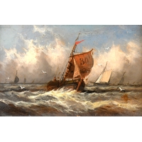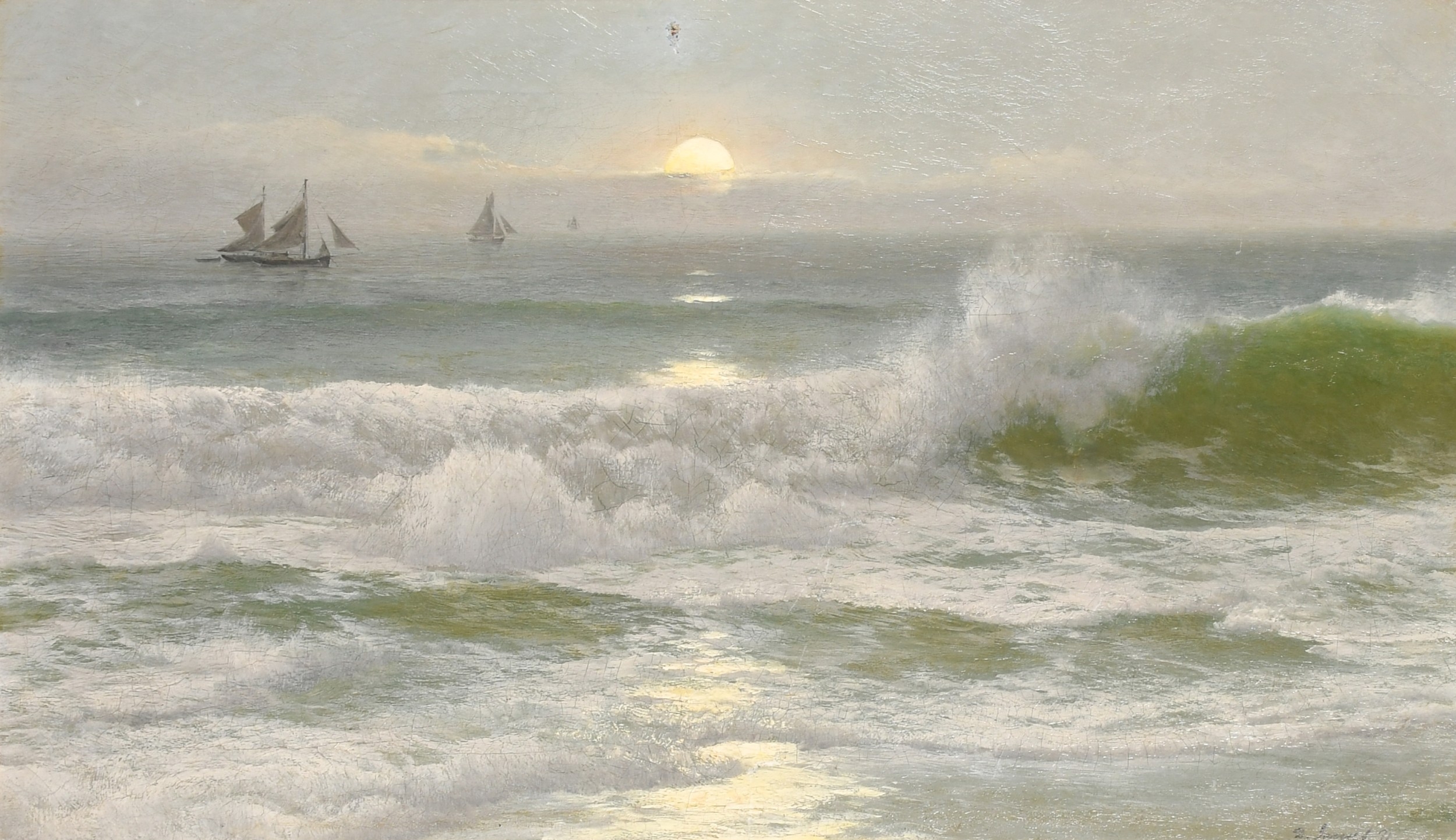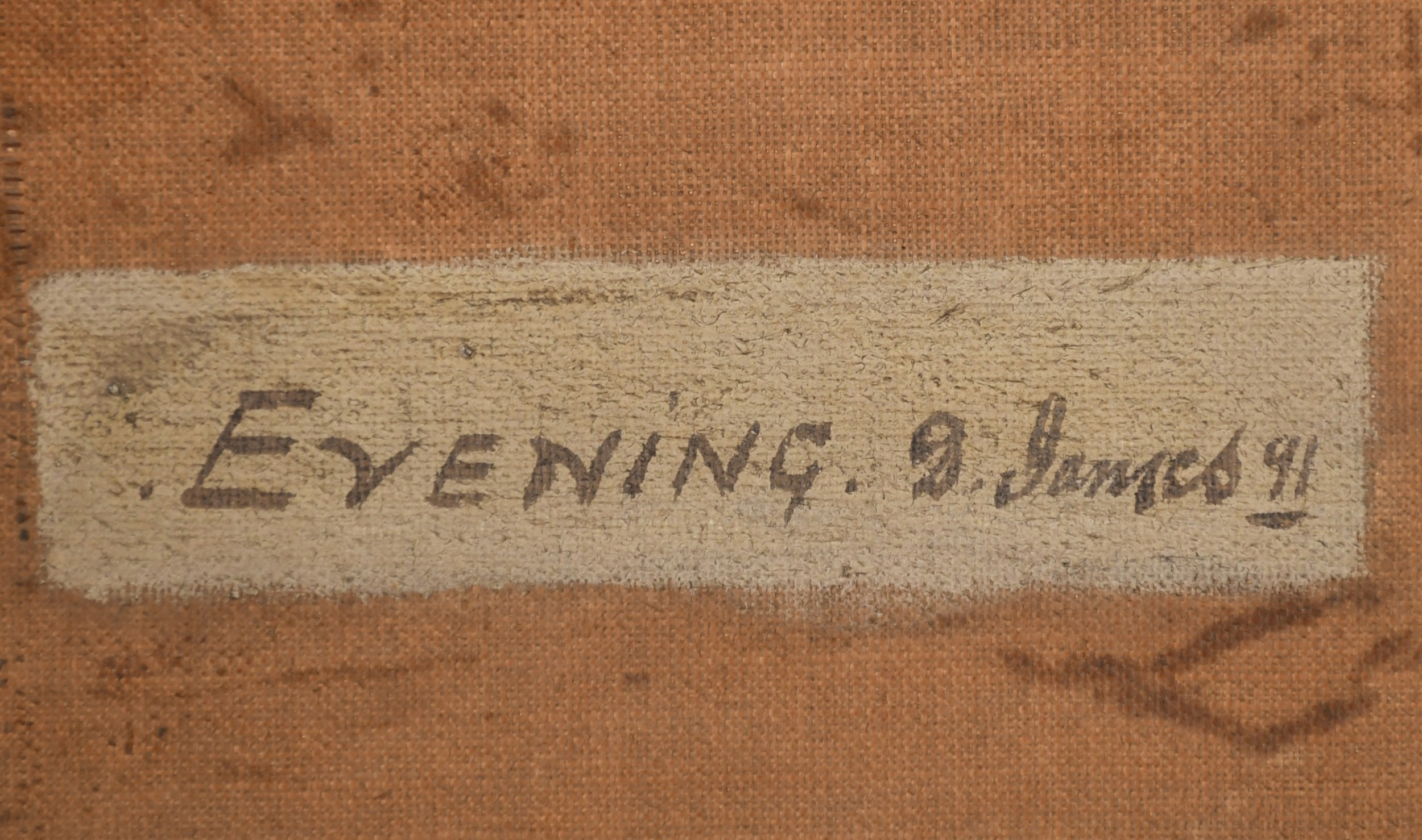 David James (1853-1904) British. "Evening", Oil on canvas, Signed and dated '91, and signed and inscribed verso, 18" x 30" (45.7 x 76.2cm)