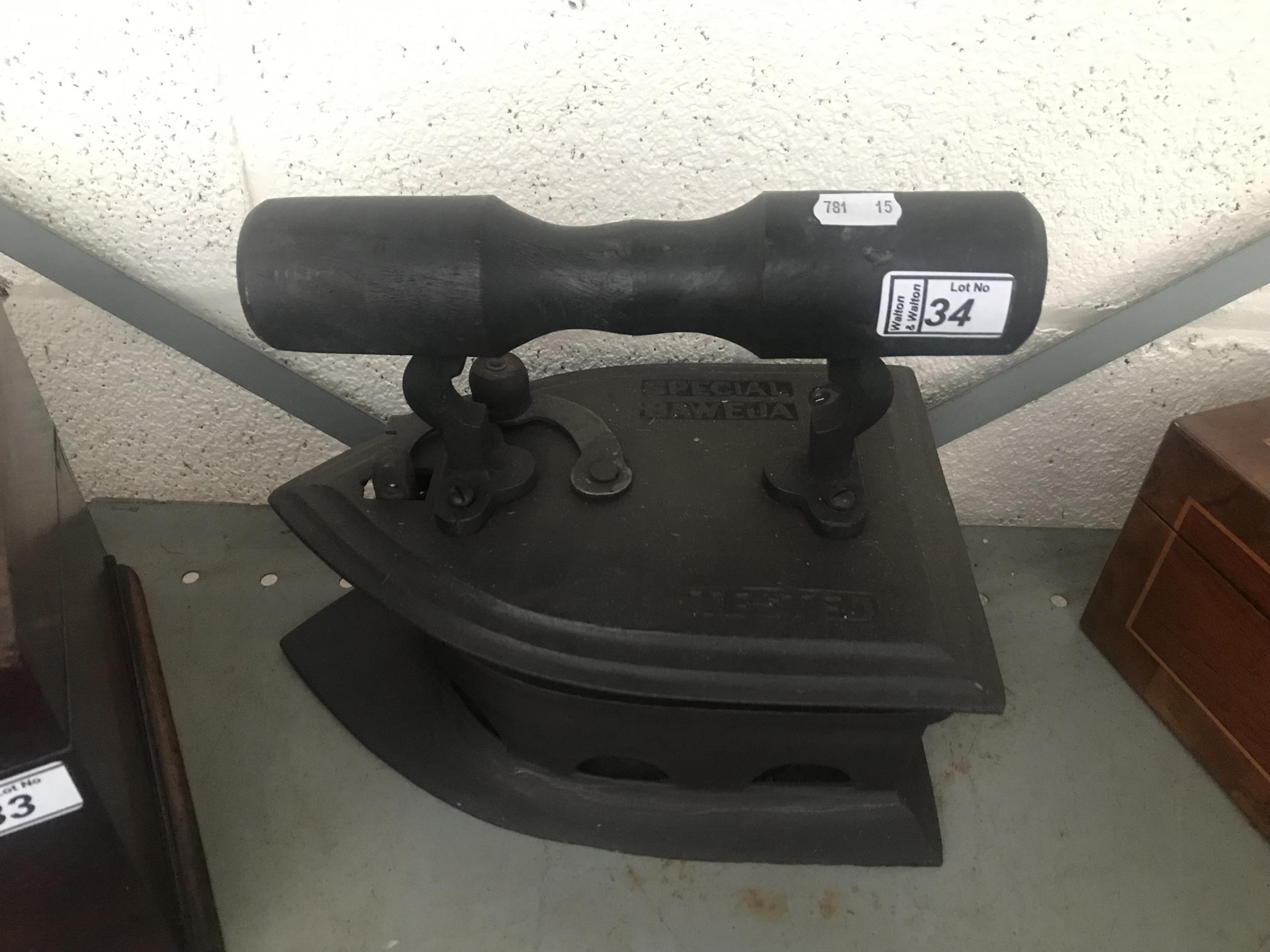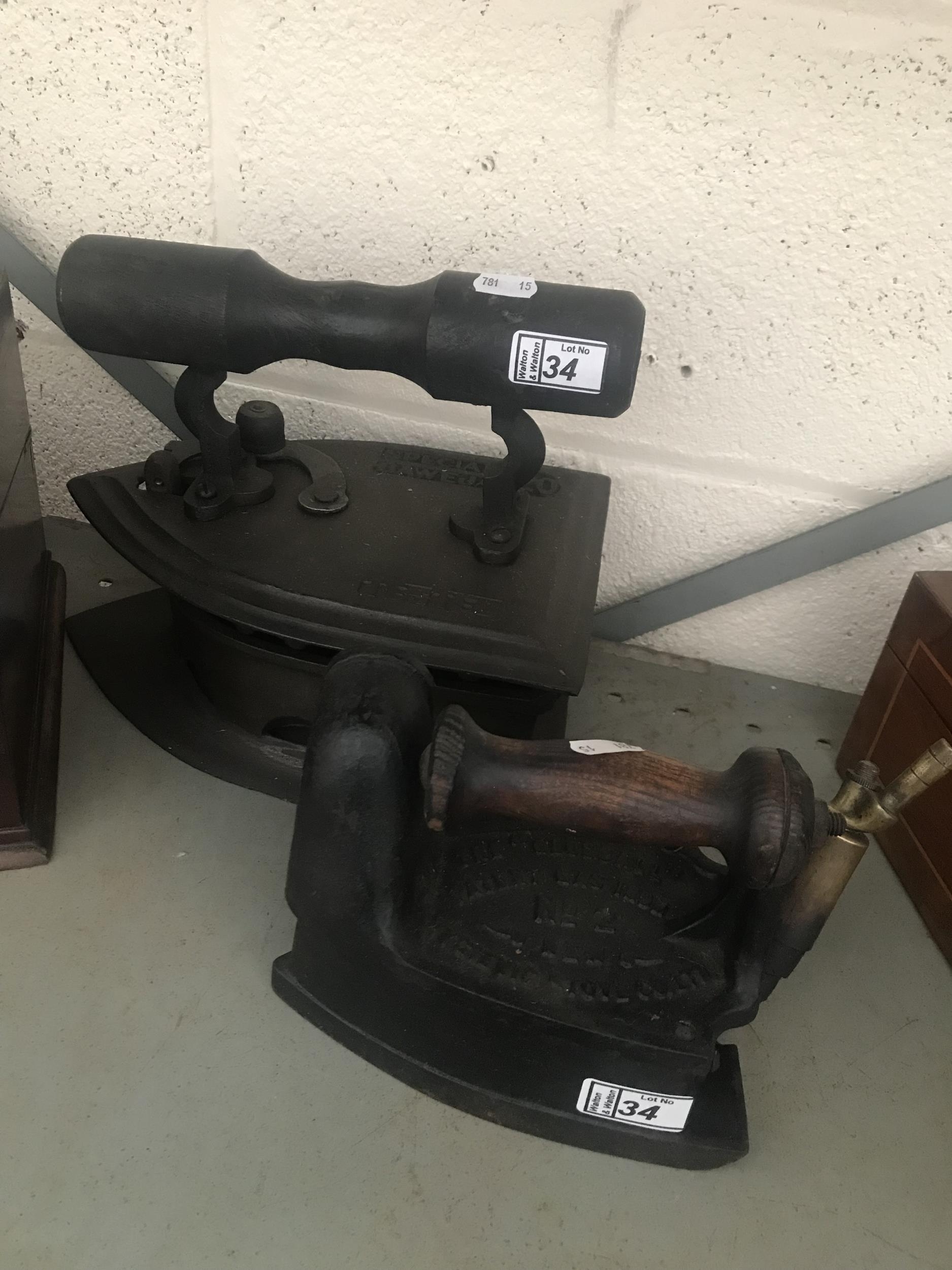 Large vintage carpet iron and a gas iron