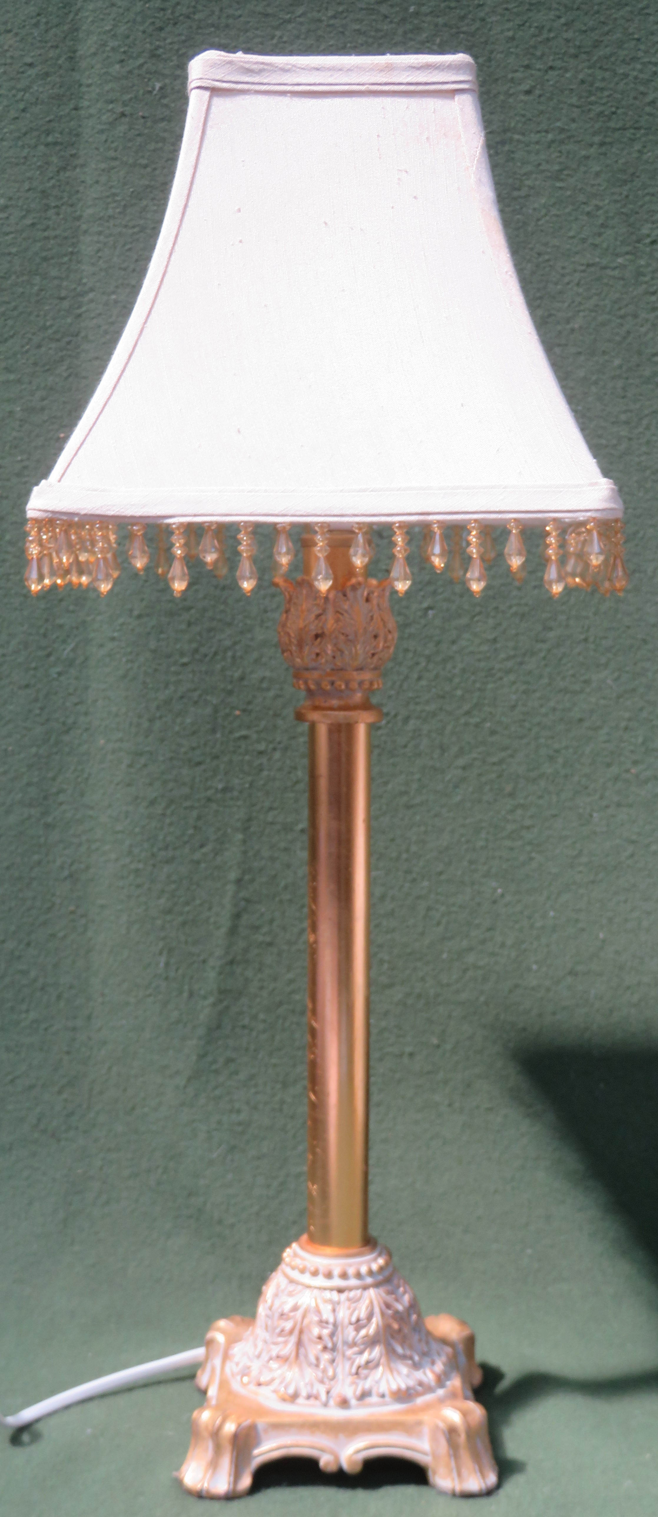 Pretty 20th century gilded table lamp with shade, lamp base measures Approx. 37cms High