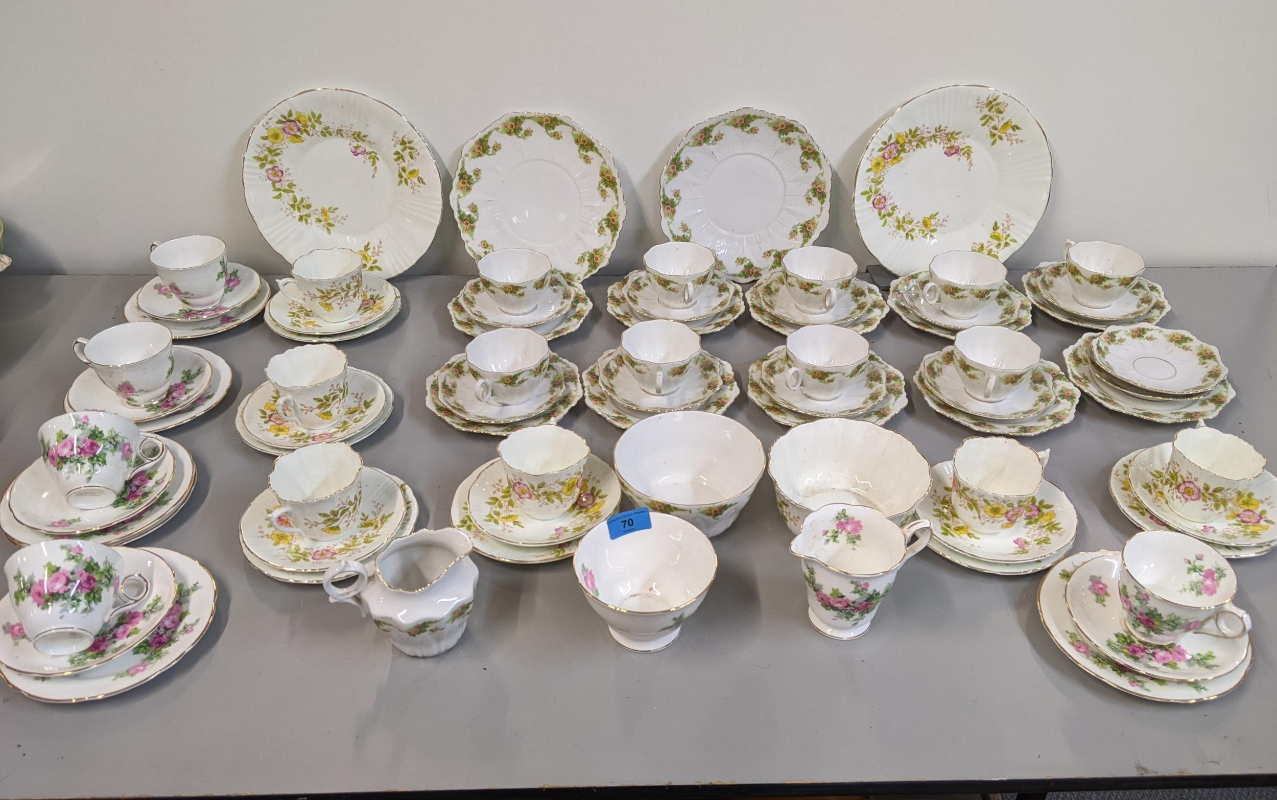 Three late 19th and early 20th century tea sets each decorated with flowers to include Royal Staffordshire