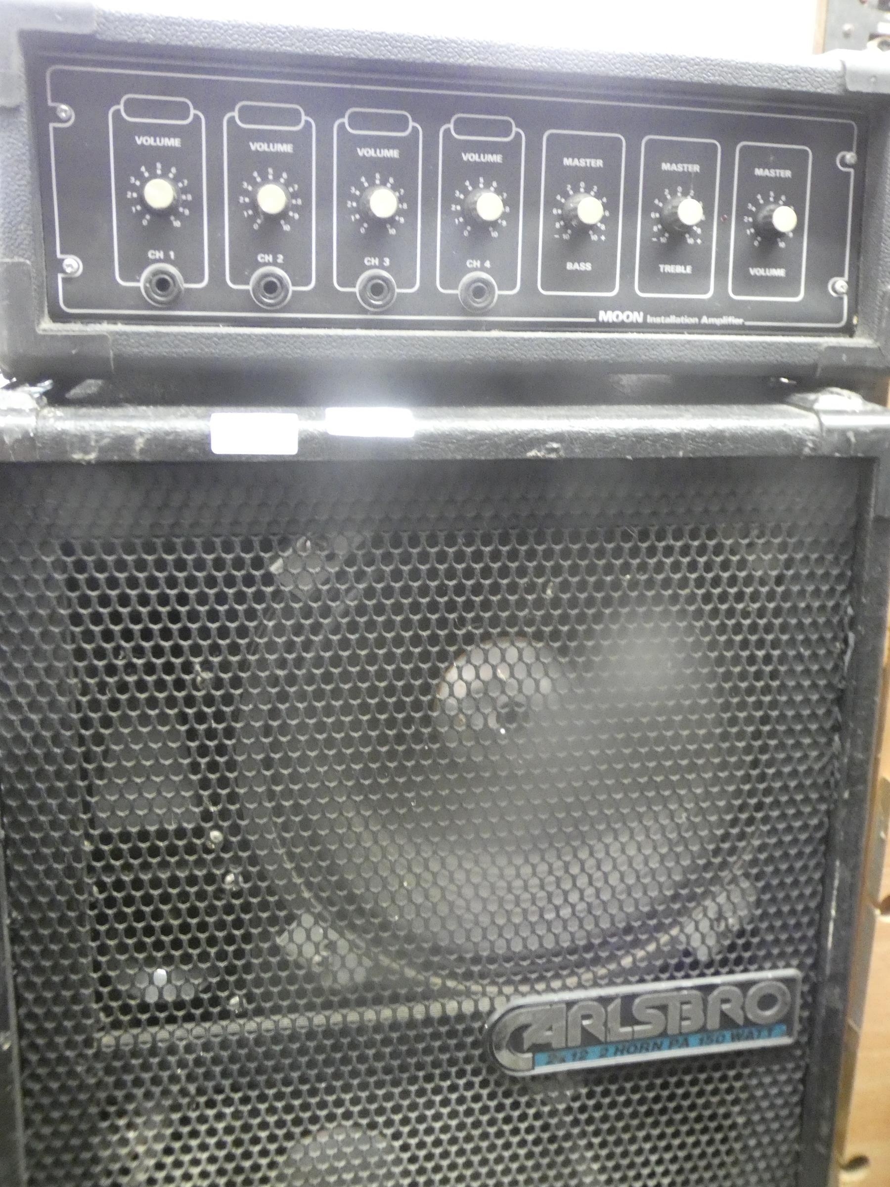 Peavey PV1500 power amplifier, 2 60cm Carlsbro speakers and Moon installation amp