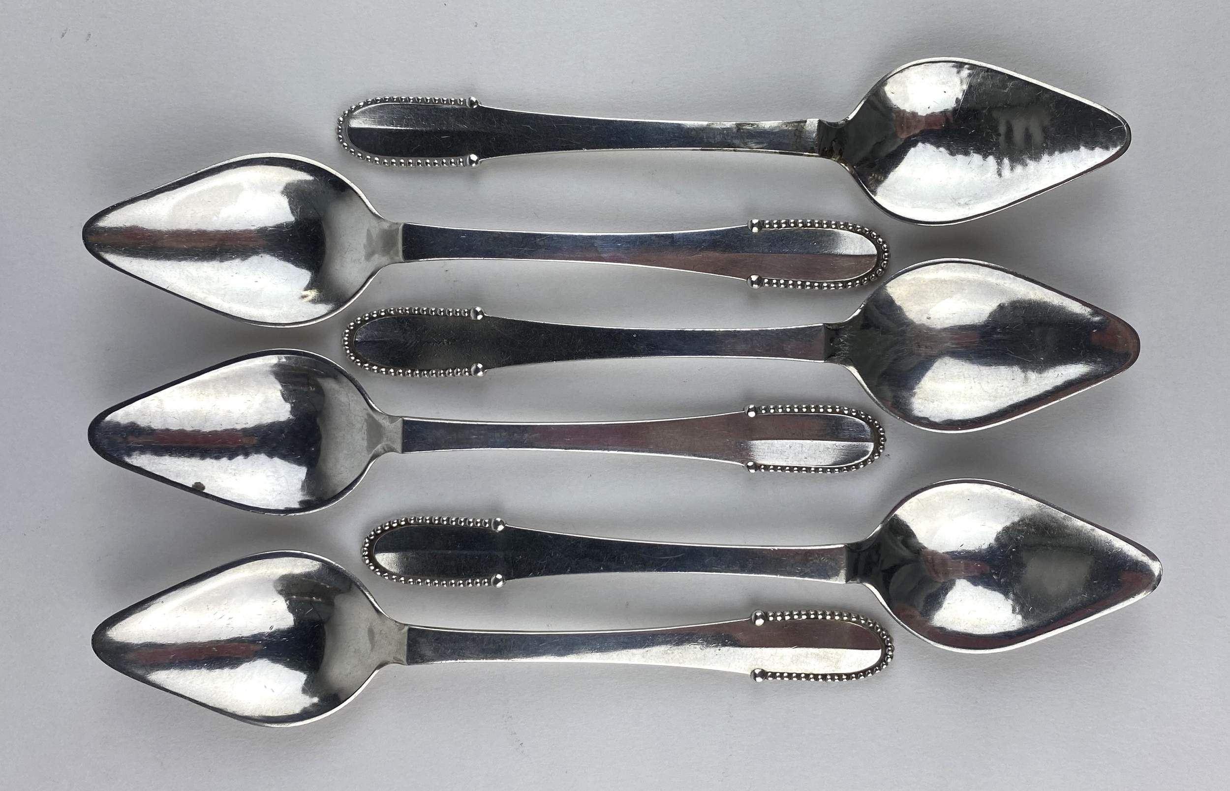 A set of six Georg Jensen beaded silver grapefruit spoons 5oz