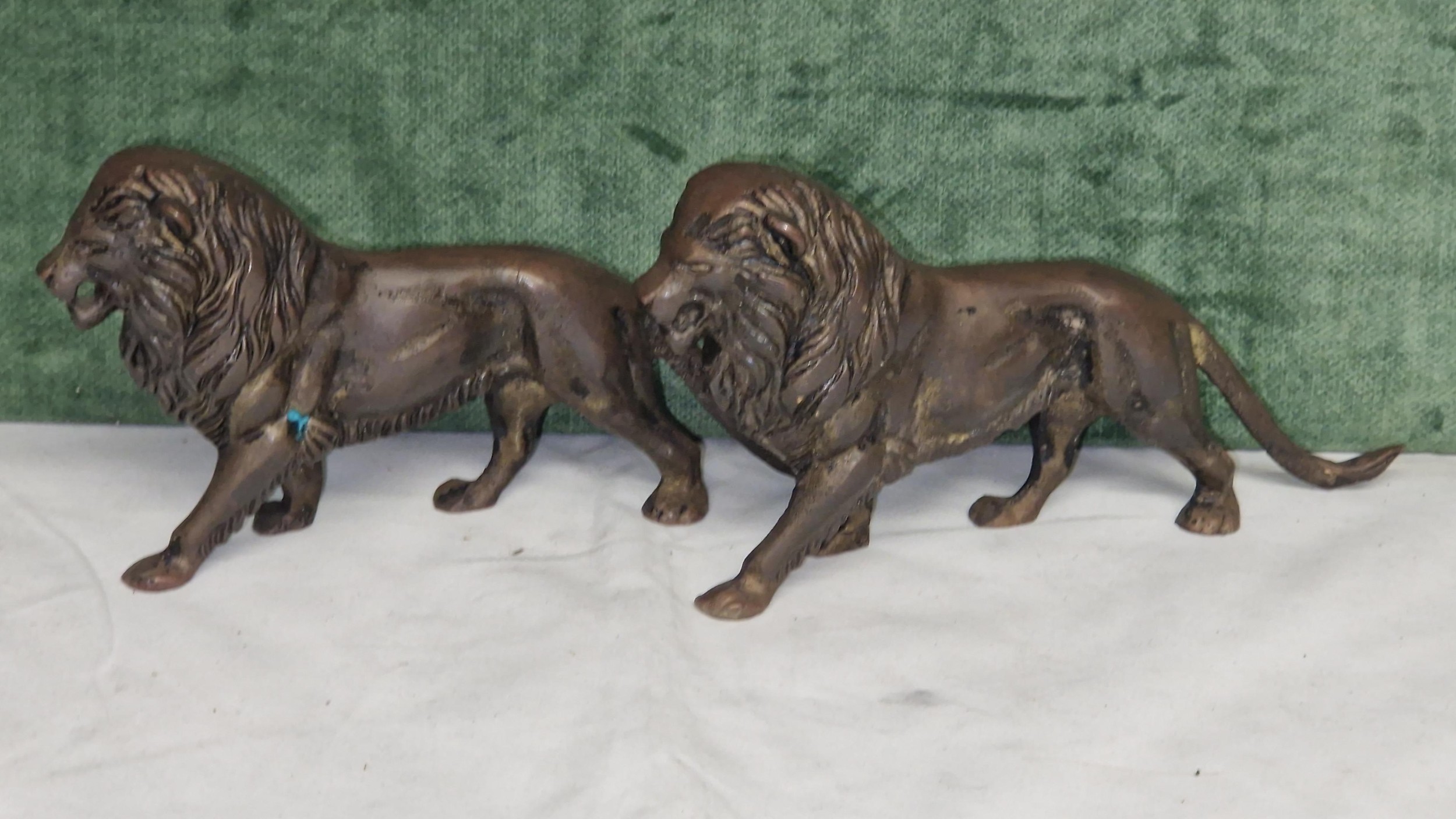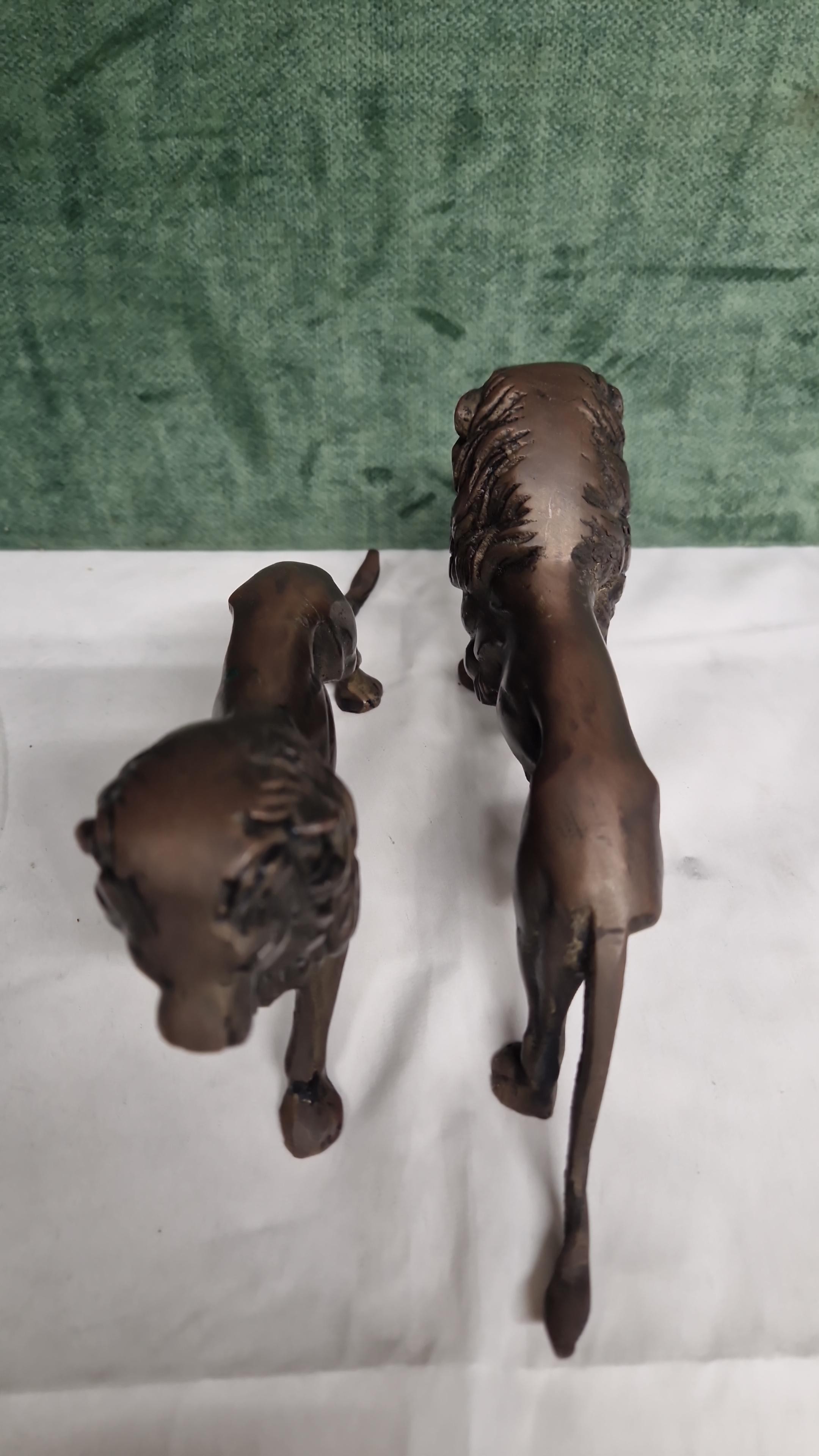 PAIR OF HEAVY BRONZE VINTAGE LIONS - 18CMS X 11CMS H