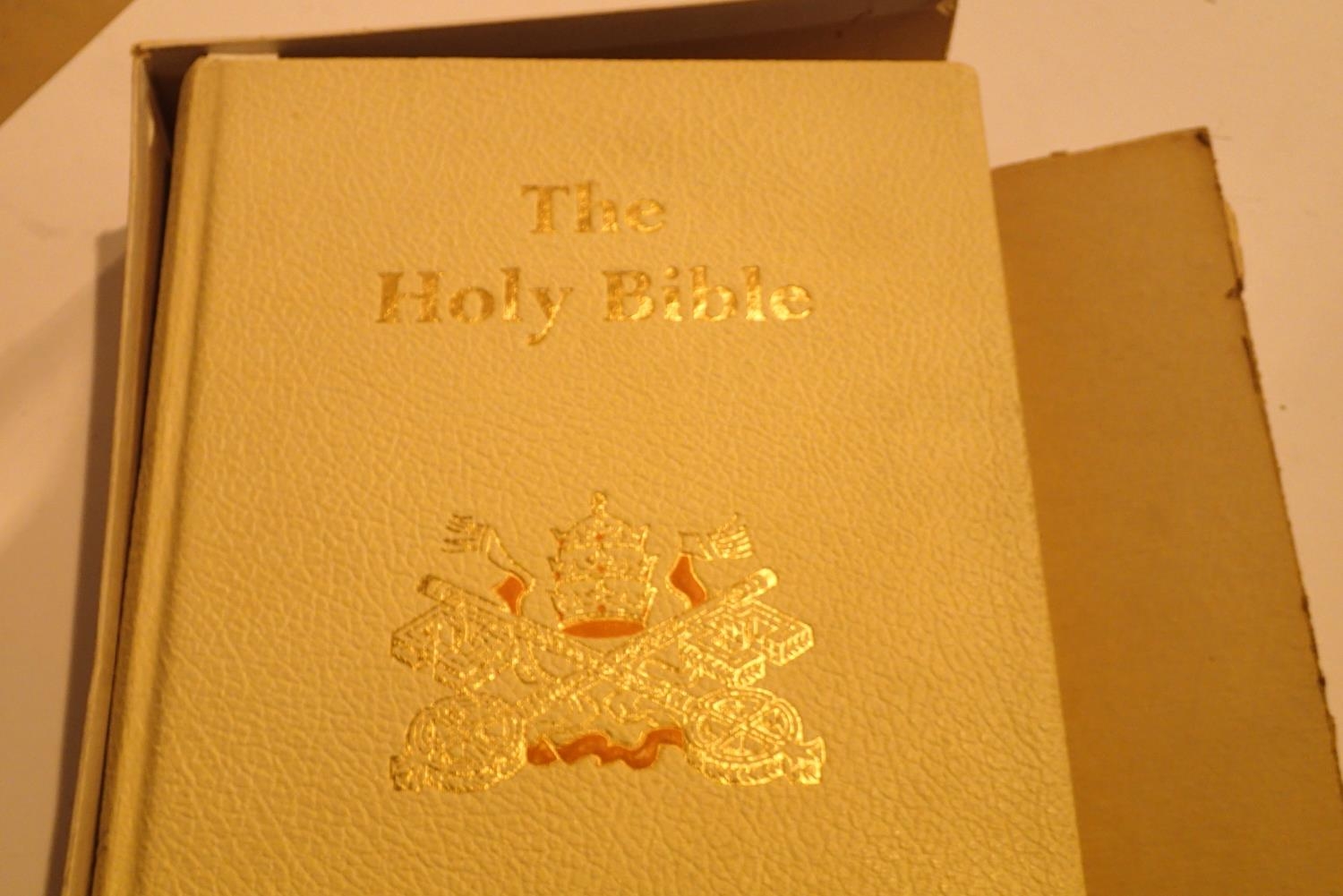 A boxed leatherbound Bible by The Caxton Publishing Company, printed 1958 with colour plates. P&P Group 1 (£14+VAT for the first lot and £1+VAT for subsequent lots)