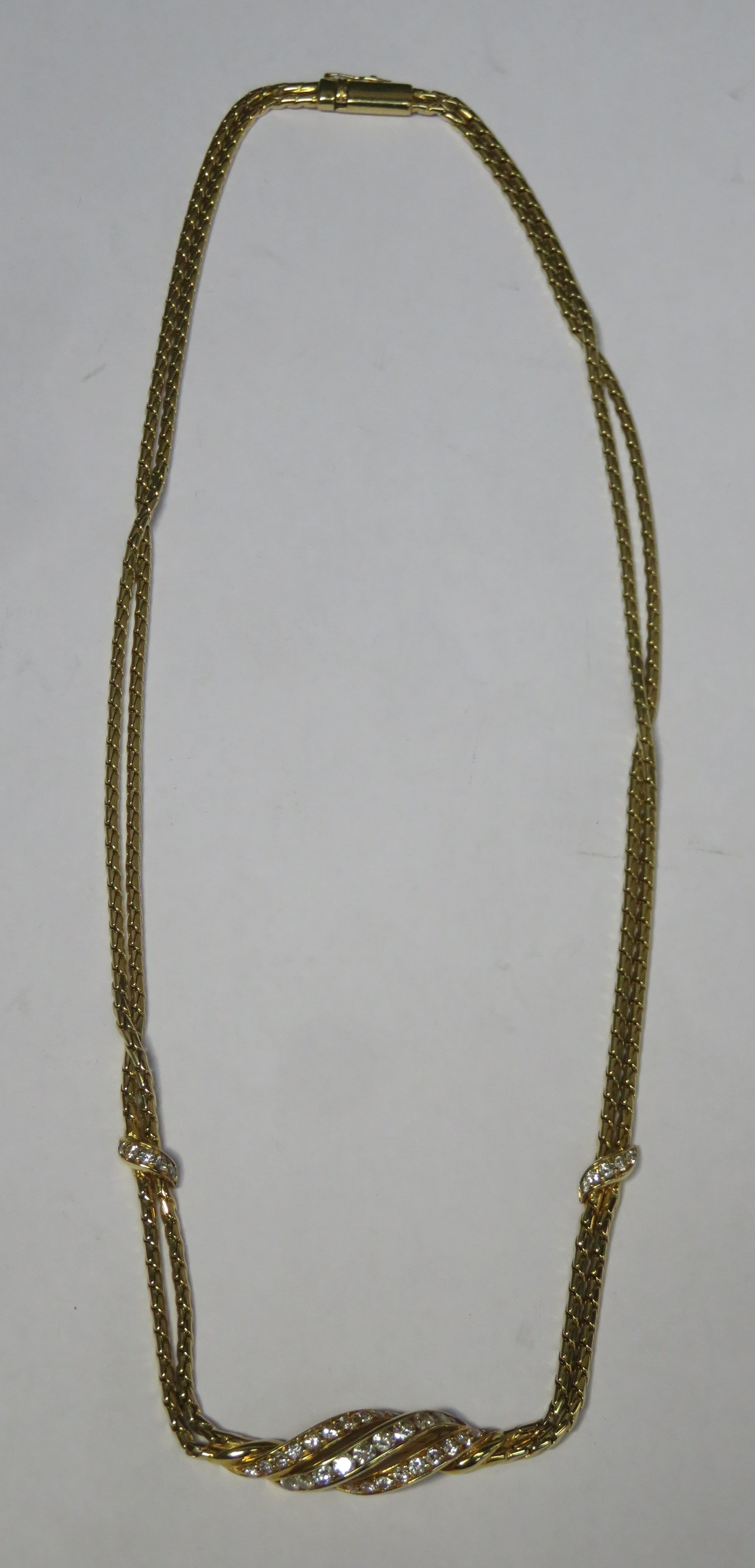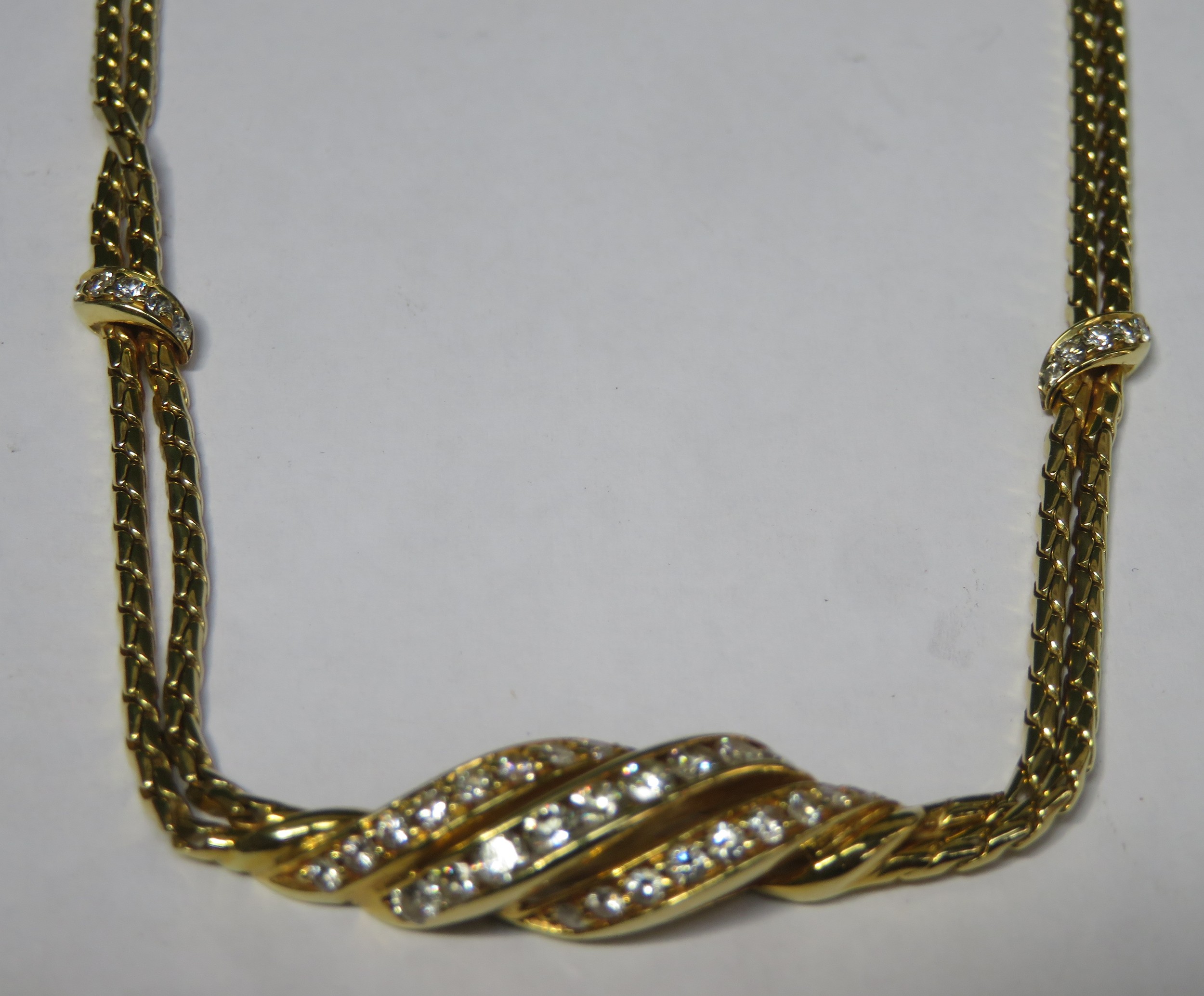 Pretty 18ct (750) Gold double link necklace set with 40 small diamonds. Total Weight Approx. 25.8G