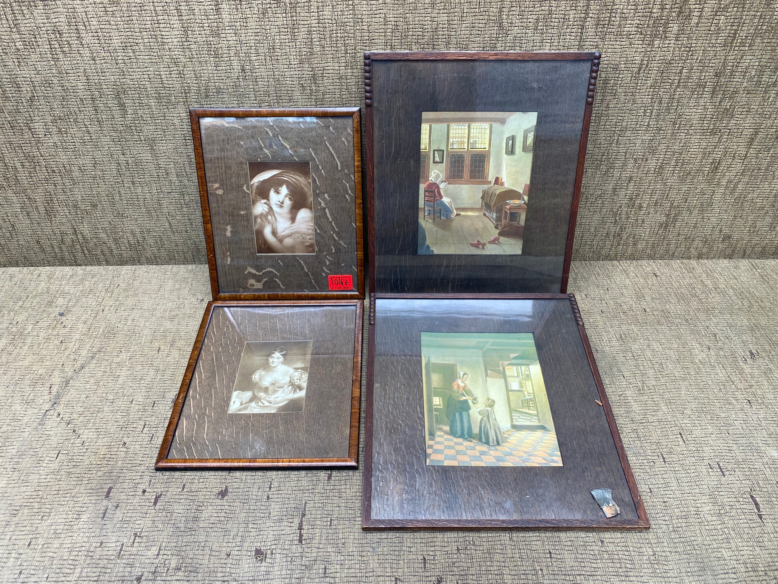 4 vintage prints in frames, including: Head Of A Girl In Drapery by Greuze, Countess Of Blessington by Sir Thomas Lawrence.