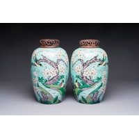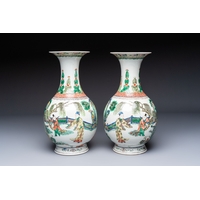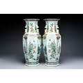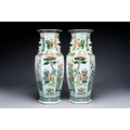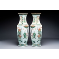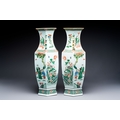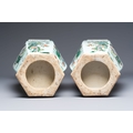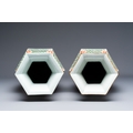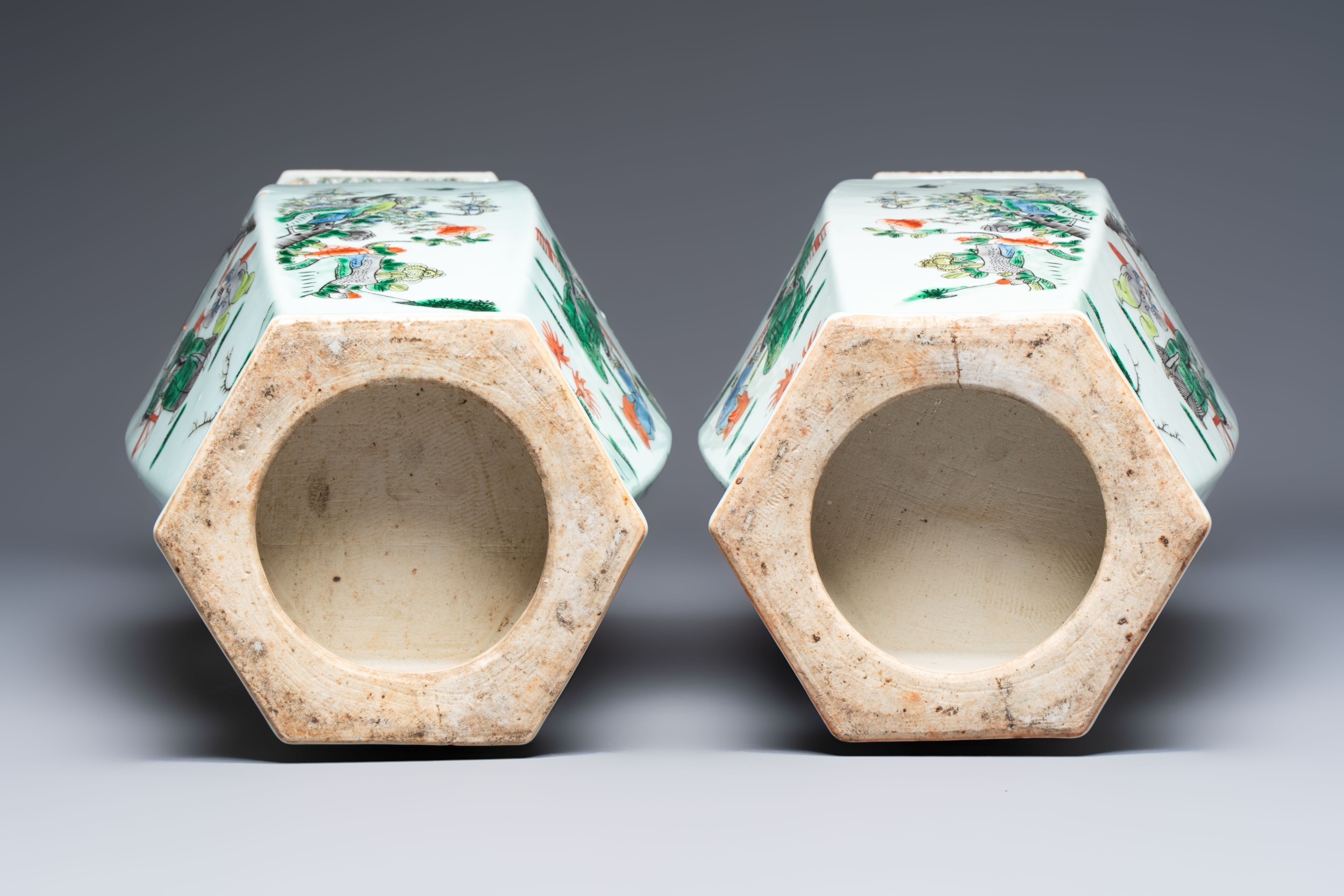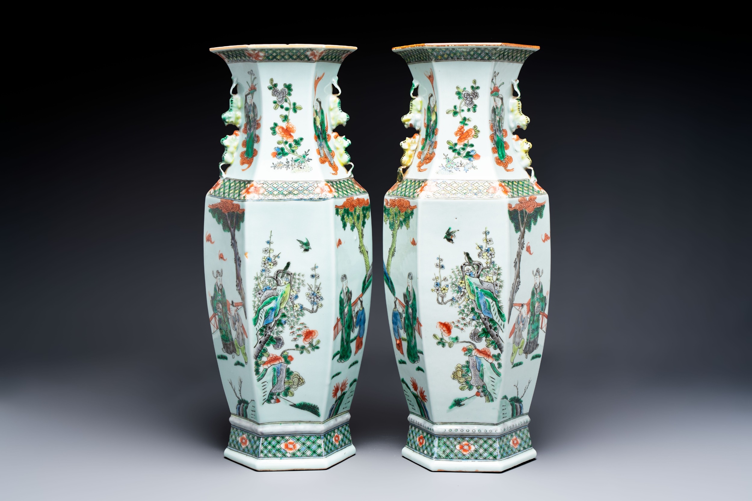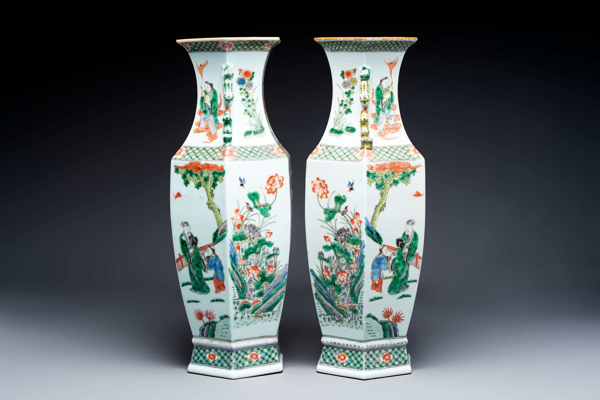 A pair of large Chinese famille verte hexagonal 'Si Ai Tu' vases, 19th C.