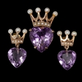 AMETHYST AND PEARL CROWN BROOCH AND PAIR OF EARRINGS, The brooch set with a heart shaped amethyst, topped with a crown, accentuated with pearls. The earrings of similar design. L. brooch 2.4 cm. L. earrings 2.2 cm. 7.5 grams.