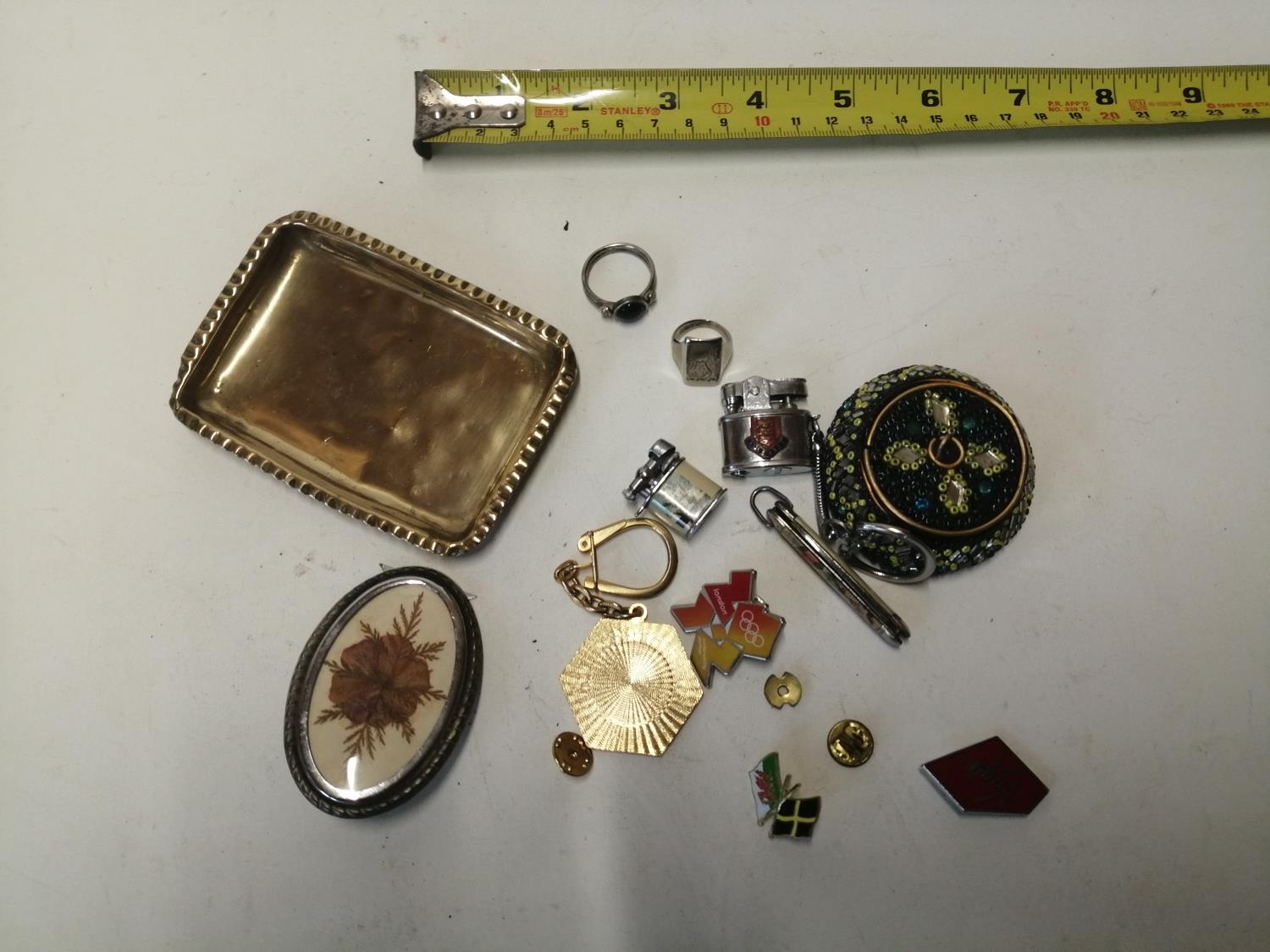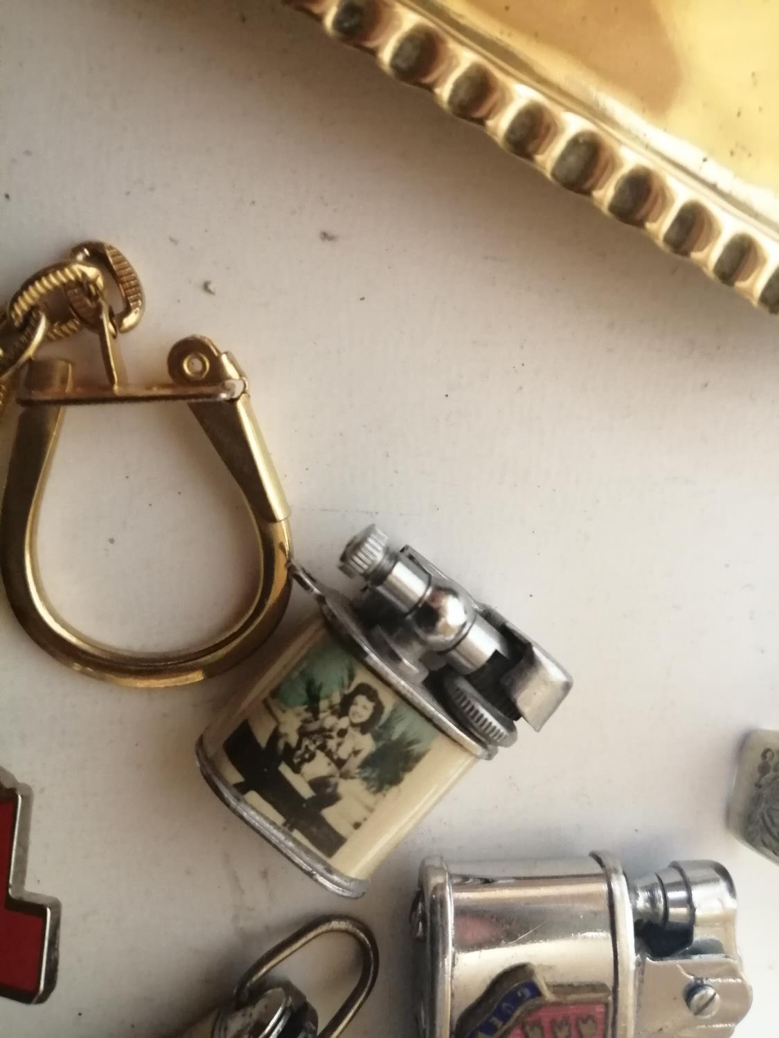 Bag of oddments : folding penknife, novelty lighter etc.