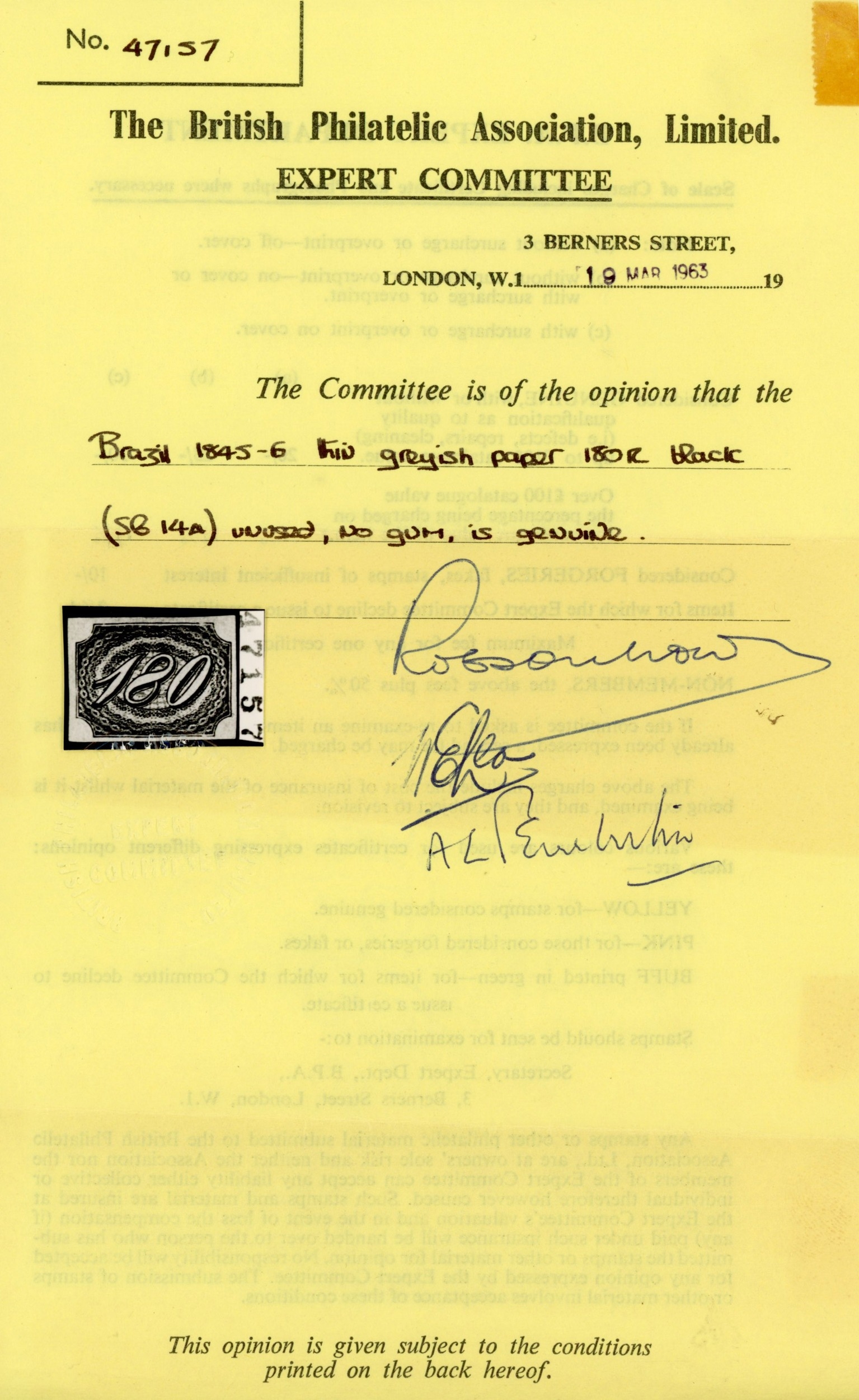 Brazil 1845-46 180r Early Impression, greyish paper unused